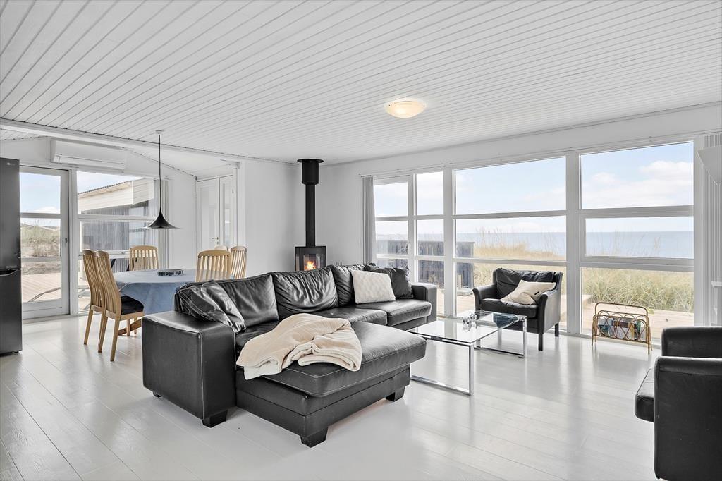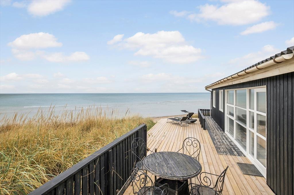 I får en storslået udsigt til hvidt sand og blå bølger, når I holder ferie på Morgenvej 6. Dette skønne, nyrenoverede sommerhus ligger nemlig lige ud til Nørlev Strand, og fra stuen, soveværelserne og selv spabadet kan I kigge lige ud på Vesterhavet og den smukke kyststrækning.