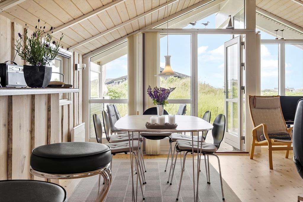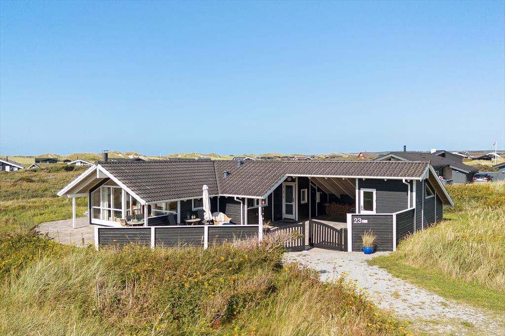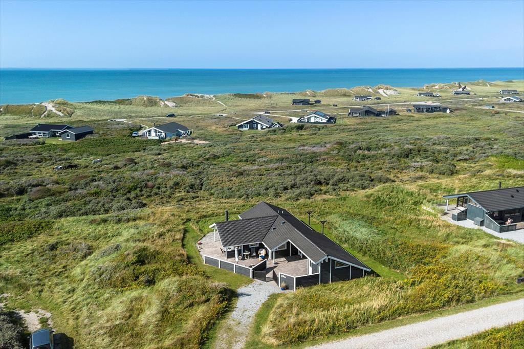 Beliggenheden er perfekt for dem, der søger forbindelse til naturen. Med udsigt over det åbne landskab og Vesterhavet lige uden for døren, er stranden kun en kort gåtur væk. Her kan du nyde en forfriskende dukkert eller se solen gå ned over horisonten. Hvis du er til vandsport, kan du deltage i et surfkursus hos HAVS eller bare slappe af med en kop kaffe og en bid mad. Der er også mulighed for cykeludlejning eller en tur på hesteryg for at udforske det naturskønne område. Alt i alt tilbyder dette feriehus en perfekt blanding af komfort, ro og naturskønhed, der gør det til det ideelle tilflugtssted fra hverdagens travlhed.