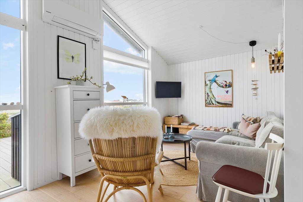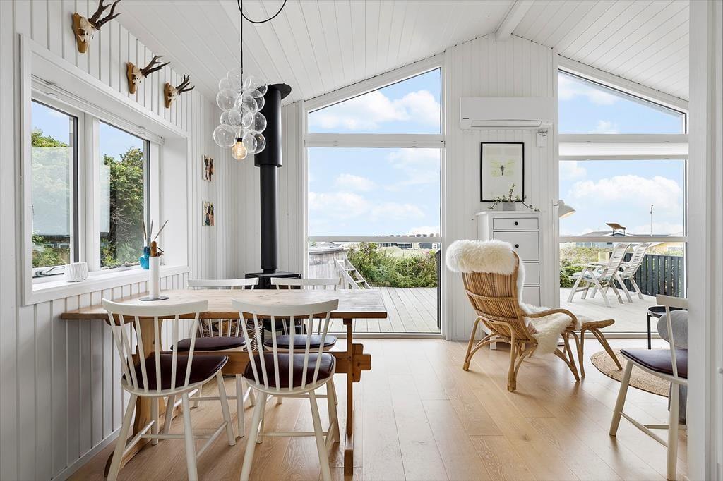 Terrassen er et af sommerhusets absolutte højdepunkter. Den breder sig smukt omkring huset og giver dig masser af muligheder for at finde en solrig plet eller en skyggefuld krog alt efter dit humør. Med komfortable havemøbler, liggestole og en grill er der lagt op til lange og hyggelige aftener under åben himmel. Og skulle du få lyst til en frisk dukkert, ligger stranden kun en kort spadseretur væk. Her kan du dyppe tæerne i Vesterhavet, tage en lang gåtur langs vandkanten eller blot nyde den betagende udsigt over havet.