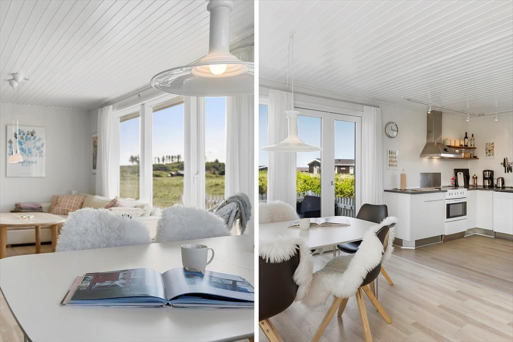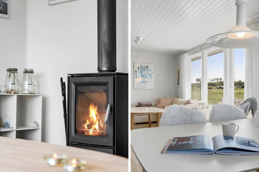 Når du træder ind ad døren, bliver du mødt af en lys og imødekommende atmosfære. Sommerhuset fremstår velholdt og gennemtænkt i sin indretning, og de tre gode værelser giver fine muligheder for både børnefamilier, venner eller par, der rejser sammen. De lyse vægge og det gennemgående naturlige lys skaber en rar stemning i opholdsrummet, hvor brændeovnen står klar til at sprede varme og feriehygge, når aftenen falder på. I stuen er der god plads til både brætspil, afslapning og fælles madlavning – og med køkken og stue i åben forbindelse bliver det let at holde samtalen i gang, uanset om du kokkererer eller slapper af i sofaen. Badeværelset er både funktionelt og pænt indrettet med sans for detaljen, og alt i alt mærkes det tydeligt, at her er tale om et sommerhus, der bliver passet godt på og brugt med hjertet.