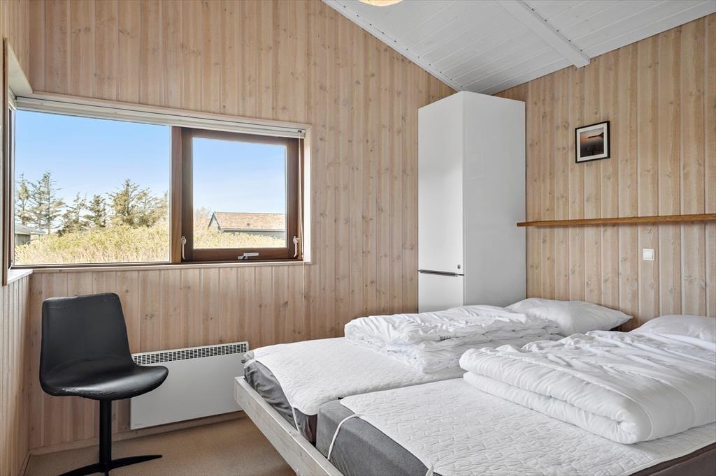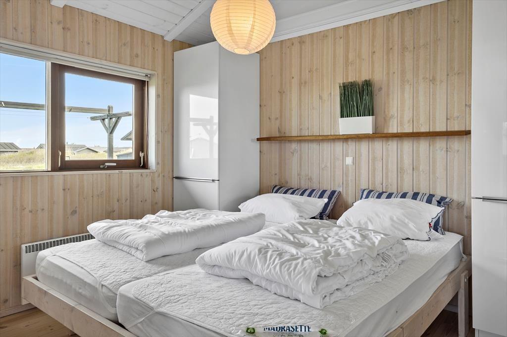 Inden døre i det 94 m2 store kvalitetssommerhus bidrager både små og store detaljer til det gennemført lækre helhedsindtryk – lige fra de flotte trægulve og det nøje udvalgte interiør til loftet, der går helt til kip. De store vinduespartier lukket masser af dagslys ind og sørger for, at I kan se til indlandskrænten, der knejser over det ellers flade kystlandskab. Stue og køkken ligger samlet som et stort og stemningsfuldt opholdsrum, og her har I gode arbejdsforhold, når der skal kokkereres samt dejlige rammer om både middage og sofahygge. De tre soveværelser er alle med gode senge og god skabsplads, og på det største af de to badeværelser er det muligt at slappe af i saunaen og få et velfortjent spabad.
