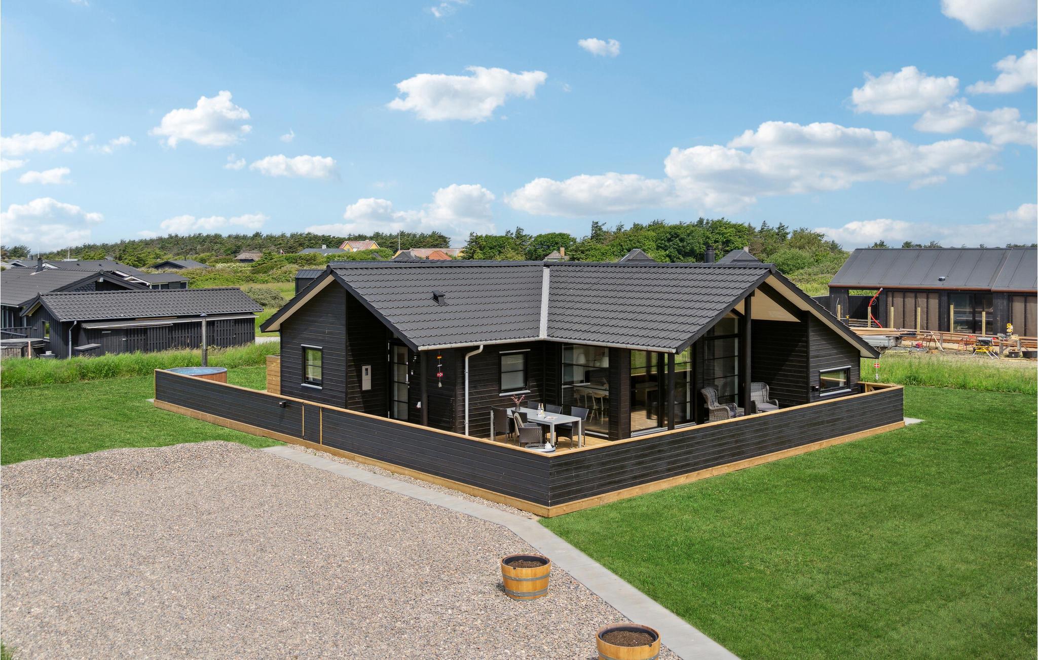 Moderne sommerhus med udendørs wellness nær Vesterhavet og smukke naturomgivelser.