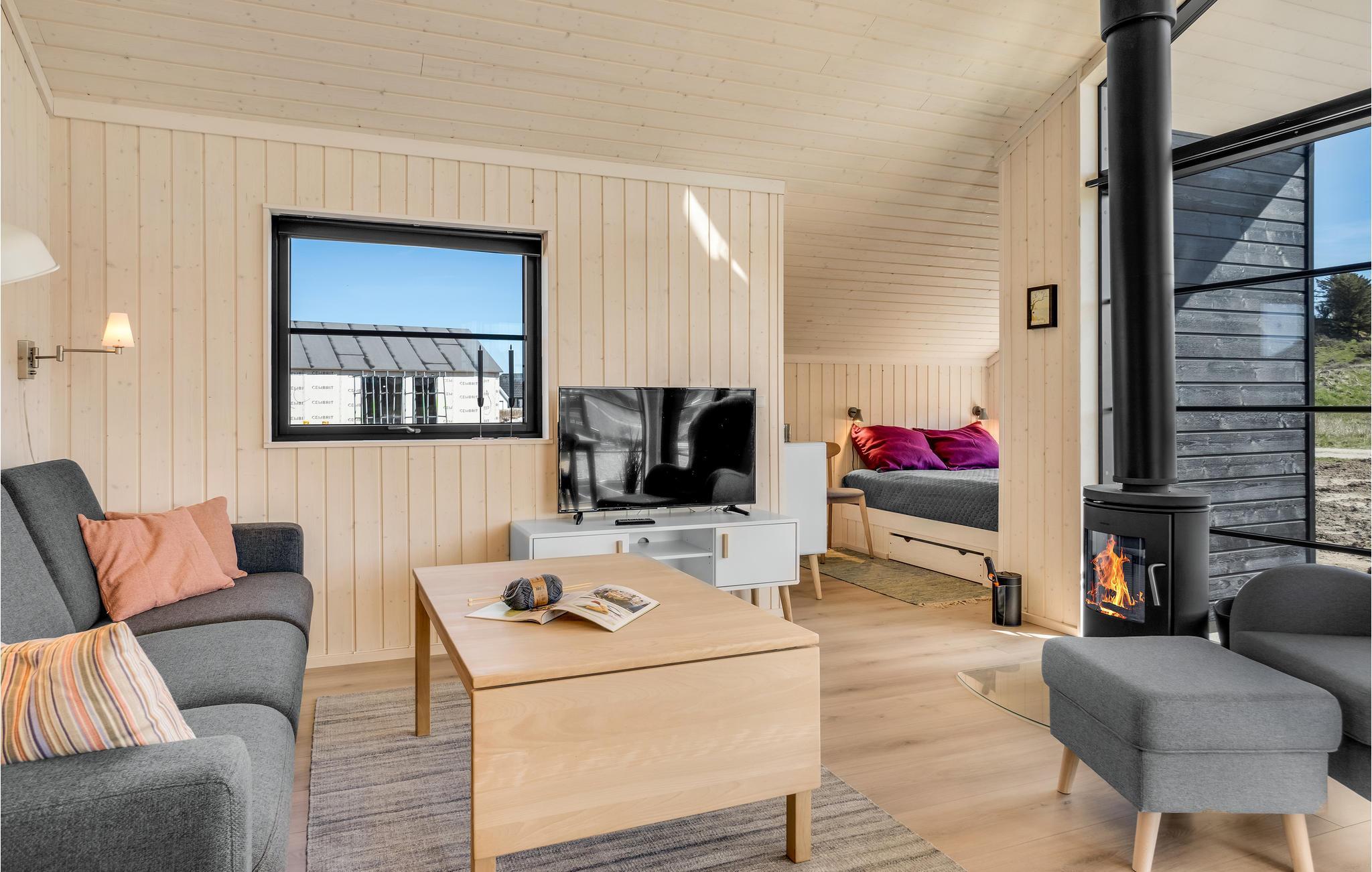 Det attraktive hus ligger i flotte naturomgivelser tæt ved det vidunderlige Vesterhav. Her kan I nyde tiden sammen i lyse værelser med en moderne og elegant indretning og en varm atmosfære. I kan se frem til behagelige nætter i soveværelserne og den hyggelige alkove, som ligger i åben forbindelse med stuen. Giv jer i kast med madlavningen i det veludstyrede, moderne køkken og glæd jer til hyggelige aftener i sofahjørnet, hvor I kan nyde den smukke udsigt over naturomgivelserne gennem store gulv til loft-vinduer. Om aftenen er der dømt familiehygge til flammernes stille knitren i brændeovnen.