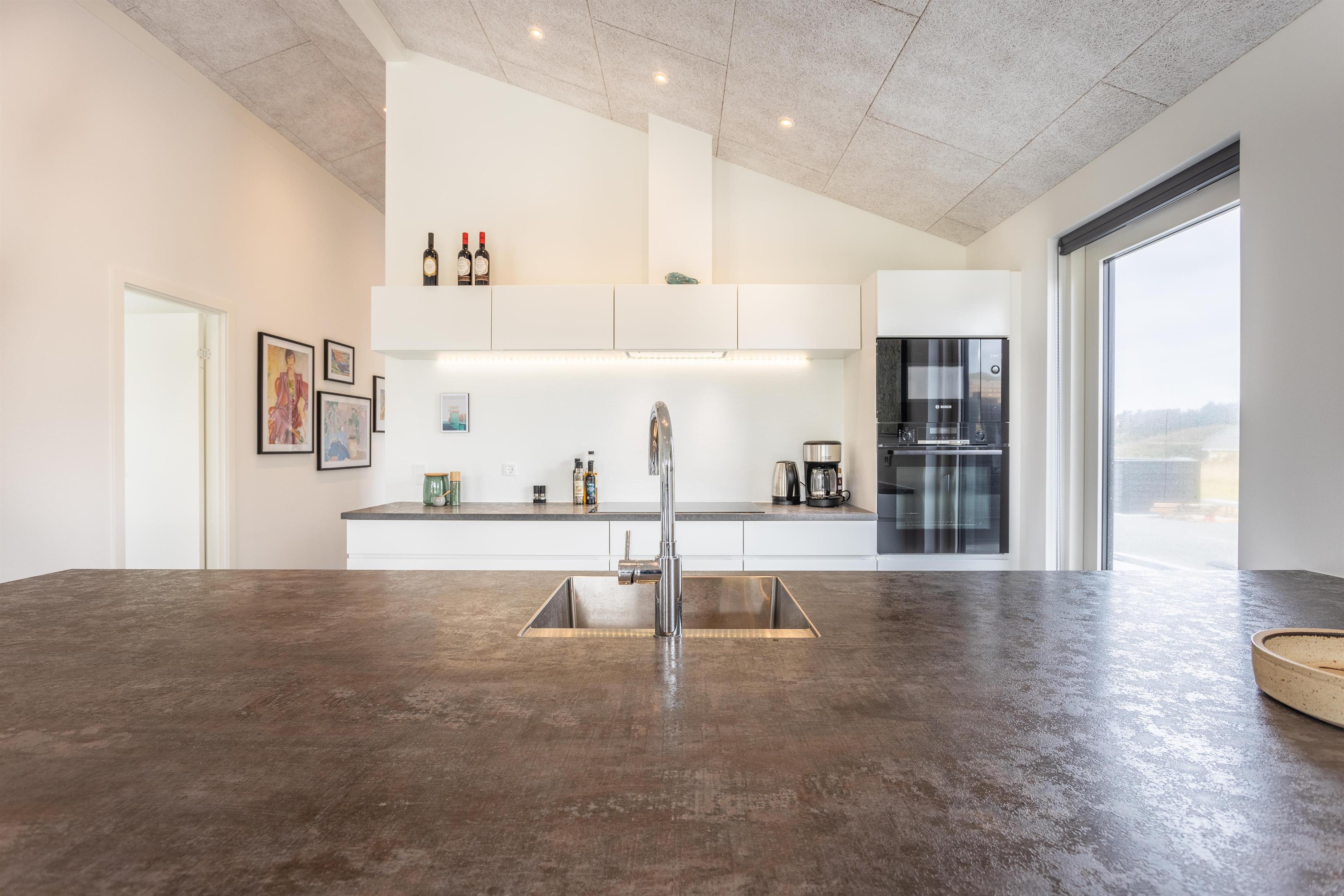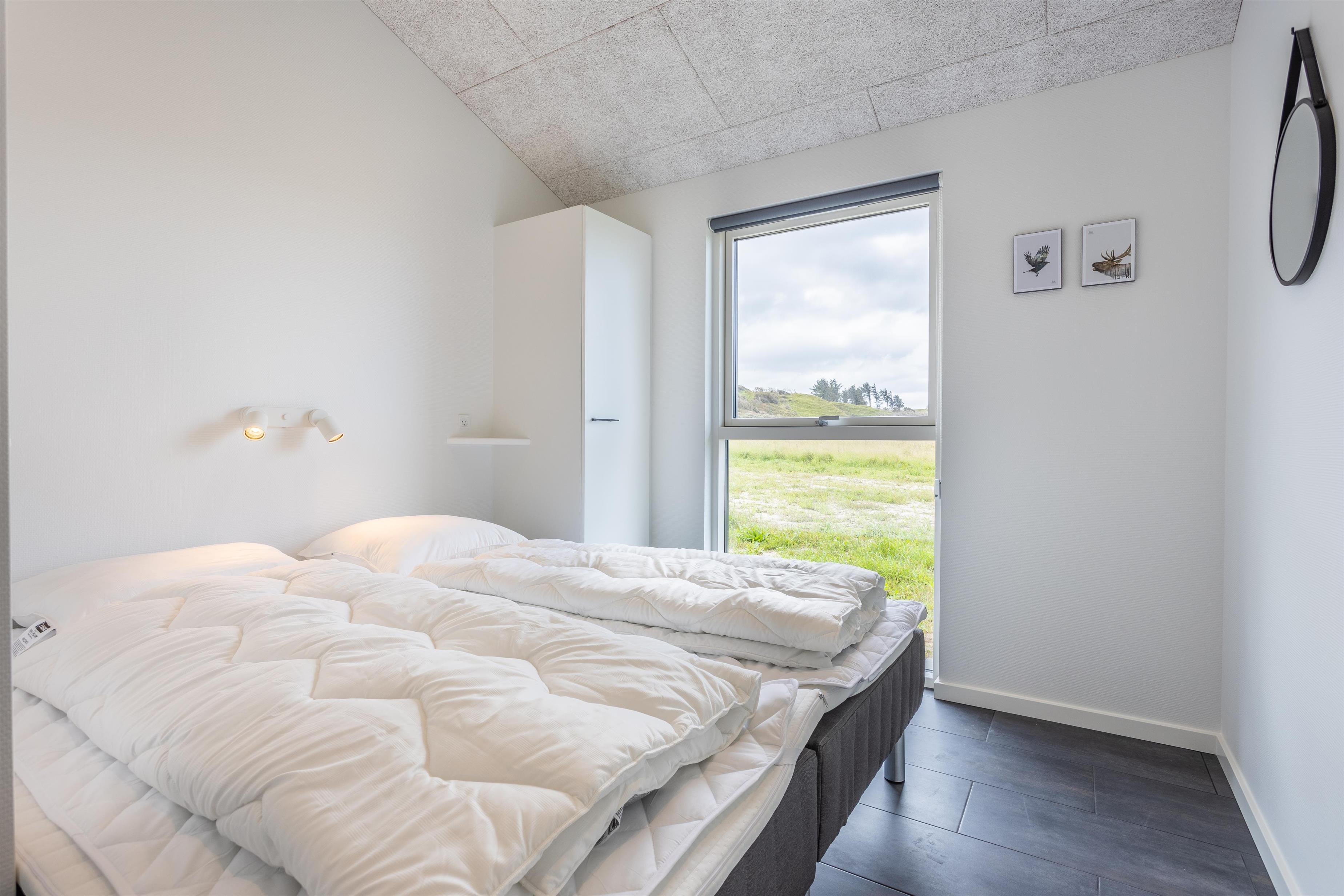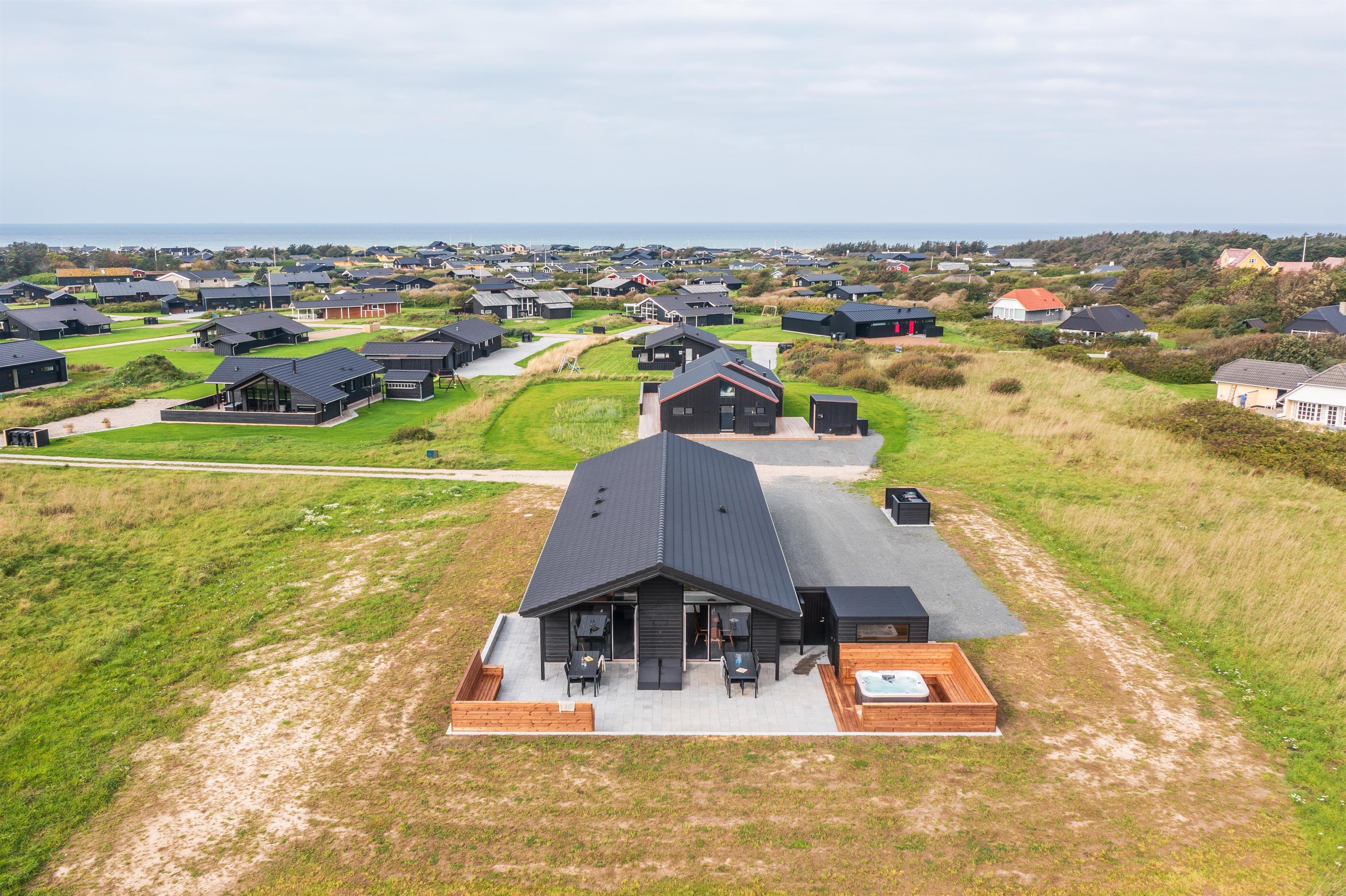 Dette helt nye feriehus er smagfuldt indrettet og har en skøn beliggenhed op af det kuperede og ugenerede landskab i Nørlev. Fra huset er der kun en kort gåtur til den skønne sandstrand. Huset er bygget i skønne materialer, og der er tænkt over detaljerne for at give jer den bedste ferieoplevelse. Tag et koldt bad under den udendørs bruser, hop i den varme udendørs spa og slut af i den dejlig varme udendørs sauna - dette er ren afslapning for krop og sjæl. Nyd ferien i dette store moderne feriehus, som hører til kategorien af huse i topkvalitet. I dette hus er alt opført i de bedste materialer. Med loft til kip og de store vinduer inviteres sollyset og naturen indenfor.
