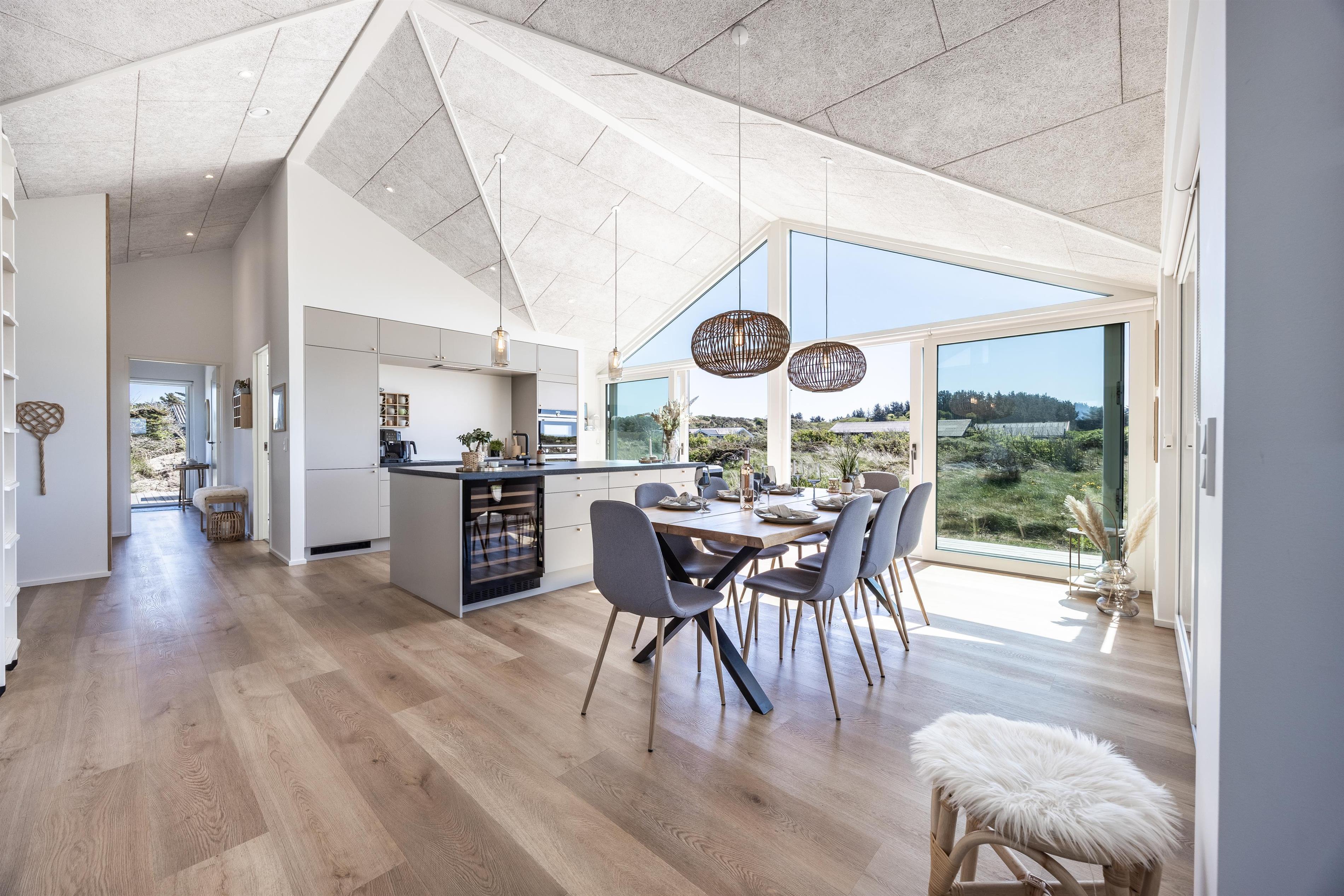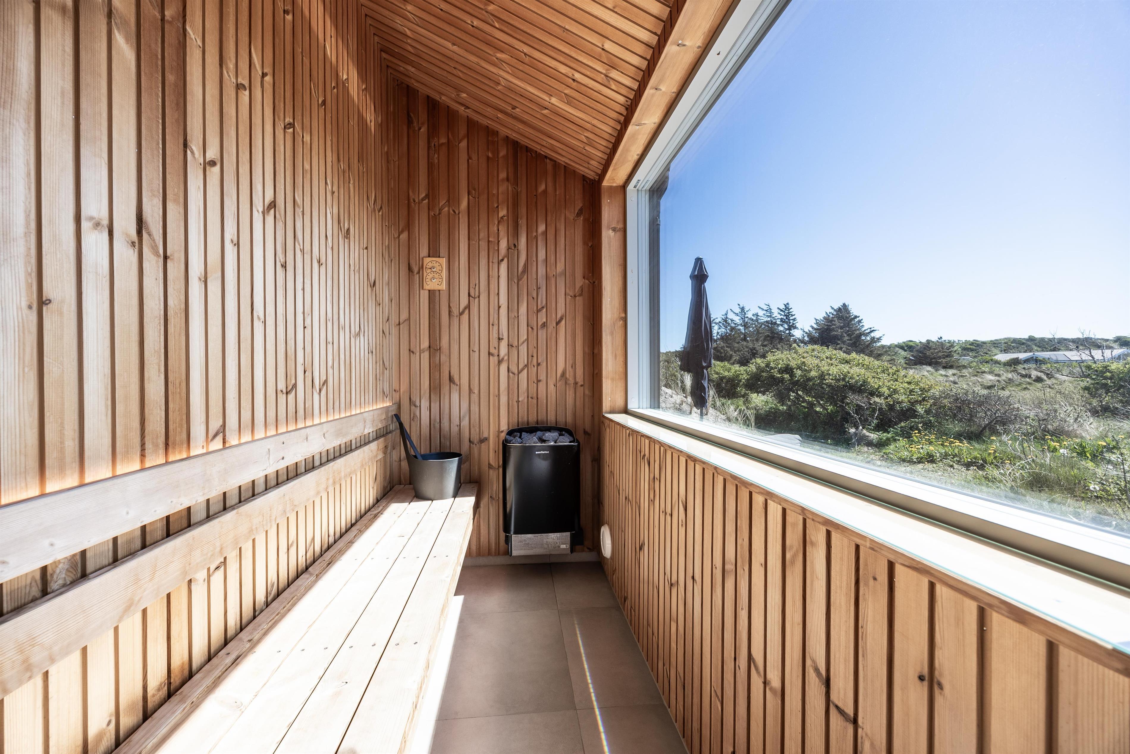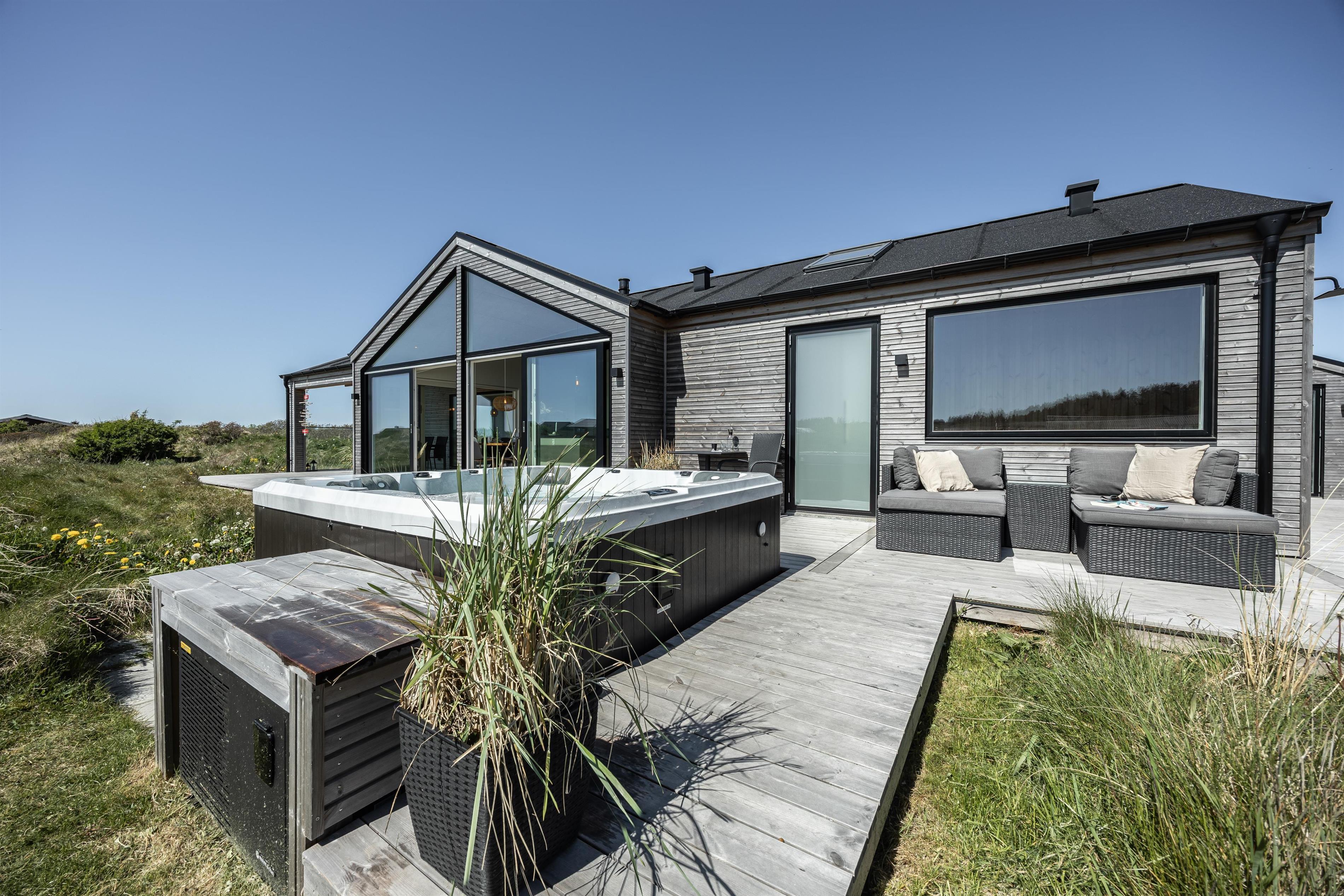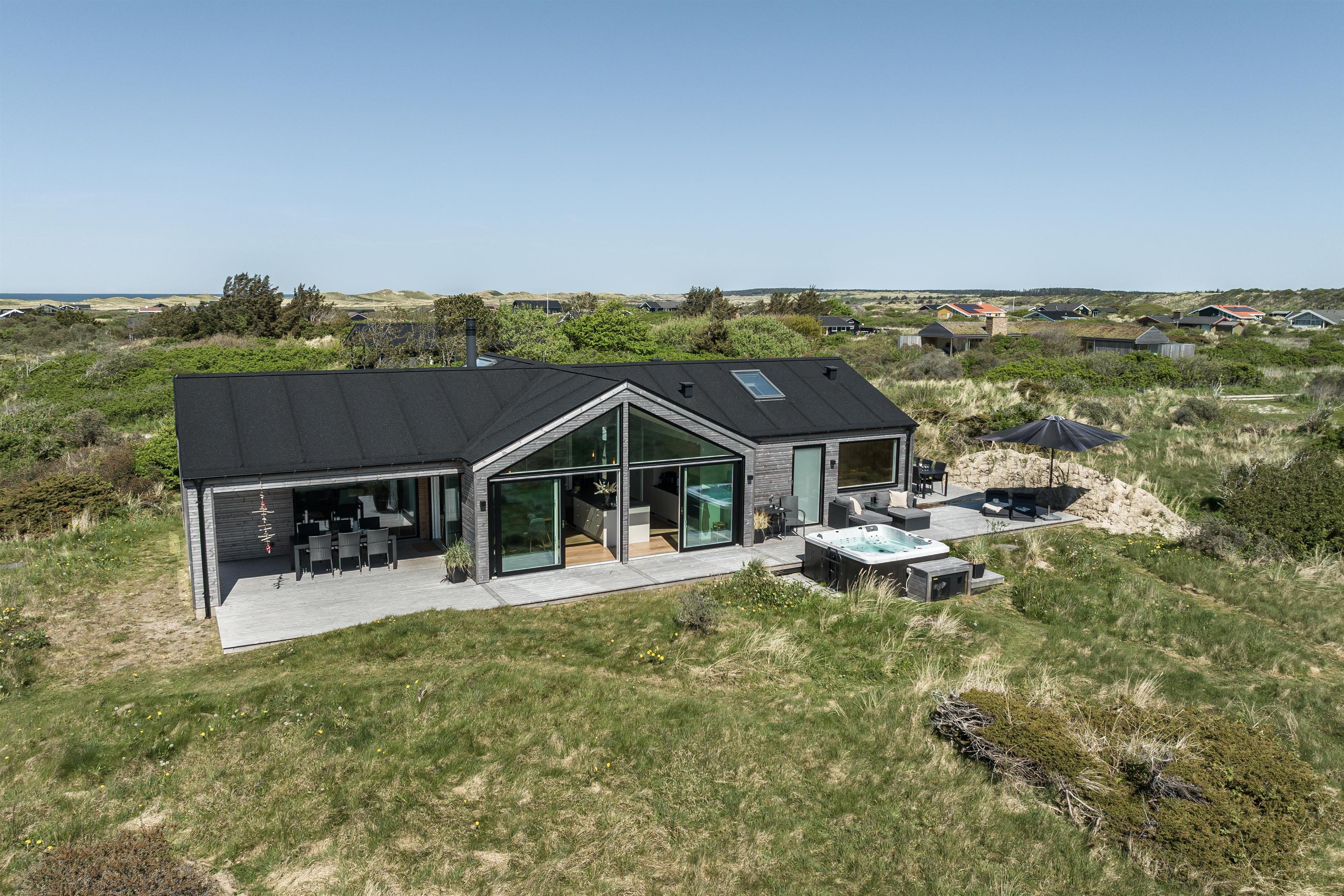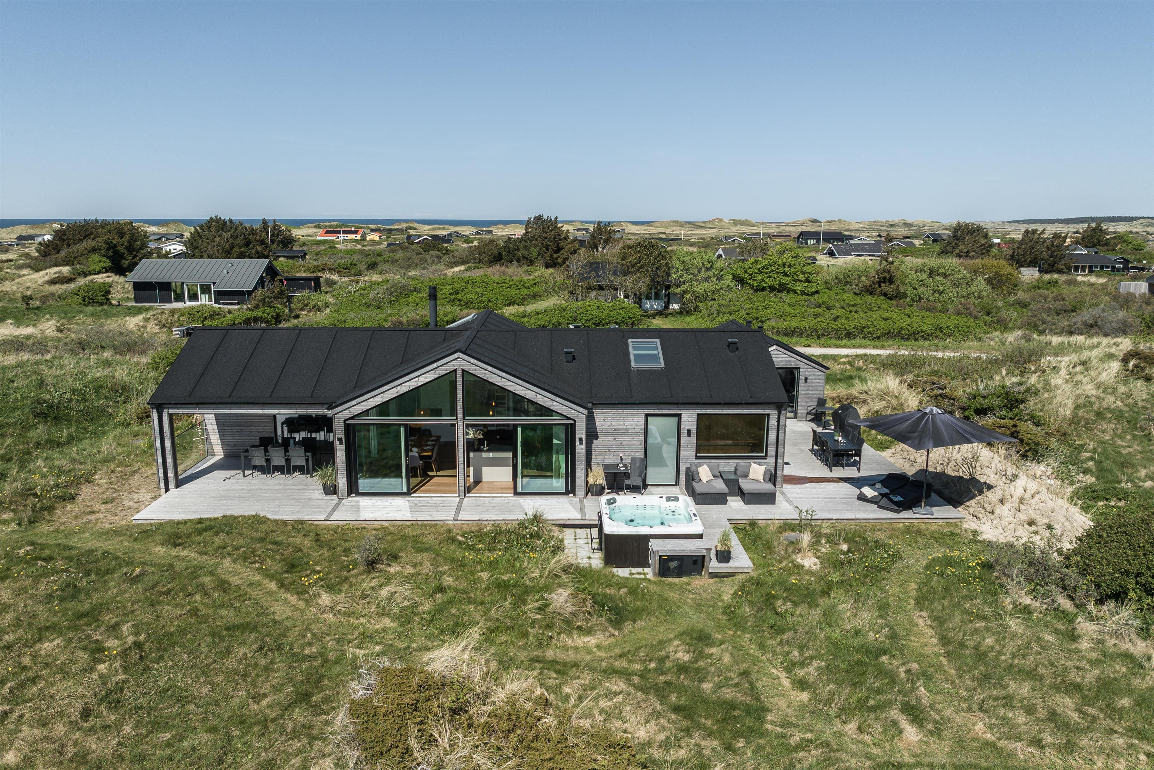 Feriehuset er bygget i 2023, og det er topmoderne med alt inden for nyeste teknologi, og så er det meget smagfuldt indrettet. Fra stuens brede vindueskarm kan man nyde den billedeskønne udsigt og med kig til det vidunderlige Vesterhav. Her er der hverken gået på krompromis med smag eller kvalitet. Hop i det dejlig varme vand i udespaen og afslut en dejlig wellnessaften i saunaen, hvorfra der er udsigt til den kuperede natur, der omkranser hele huset. Huset er energioptimeret og har ventilation med varmegenvinding, som sikrer et godt indeklima. Der er varmepumpe og gulvvarme i hele huset samt mulighed for opladning af elbiler.