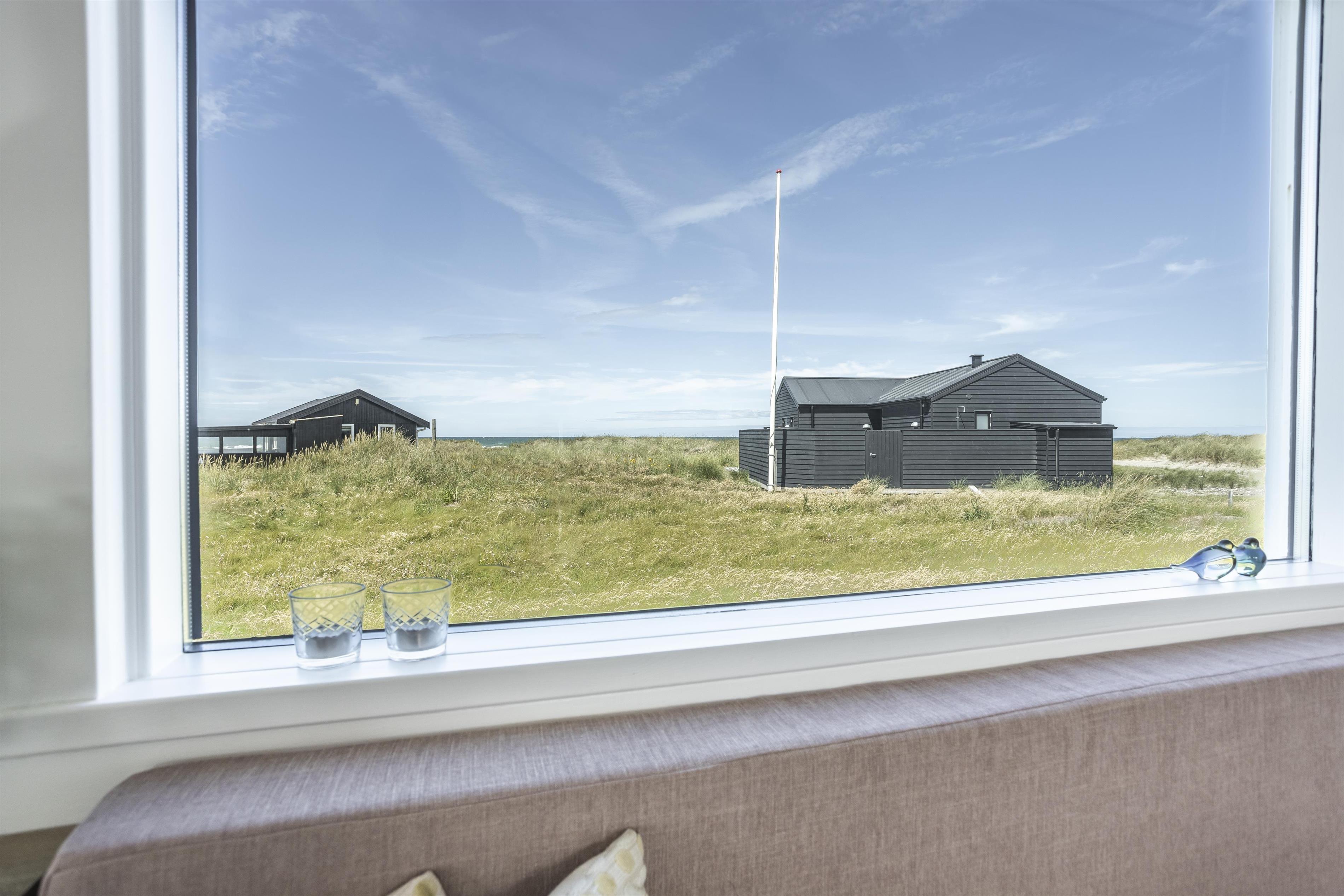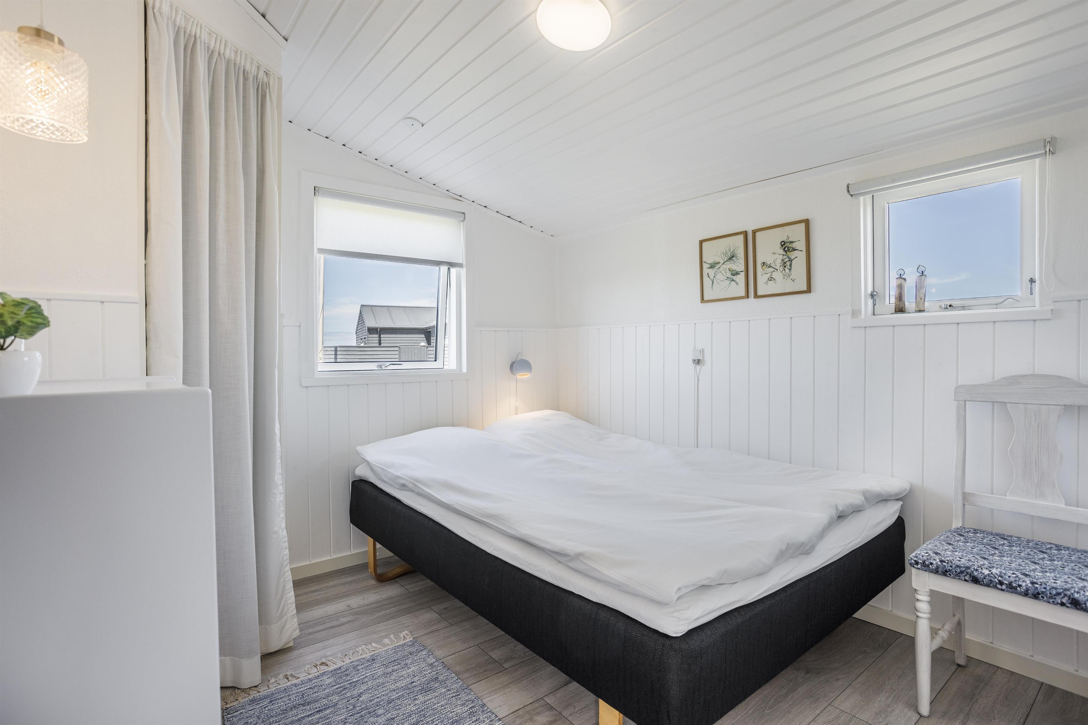 Dette dejlige sommerhus med plads til 4 personer består af et åbent køkkenalrum og stue, hvor I fra spisepladsen kan nyde udsigten til havet. Sengepladserne fordeler sig på to gode soveværelser, som er hyggeligt indrettet og med fine skabsløsninger til opbevaring. Fra det store soveværelse er der udgang til terrasse, så du kan invitere havbrise og fuglefløjt ind. Husets vinduer sikrer et dejligt lysindfald, og indretningen er holdt i sarte farver, som harmonerer smukt med den omkringliggende natur og skaber en behagelig og indbydende atmosfære.