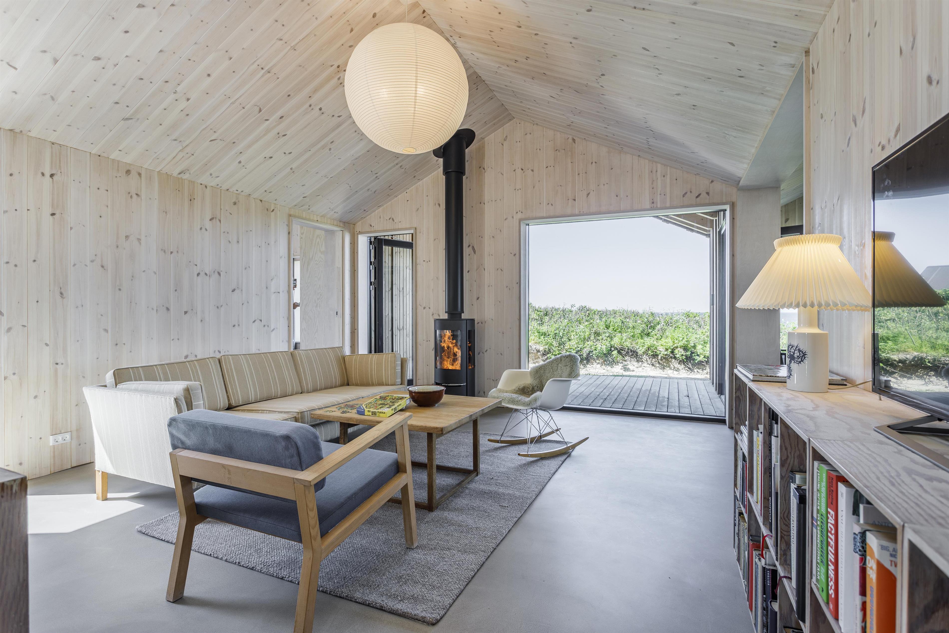 På de kølige aftener, kan I tænde op i brændeovnen og nyde varmen og udsigten fra opholdsstuen.