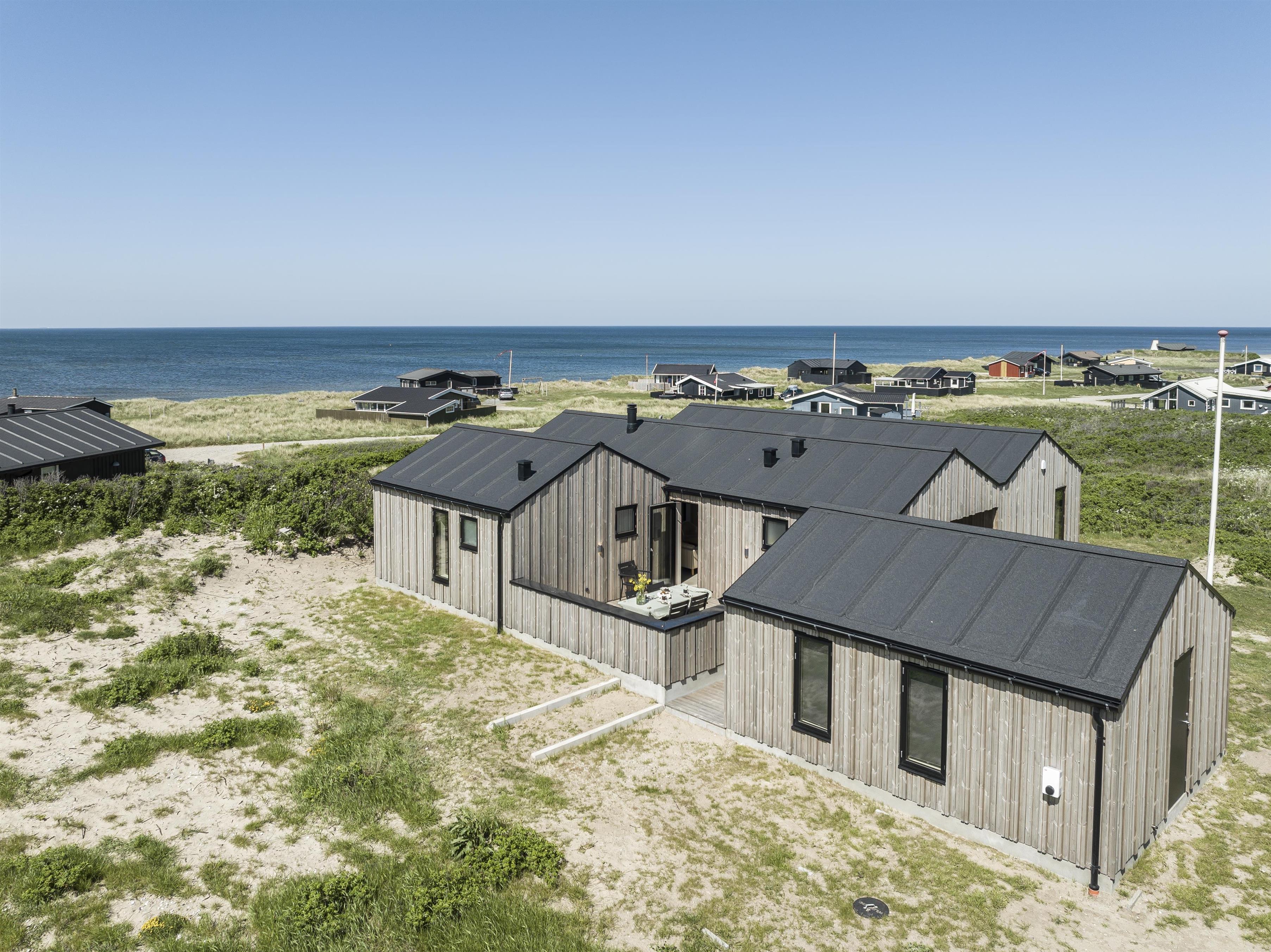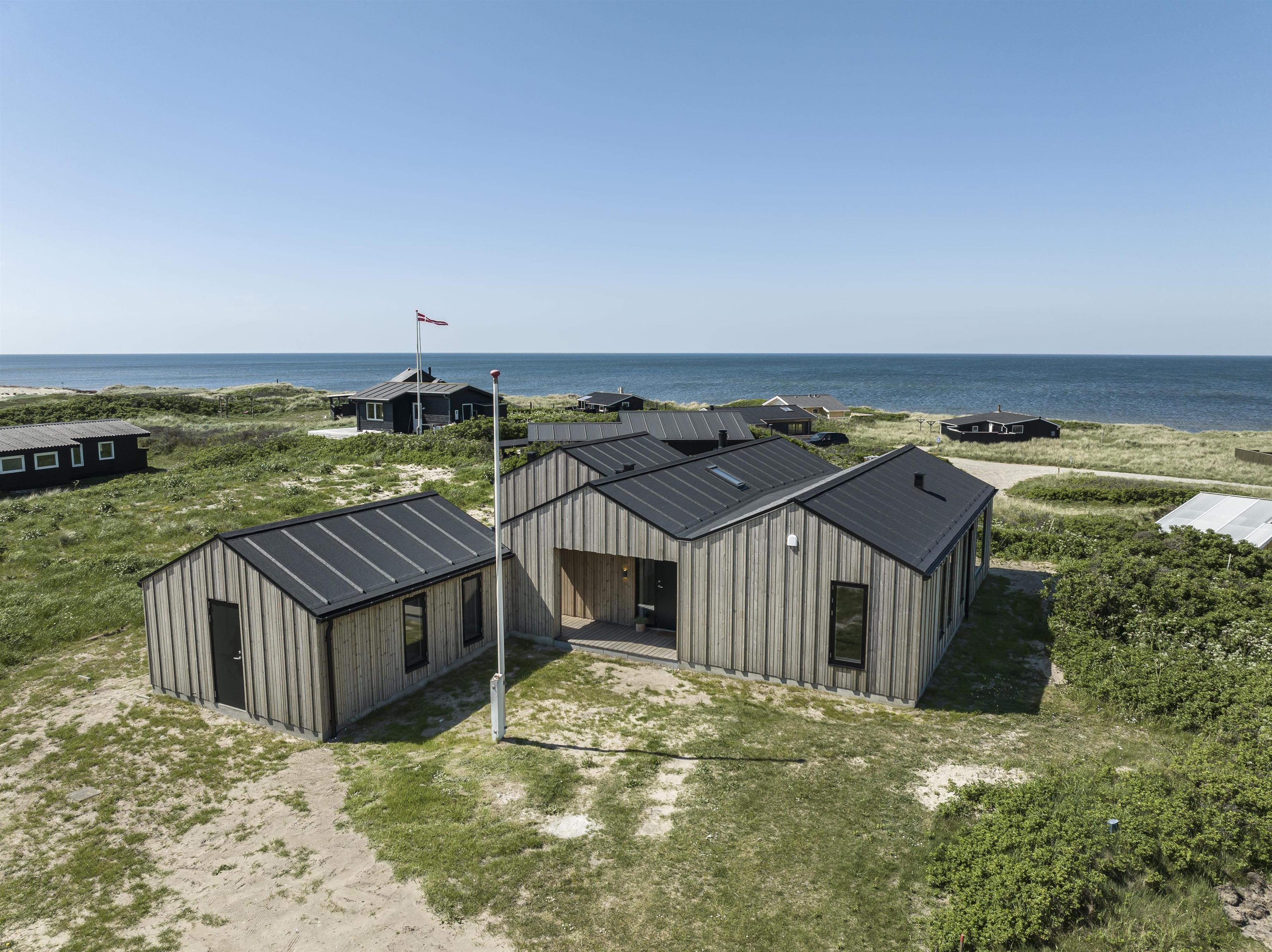 Ferieforventninger til frisk luft og lyden af havets brusen, samt panoramakig til hav og Hirtshals fyrtårn indfries straks, når I træder ind i dette nye og luksuriøse feriehus i Nørlev. Med plads til op til 6 personer er dette feriehus det perfekte tilflugtssted for familier eller venner, der søger en uforglemmelig ferieoplevelse. I huset, som ligger på en bakkeø i det skønne kuperede klitlandskab i Nørlev og med meget kort afstand til den skønneste sandstrand, bliver I draget af landskabs- og havudsigten, som man ikke kommer udenom i dette feriehus. Dette arkitekttegnede feriehus er smagfuldt indrettet og der er tænkt over enhver detalje både ude og inde. Desuden er huset yderst bæredygtigt, udført i varmebehandlet fyrtræ og med gulvvarme fra jordvarme i hele huset. Her er også installeret en ladeboks til el-biler.