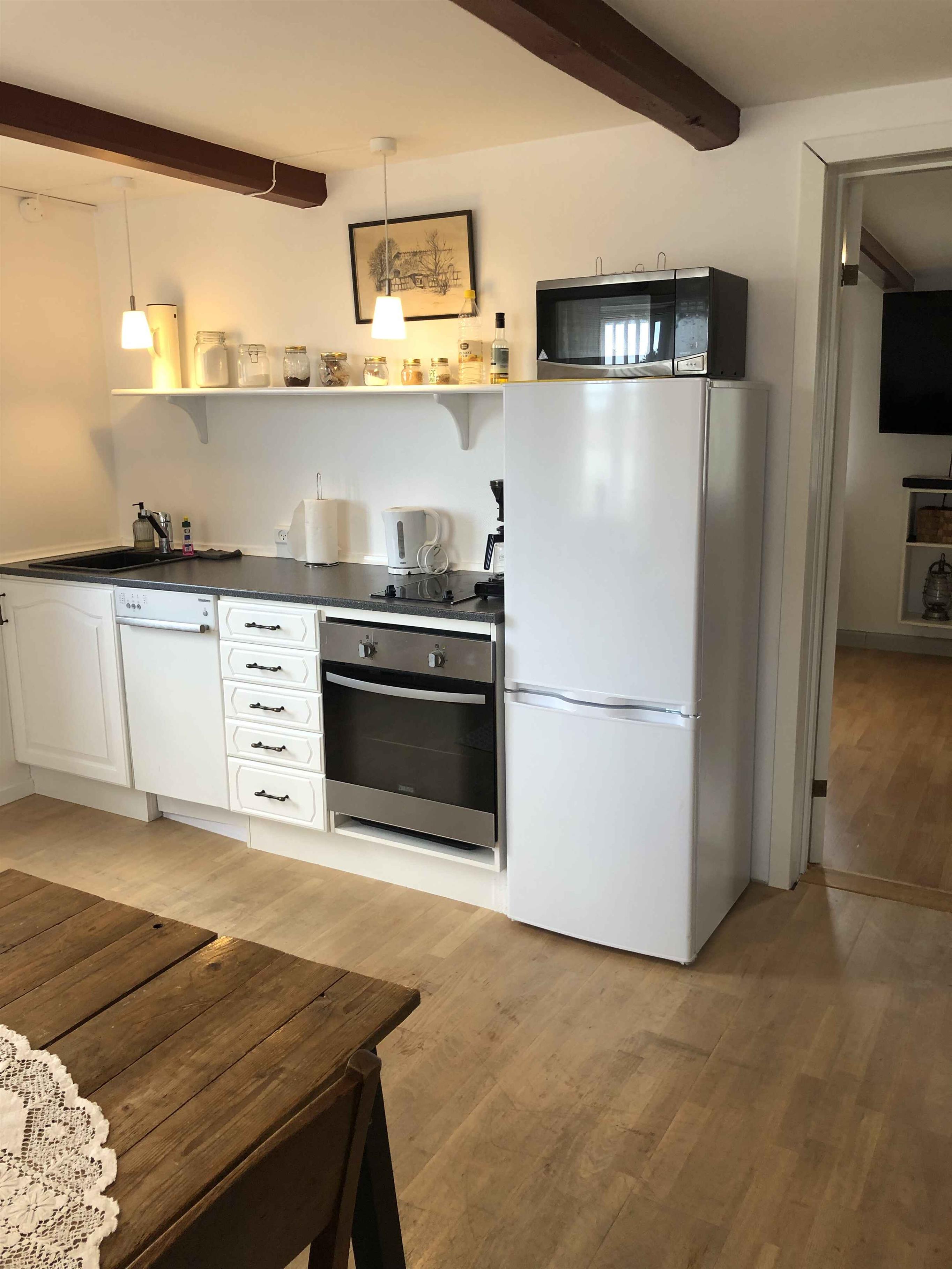 Nyd feriedage tæt på naturen i denne charmerende ferielejlighed med historisk karakter. Oplev afslappede feriedage i jeres lyse lejlighed i grønne omgivelser på Nordfalster, ikke langt fra stranden. Denne fine toetagers ferielejlighed er en del af et flot bindingsværkshus på landet. Lejligheden har egen indgang og er hyggeligt indrettet. Bindingsværkshusets stemningsfulde detaljer, såsom det flotte murværk og de fritlagte loftsbjælker, bidrager til en særdeles hyggelig atmosfære. Slap af i den lyse opholdsstue med sofa, lænestol og fjernsyn. Brug det lille læsehjørne, eller nyd fælles måltider ved det indbydende spisebord. I det åbne køkken er det sjovt at lave mad sammen. I har adgang til en dejlig, åben grund, som deles med ejeren. Her kan I nyde nogle af feriens måltider, sole jer, læse en god bog eller lege og spille bold og udendørsspil. Der er også hestefolde på dele af grunden. I bor tæt på kysten ved Vester Kippinge, hvor I kan bade ved den børnevenlige strand og fiske fra kysten. Tag på udflugter til Hesnæs, langs den maleriske kyst og gennem skovene. Eller udforsk området Bavnehøj på en hyggelig vandretur, også med hund. Tag også en tur til Nordfalster Svømmecenter, Krokodillezoo Falster eller Knuthenborg Safaripark.