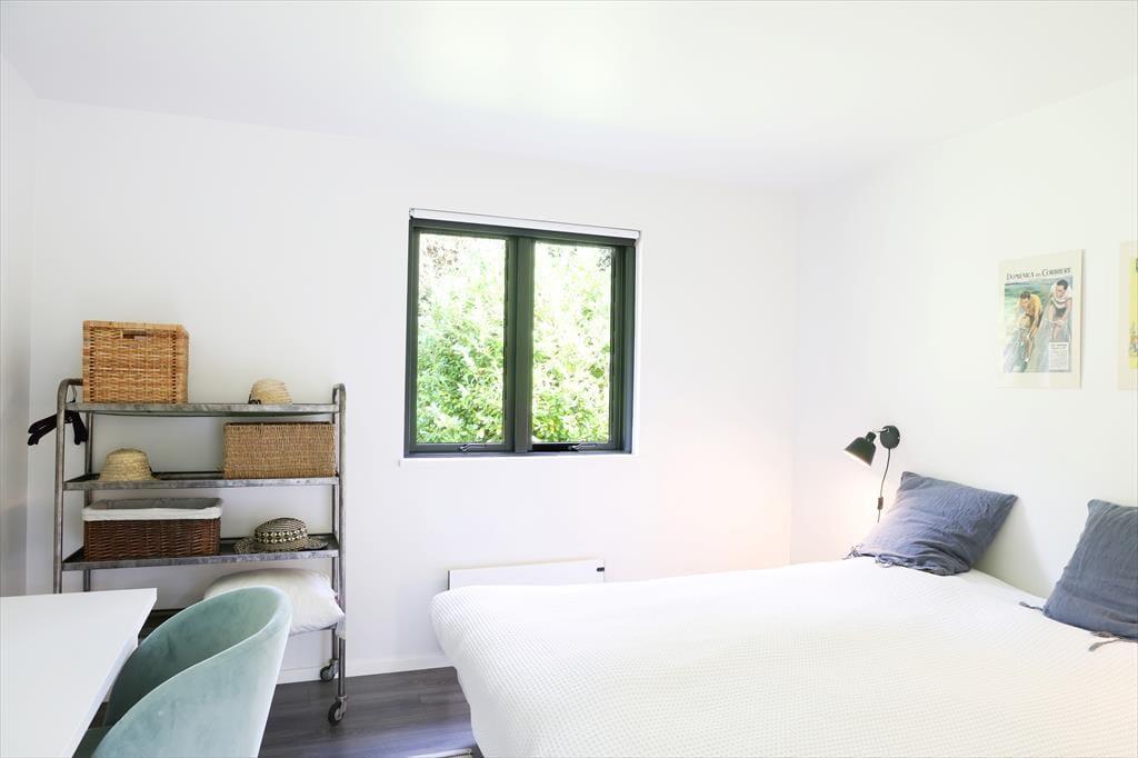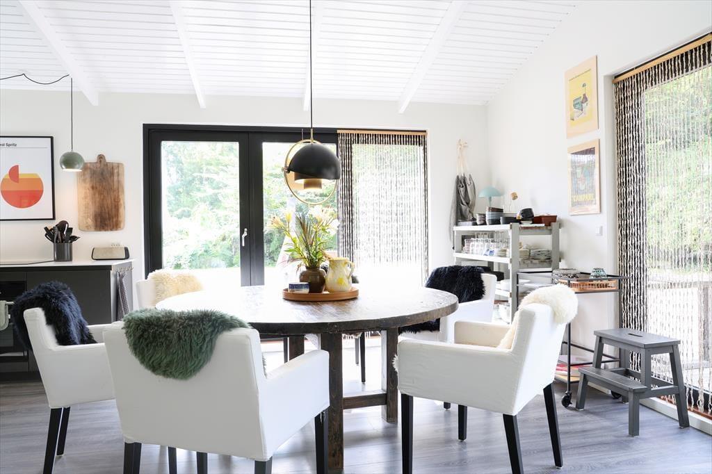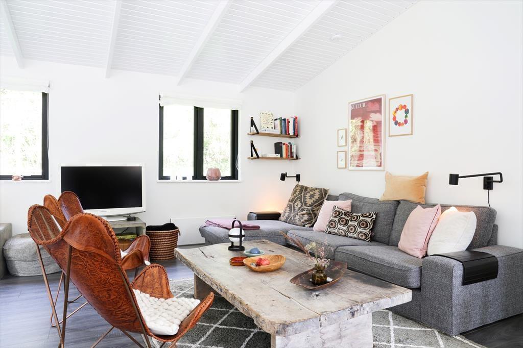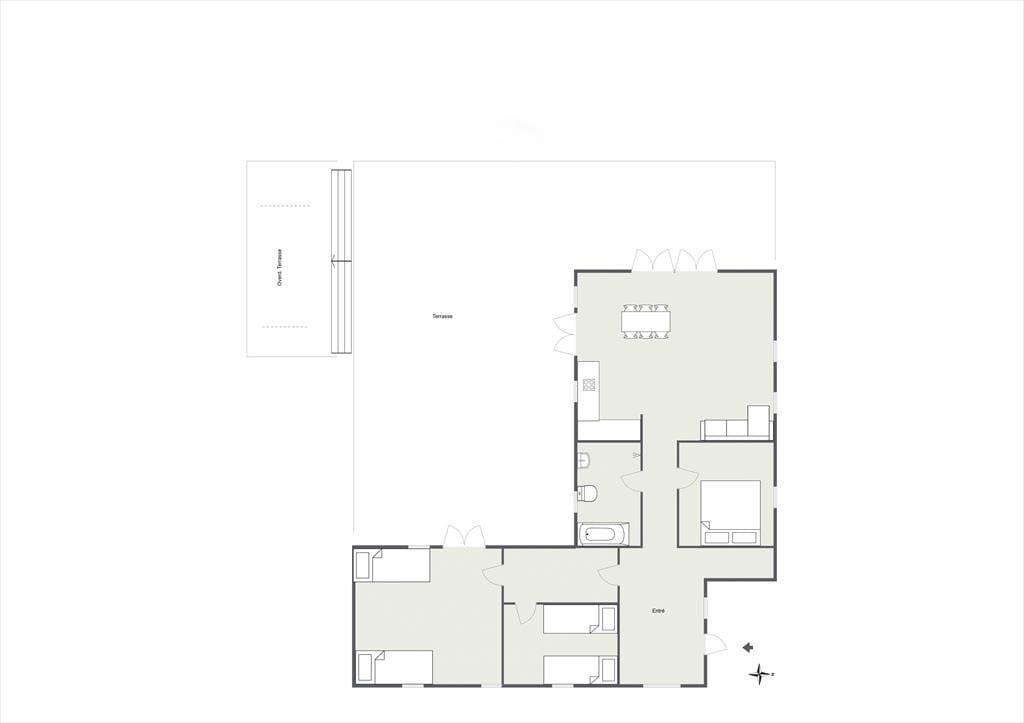 Huset indeholder stor entré og dejligt badeværelse med brus og spabad. Tankerne henledes straks til sommerhus idyl og når I træder ind, vil jeres skuldre snart sænke sig. Med den flotte indretning og det gode lysindfald, emmer her af ro og det er ikke svært at forestille sig en feriemorgen, hvor kaffen brygges i det smukke åbne køkken, mens familiens medlemmer indfinder sig omkring spisebordet for at planlægge dagen. Huset indeholder stor entré og dejligt badeværelse med brus og karbad. Soveværelserne er rummelige og smagfuldt indrettede med store behagelige senge samt opbevaringsplads. I den store stue er der varmepumpe, Apple TV og brændeovn, samt store panoramavinduer med fantastisk udsyn til den smukke terrasse og store have, hvor rådyrene krydser jævnligt. Køkkenet er åbent og moderne og indeholder opvaskemaskine. Terrassen har flere gode kroge, som gør, at solen kan nydes dagen igennem og om aftenen kan den hyggelige overdækkede terrasse give max hygge på de lange sommeraftener.
