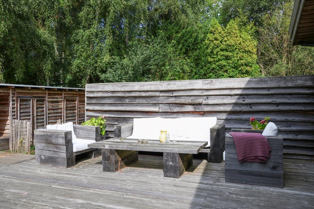 Smukt hus bygget i Lærketræ, som indbyder til drømmeferien hvad enten du er til afslapning eller spændende aktiviteter i området.