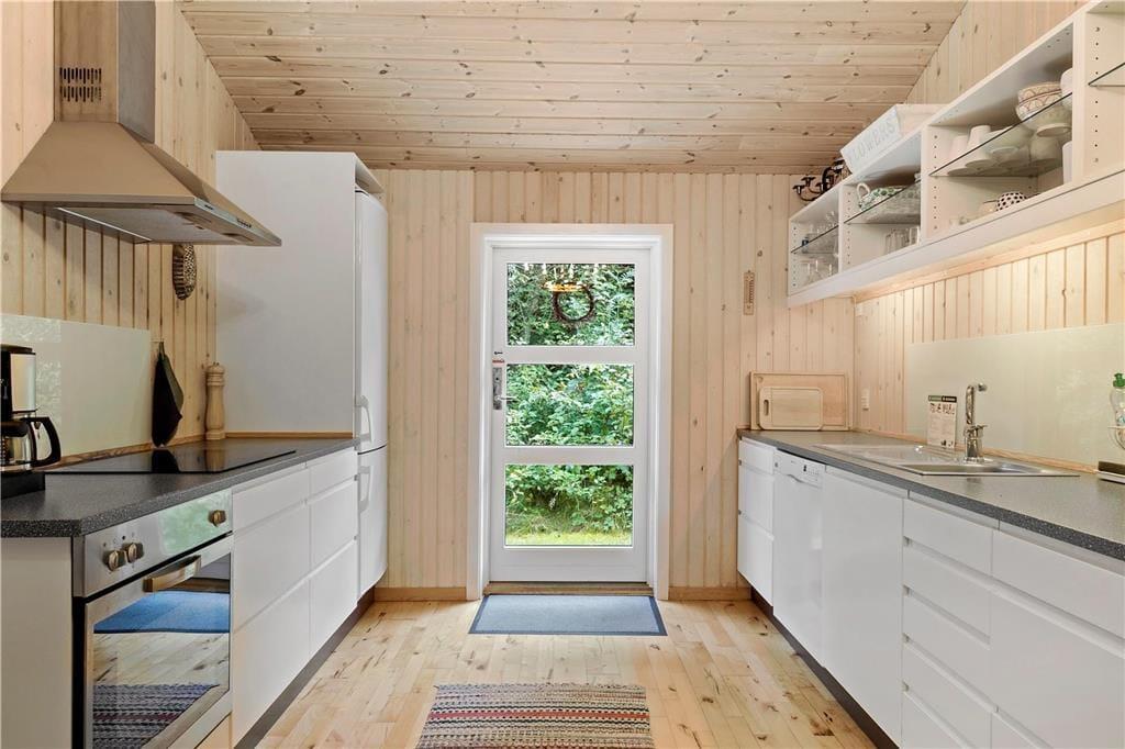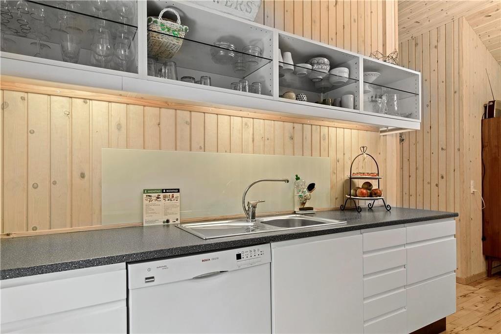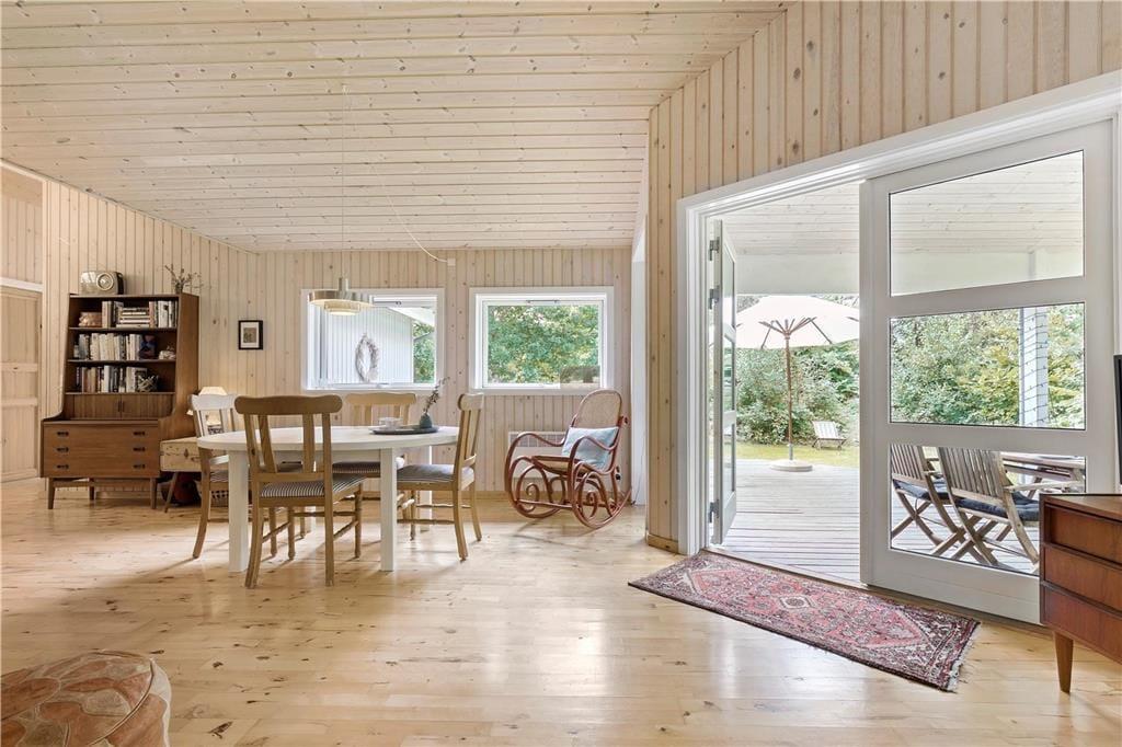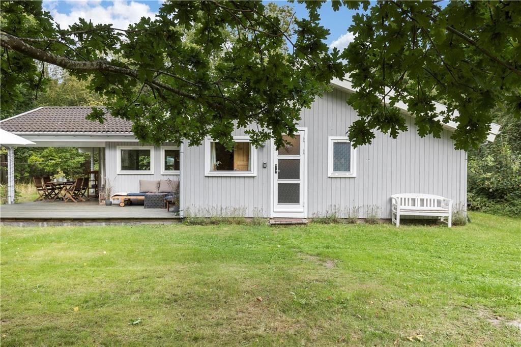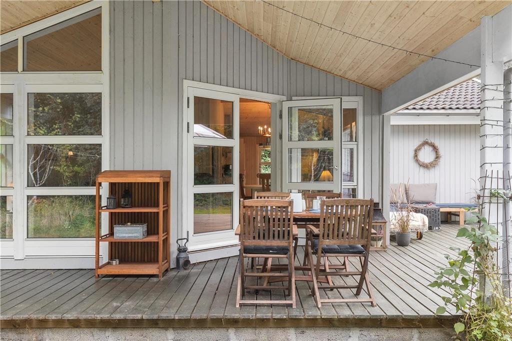 Med masser af lysindfald fra de store vinduespartier, fyrretræsgulv og lyse trævægge, føler du dig som opslugt af naturen når du sætter dig i den store hjørnesofa med plads til hele familien og kigger ud i haven. Mens varmen fra brændeovnen breder sig, og kakaoen bliver sat på bordet, nyder du den ro og fred, som findes i dette velholdte og velindrettede sommerhus - og får måske lyst til at spille et spil med familien eller bare slappe helt af og nyde stilheden.