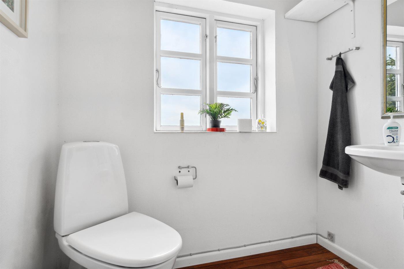 Der er 1 badeværelse med bruseniche og 2 toiletter, heraf 1 gæstetoilet.