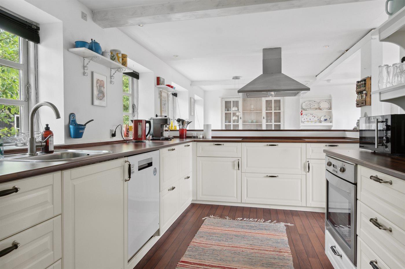 Køkkenet er udstyret med 1 køleskab. Der er 4 induktionskogeplader, varmluftovn, mikrobølgeovn samt opvaskemaskine.