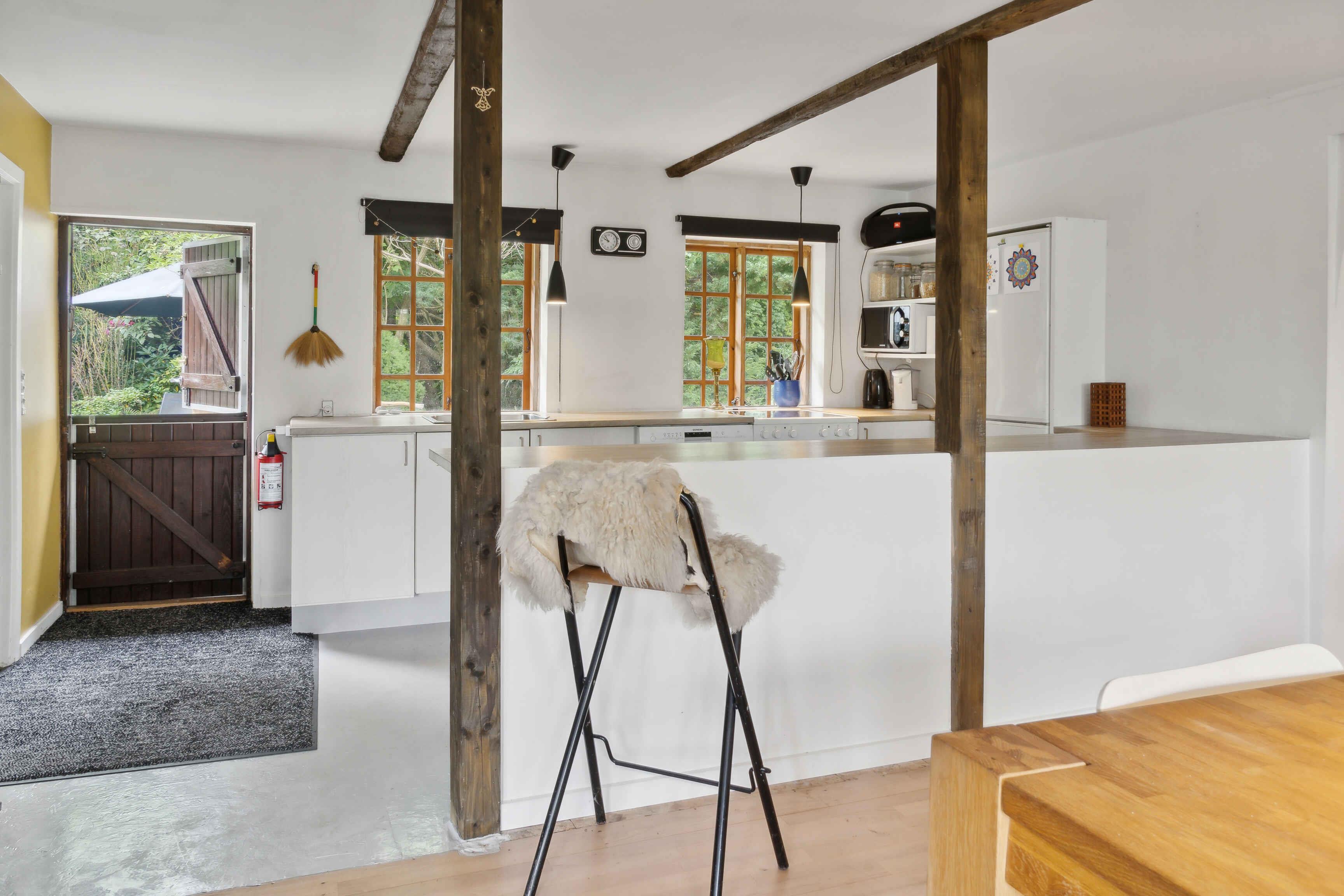 I huset på landet kan du og familien få lov at boltre jer som I har lyst! Her er rigeligt plads til sjove aktiviteter, kreativ udfoldelse og masser af afslapning. Lav et bål i haven (brænde findes på stedet, og haven er indhegnet ifht husdyr) eller slip dig selv løs i kreativitetsrummet som indeholder alt fra forskellige brætspil til spillekort og terninger. Der er også fitnessudstyr, karaokeanlæg og male/tegnegrej. Du kan også tilberede din middag i udekøkkenet på en varm sommeraften eller gå en tur i den spændende have. Huset på landet i Nakskov er en perfekt oase for dem, der søger en fredfyldt og rummelig feriebolig. Med sine 200 m2 tilbyder huset komfortabel indkvartering til op til 8 personer, og 2 ekstra madrasser i den yderste stue kan også bruges som sovepladser. Huset er indrettet med en varm og indbydende atmosfære og de store vinduer fylder rummene med naturligt lys. Soveværelserne er rummelige og komfortabelt møblerede med hver med sin egen unikke stil, og der er rigelig plads til opbevaring. De store senge sikrer en god nats søvn efter en dag fyldt med aktiviteter og udflugter. Køkkenet indenfor er fuldt udstyret med moderne apparater og alt det nødvendige køkkenudstyr. Spisestuen er perfekt til hyggelige middage med familie og venner, mens den tilstødende stue byder på bløde sofaer og et sted at slappe af og nyde hinandens selskab. Udenfor finder I den store spændende have hvor børnene kan gå på eventyr i lysthuset i ’skoven’, og de voksne kan finde et ugeneret sted at nyde en kop kaffe. Der er også en dejlig terrasse, perfekt til grillmiddage. Der findes riste til på grill over bål, og der er også grill i udekøkkenet under overdække. Beliggenheden i Nakskov giver nem adgang til områdets naturskønne omgivelser og seværdigheder, se gerne https://www.visitlolland-falster.dk Uanset om I ønsker at udforske de lokale strande, tage på vandreture i naturen eller besøge charmerende landsbyer i nærheden, er dette sommerhus det ideelle udgangspunkt for jeres ferieeventyr.