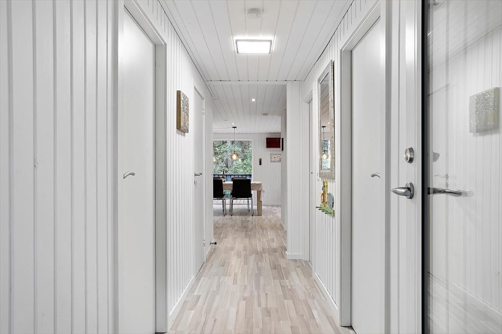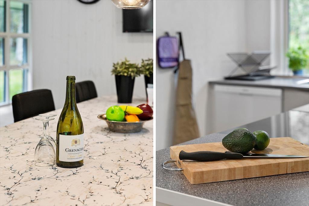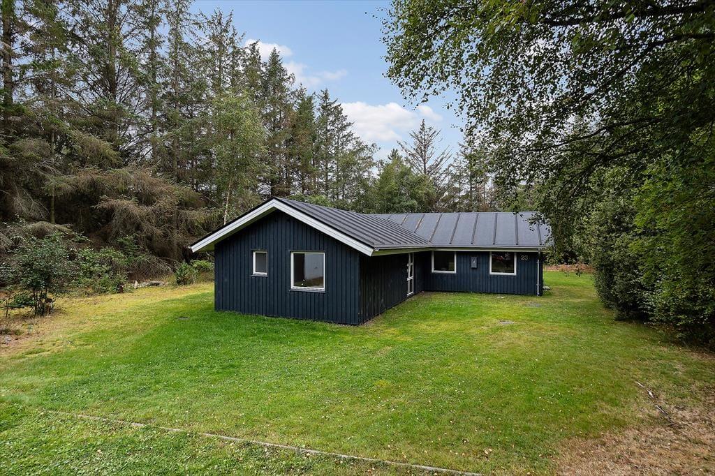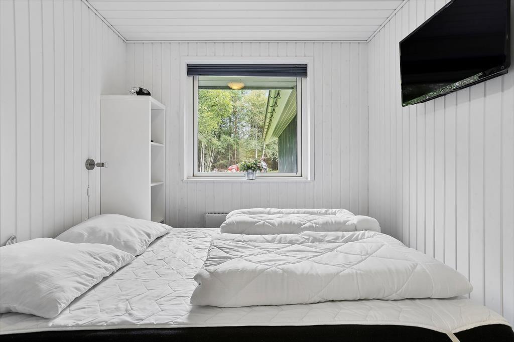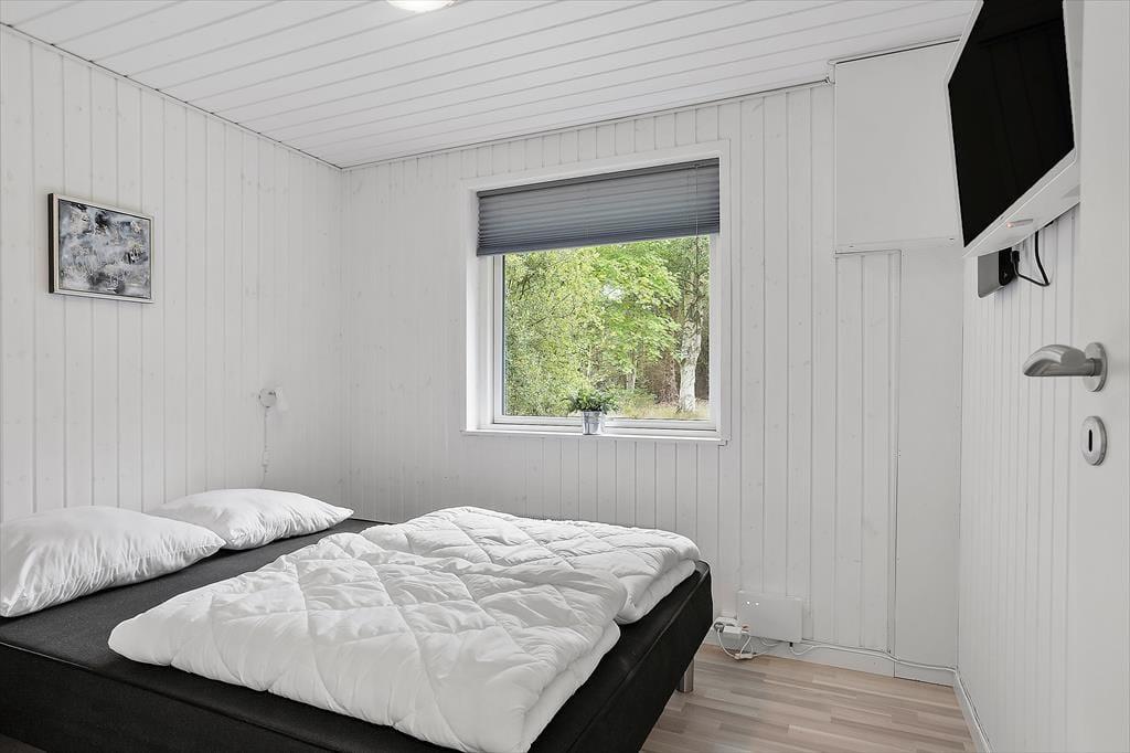 Sommerhuset byder dig velkommen med en hyggelig og hjemlig stemning, hvor du straks mærker ferierolens varme favntag. De lyse rum skaber en behagelig atmosfære, hvor familien kan samles til gode stunder – hvad enten det er til afslappet samvær eller hyggelige spilaftener. Den rummelige stue åbner op mod terrassen med store vinduer, der lukker dagslyset ind og giver en følelse af at være tæt på naturen. Køkkenet er enkelt og funktionelt, et oplagt sted til at trylle lækre feriemåltider frem. Sommerhuset er ideelt for jer, der ønsker at tage hundene med, da der er plads til to firbenede familiemedlemmer, som kan nyde den store grund og trygge omgivelser.