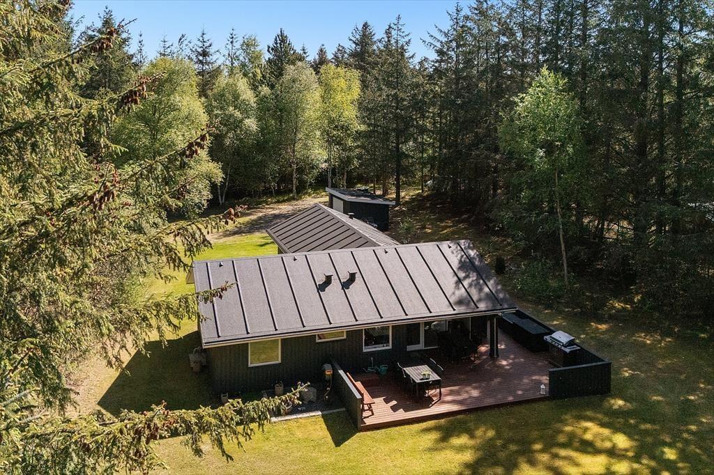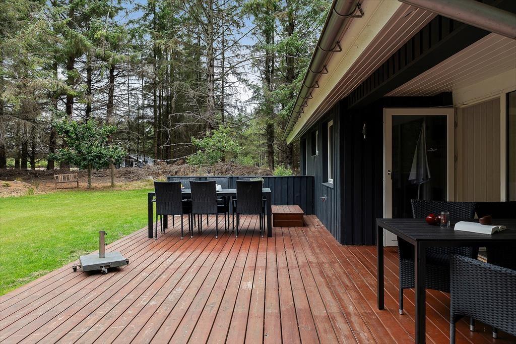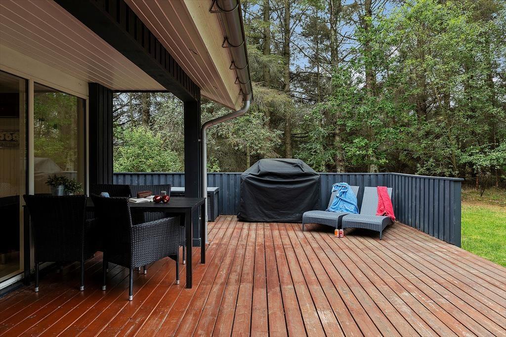 Udearealerne er sommerhusets hjerte, hvor en stor, overdækket terrasse inviterer til lange feriedage i både sol og skygge. Her kan I nyde morgenkaffen, mens fuglene kvidrer, eller samle familien til aftensmad under åben himmel. Den store grund er dejligt afskærmet, så I kan finde rolige kroge til afslapning, leg og leg med hundene. De gode læ-muligheder gør terrassen attraktiv, uanset vejret, så I kan få mest muligt ud af ferien i det fri. Sommerhusets placering på Tranebærvej sikrer en fredelig atmosfære, hvor naturens lyde og den friske havluft skaber en unik ramme om jeres ophold.