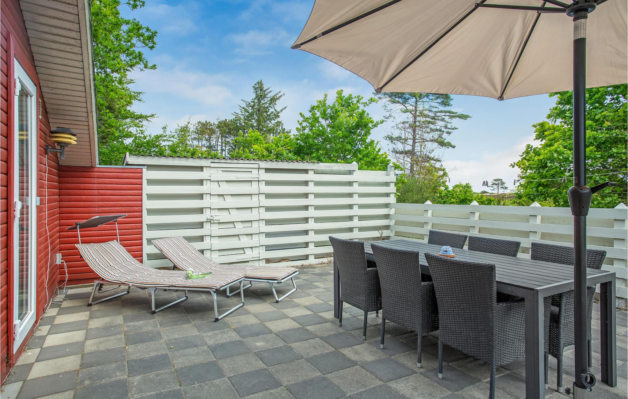På en ugenert naturgrund venter dette tiltalende feriehus med sauna. Huset byder på en lys og venlig atmosfære og ligger blot 350 meter fra den dejlige strand. Her er der plads til brætspilshygge, gæt og grimasser, fælles madlavning og meget mere. Brug det åbne opholdsrum som et centralt mødested for familien. Den store have med mange træer bliver et hit hos børnene. Slap af på terrassen til fuglenes glade sang og planlæg morgendagens udflugt til Råbjerg Mile. Senere kan I nyde den lune sommeraften med lækre grillretter. Husets beliggenhed lægger også op til en tidlig dukkert for de morgenfriske.
