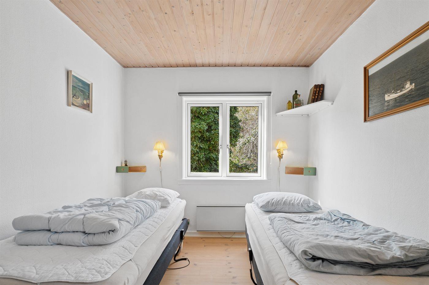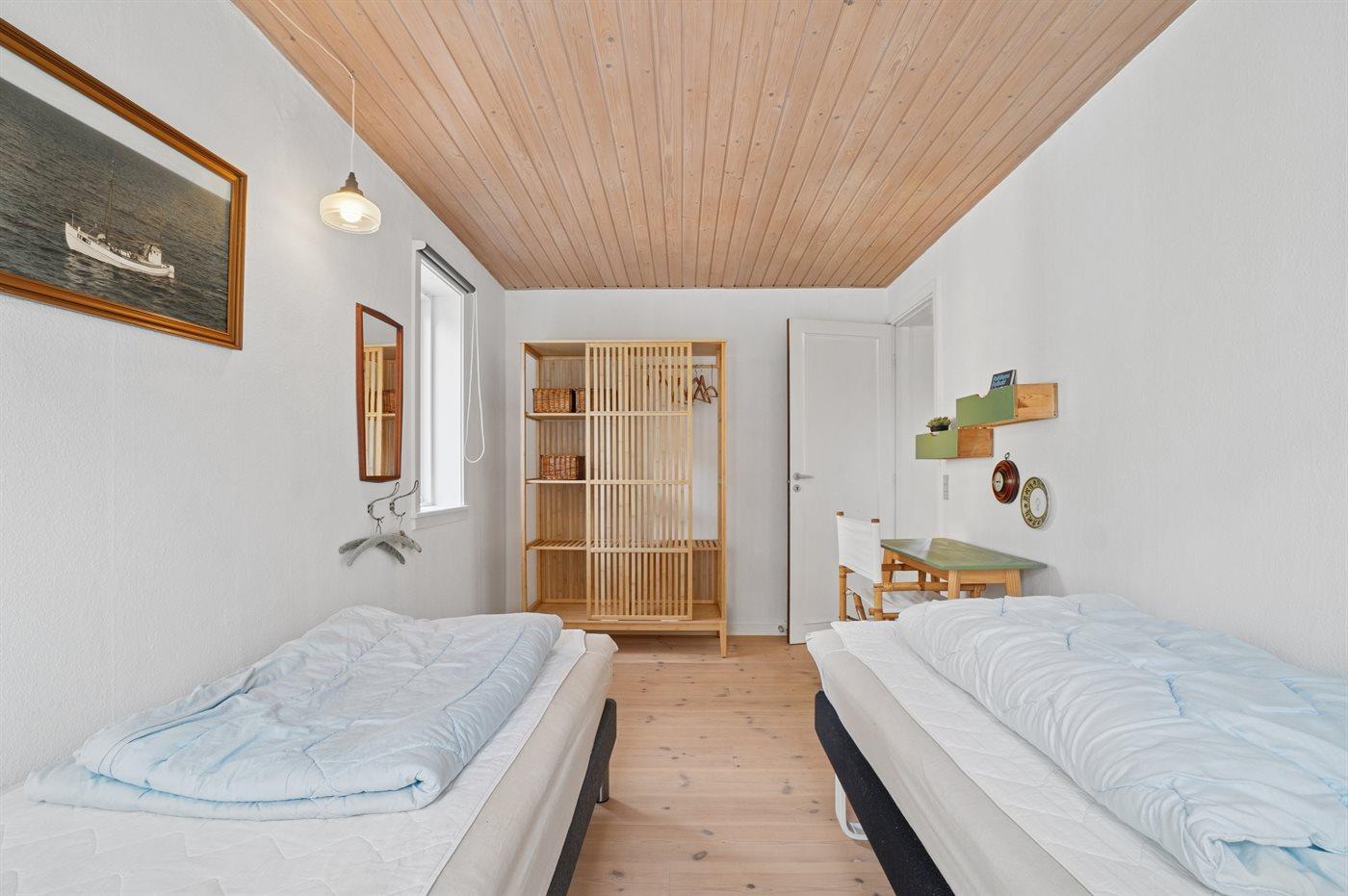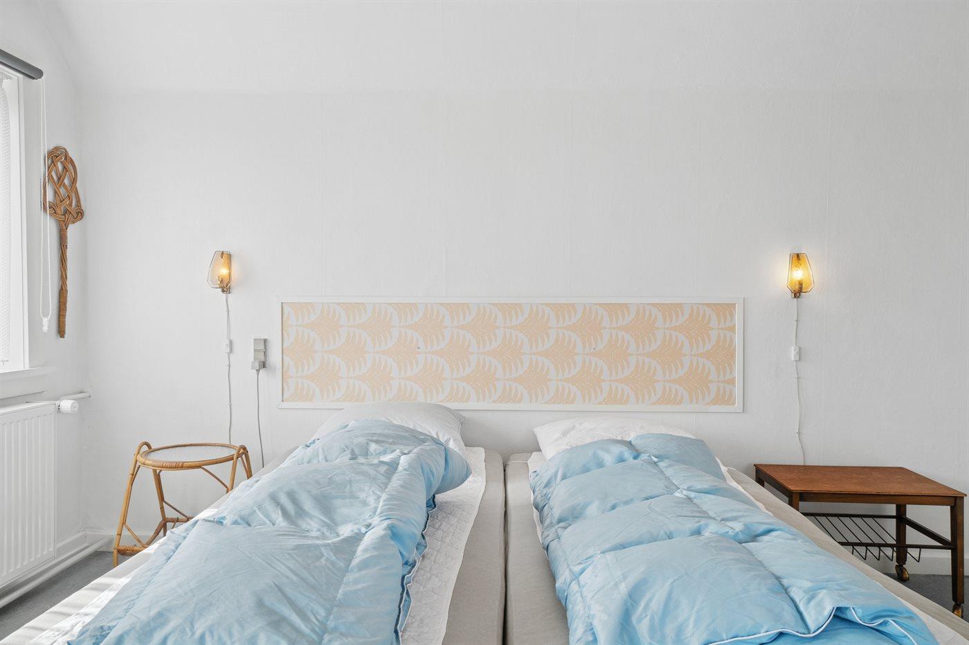 Der er i alt 4 soveværelser. Sovepladserne fordeler sig på: 4 sovepladser i dobbeltsenge. 2 sovepladser i enkeltsenge.2 sovepladser i elevationssenge. Derudover er der 1 stk. barneseng.