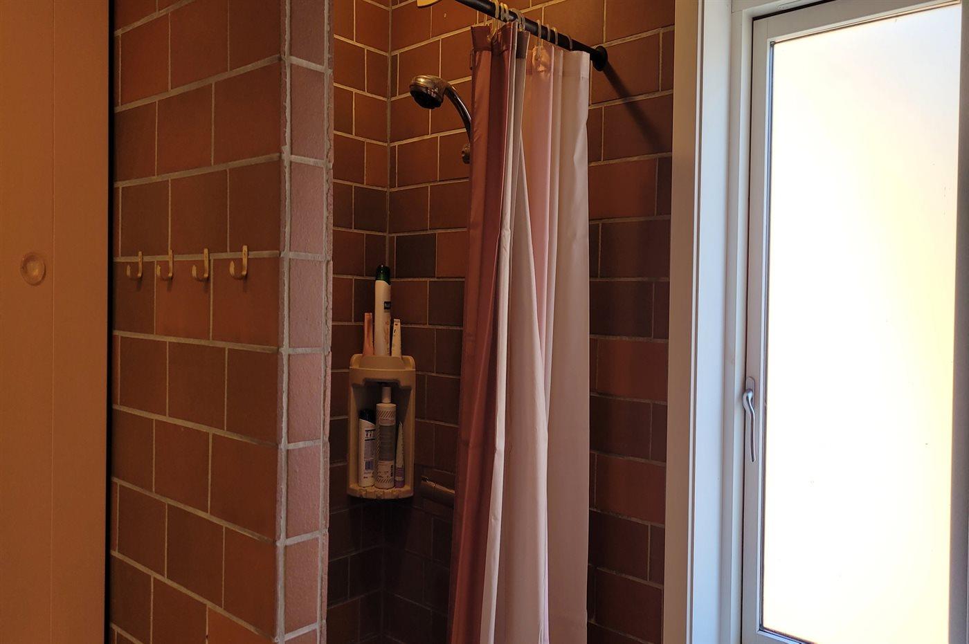 Der er 1 badeværelse med bruseniche og 2 toiletter, heraf 1 gæstetoilet. Der er gulvvarme på 1 badeværelse.