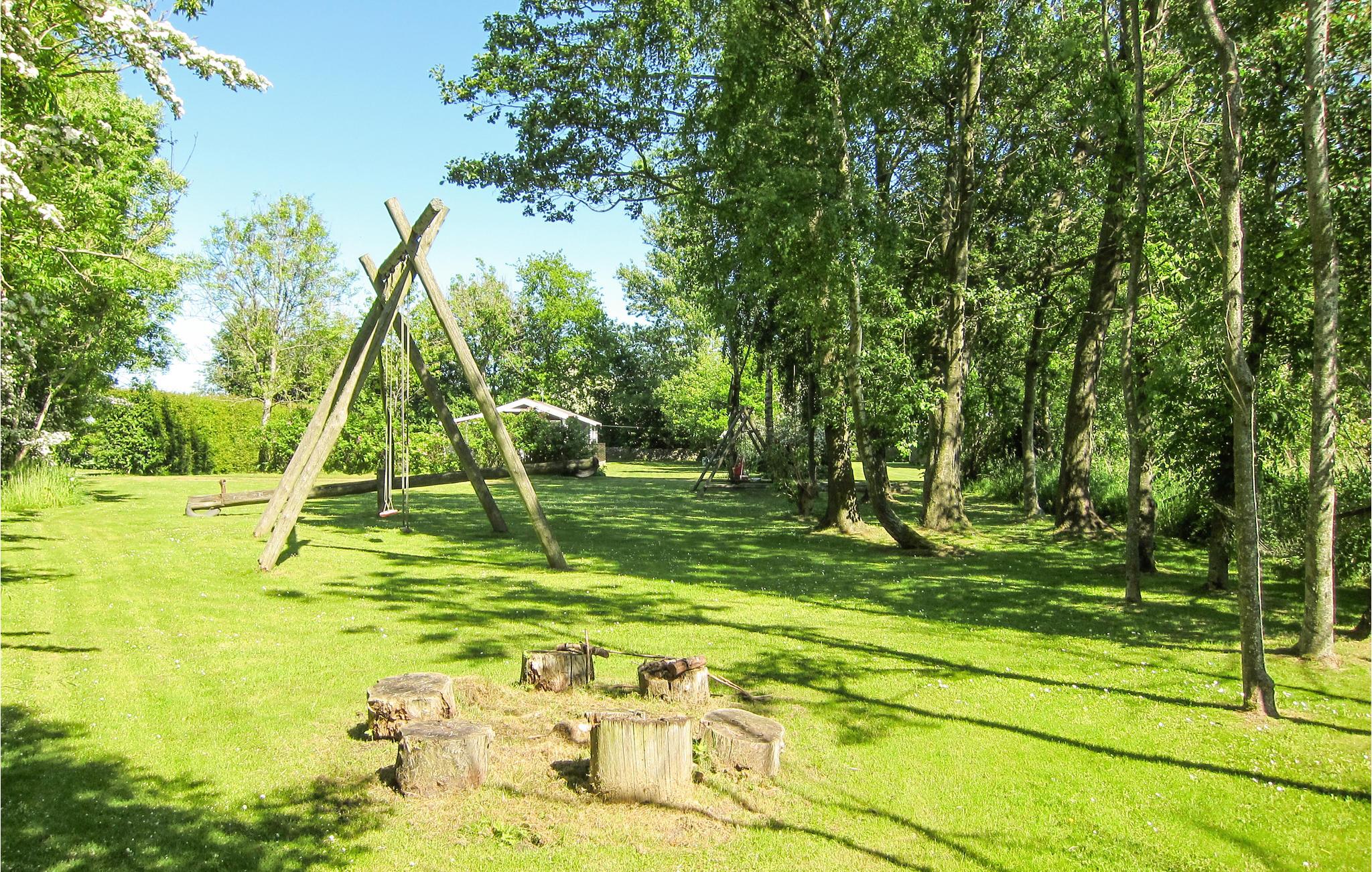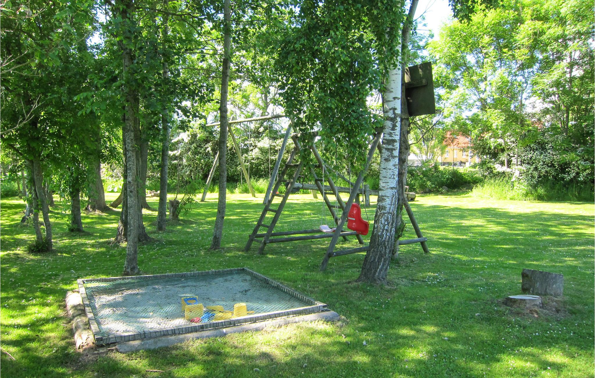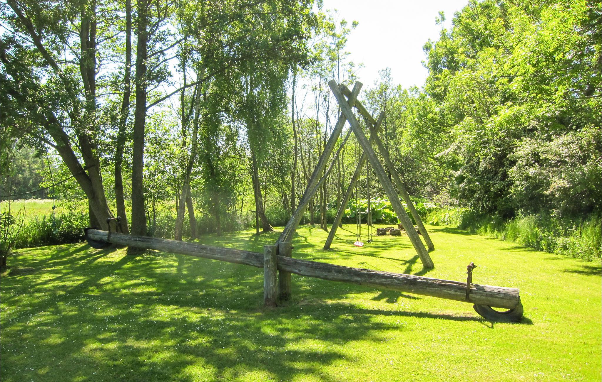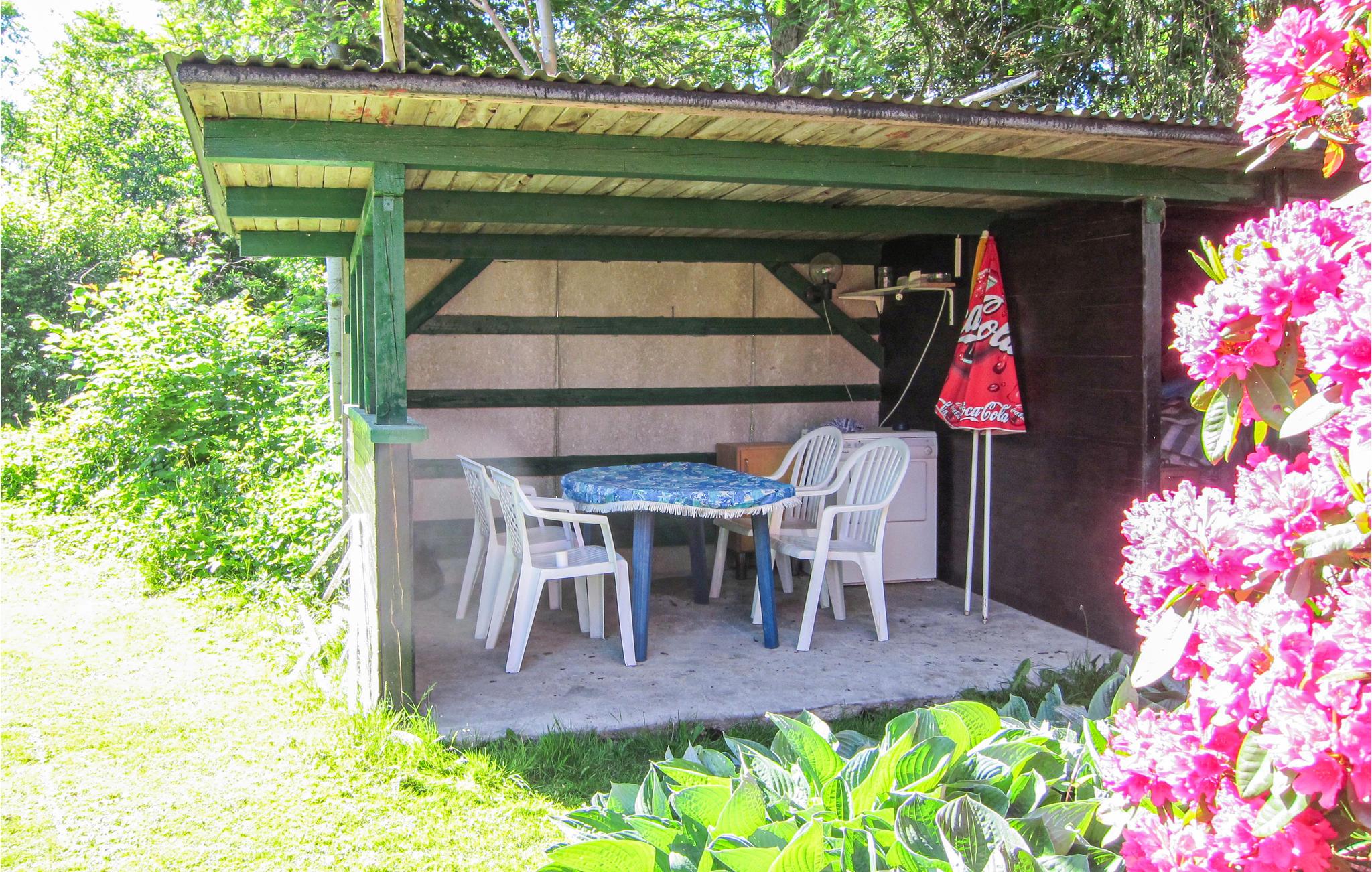 Udendørs venter en dejlig træterrasse med havemøbler og grill, hvor I kan nyde de lange, lyse nætter med udsigt til en flot og velholdt have. Den anden terrasse er overdækket og deles med nabohuset. Hvis I har børn med, får I garanteret stor glæde af den nærliggende legeplads. Hvis I rejser sammen med en anden børnefamilie, ligger der et hyggeligt feriehus ved siden af.