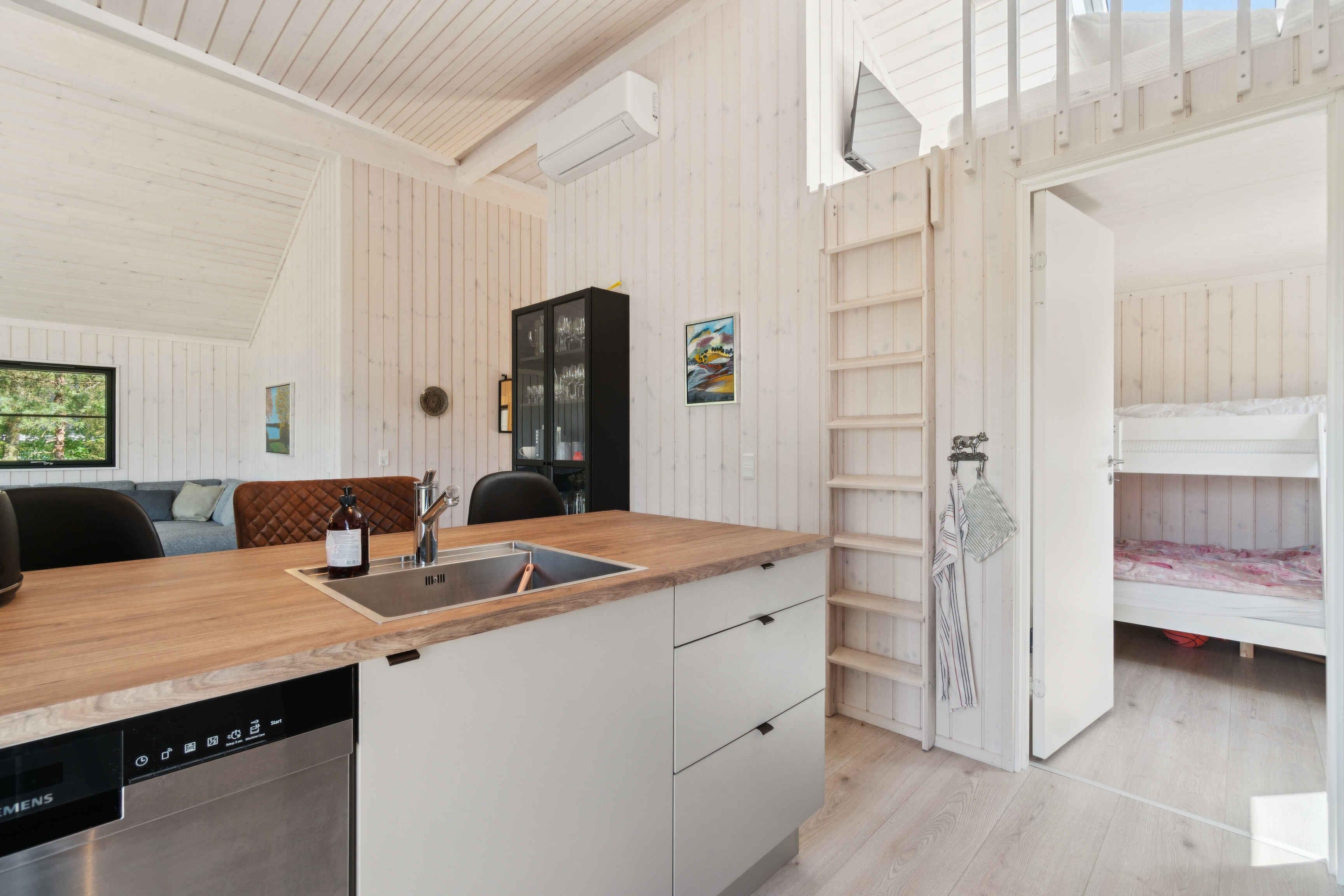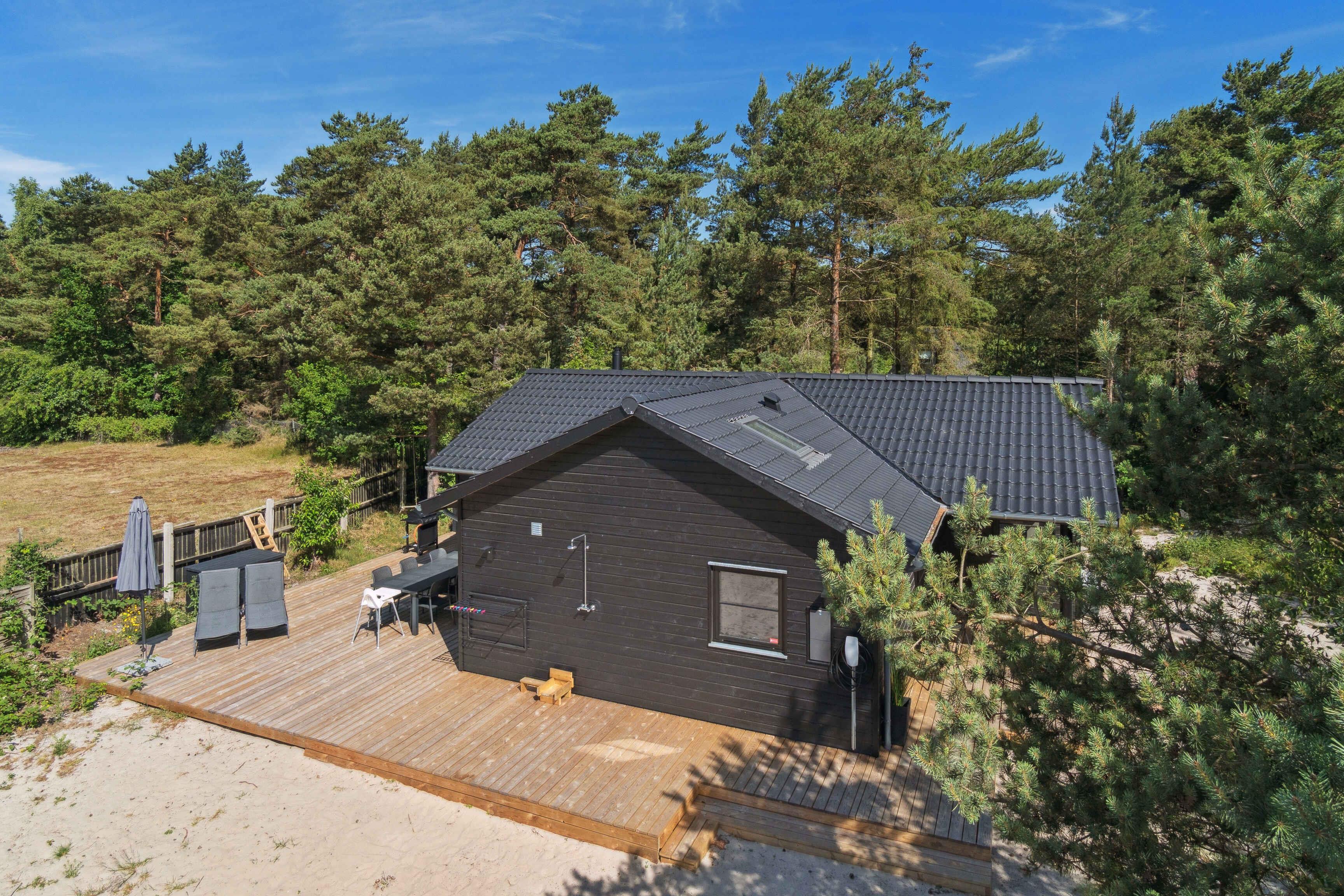 Moderne feriehus i Nexø med stor terrasse, brændeovn og tæt på strand og natur.