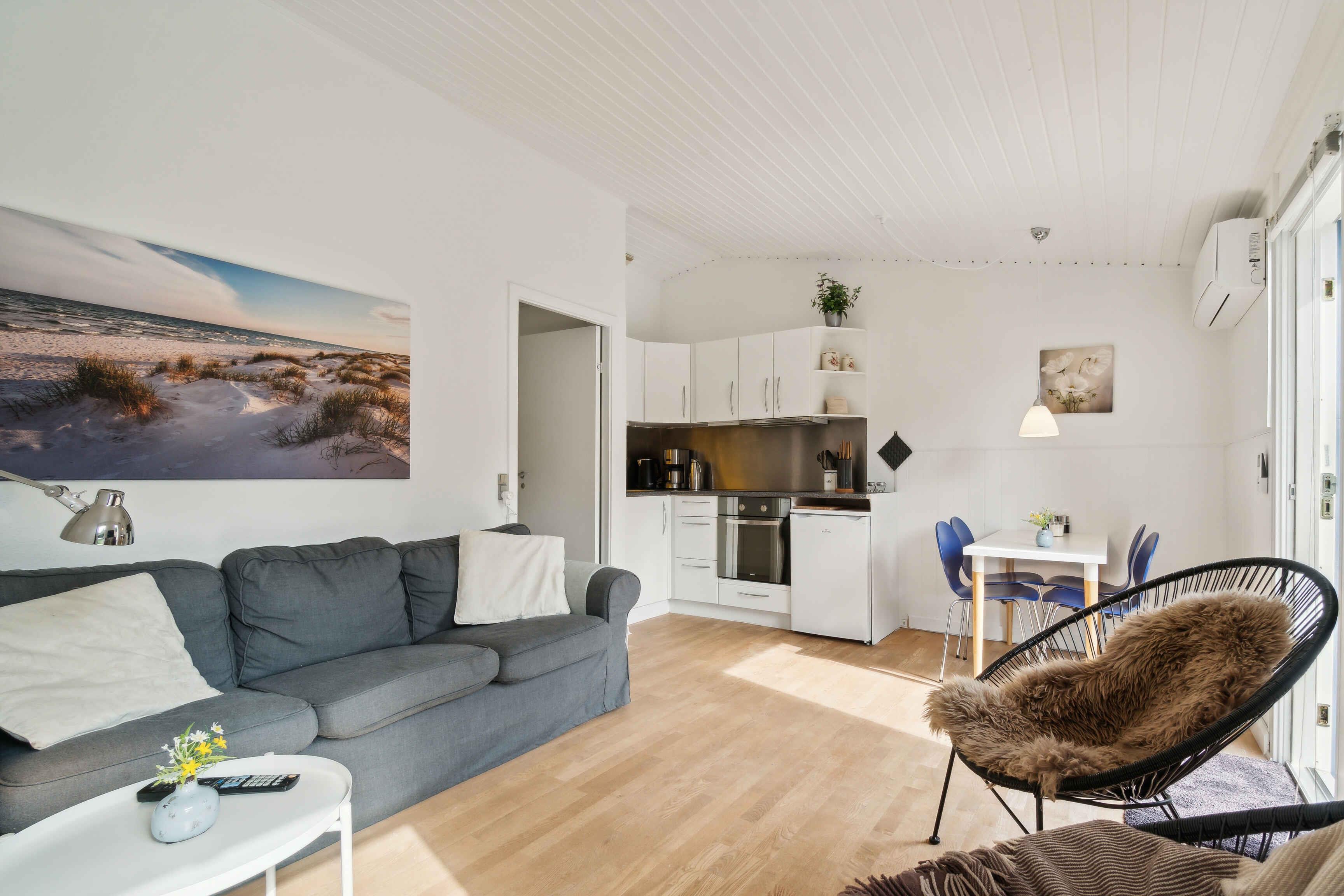 Indbydende og nyrenoveret lejlighed med en helt forrygende beliggenhed ved Dueodde strand. I Dueodde Feriepark har i adgang til inden -og udendørs pool, sauna, legeplads og tennisbane. Lejligheden indeholder soveværelse, stue, køkken og alkove