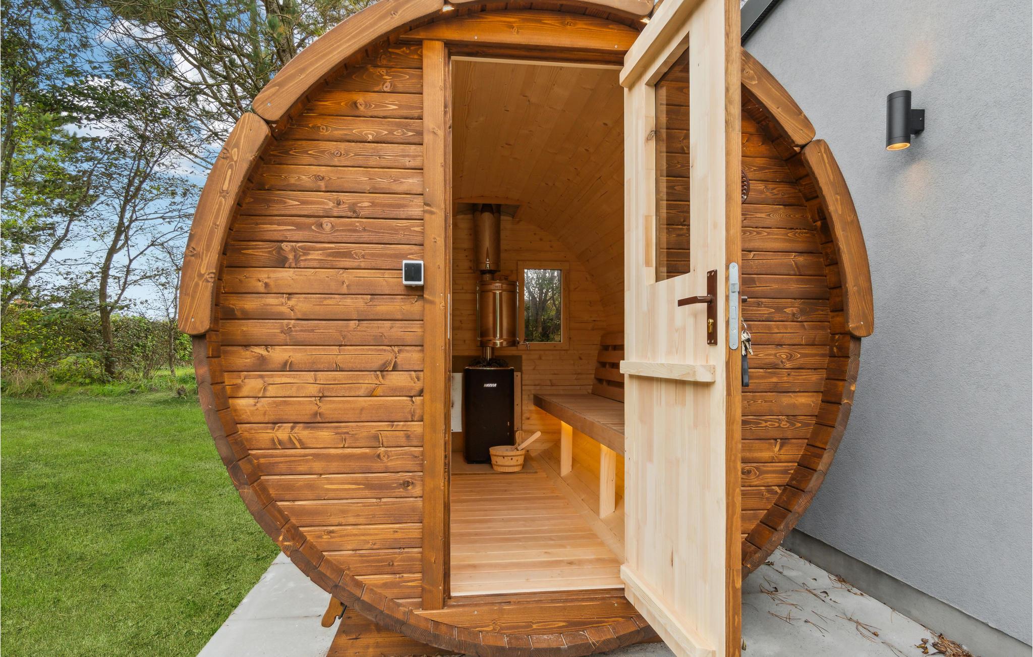 Her finder I alt, hvad I har brug for til en behagelig ferie. Tag hele familien med og flyt ind i dette store feriehus. Her kan I alle finde ro og glemme hverdagens bekymringer. Efter en lang dag med oplevelser er det herligt at vende tilbage til feriehuset og snuppe et dyp i poolen, hvor der er separat børnepool til de mindste. I den indbydende stue med moderne køkken kan I tilberede jeres ferieretter sammen og nyde dem ved spisebordet. Den overdækkede terrasse er også perfekt til dette formål. Dæk op til morgenmaden udenfor, mens børnene leger på græsplænen, klatrer en tur op i legetårnet eller springer om kap på trampolinen. Hvis I overvejer en fællesaktivitet, er der plads til hele familien i tøndesaunaen, så her kan I samles og nyde en rolig stund oven på dagens program.