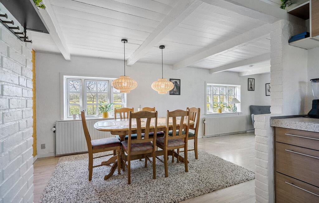 Tag familien under armen og rejs til Vestjylland, hvor der venter jer en herlig ferie i dette fine hus lidt uden for No. Huset er nydeligt indrettet med lyse trælofter, fritlagte murværk og synligt bindingsværk, der sammen med de moderne møbler og faciliteter skaber de bedste rammer for et afslappende ophold uden de store bekymringer. Køkkenet er stort og veludstyret, så her kan familiens kokke tage sig god tid med madlavningen, mens andre dækker op ved spisebordet eller tager et slag pool i aktivitetsrummet.