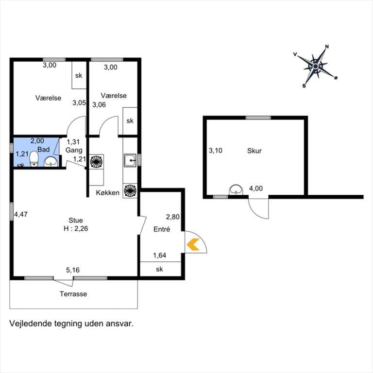 Boligen er på 56 m² og ligger på en 1.251 m² stor grund.
