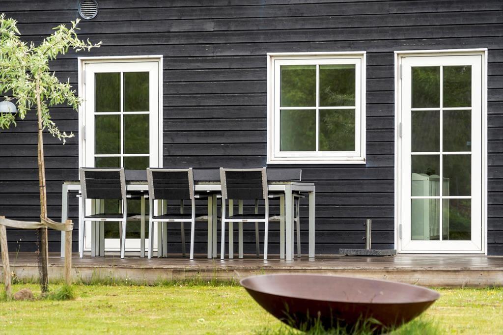 På husets øst- og sydvendte side ligger en god terrasse – ideel til morgenkaffen og eftermiddagssolen. Her kan I også tænde op i grillen og nyde de dejlige sommeraftener.