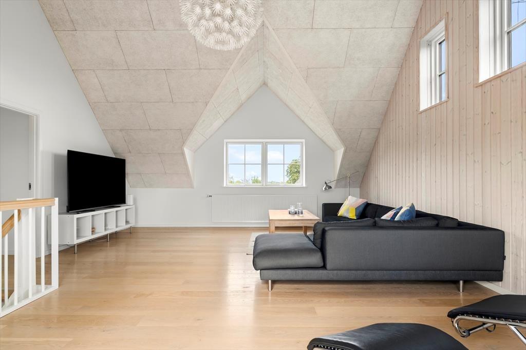 Ved huset er der desuden en god indkørsel med plads til flere biler, så praktikken er nemt klaret.
