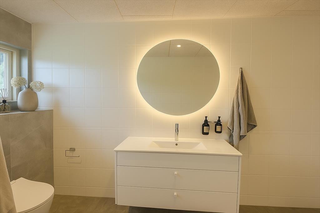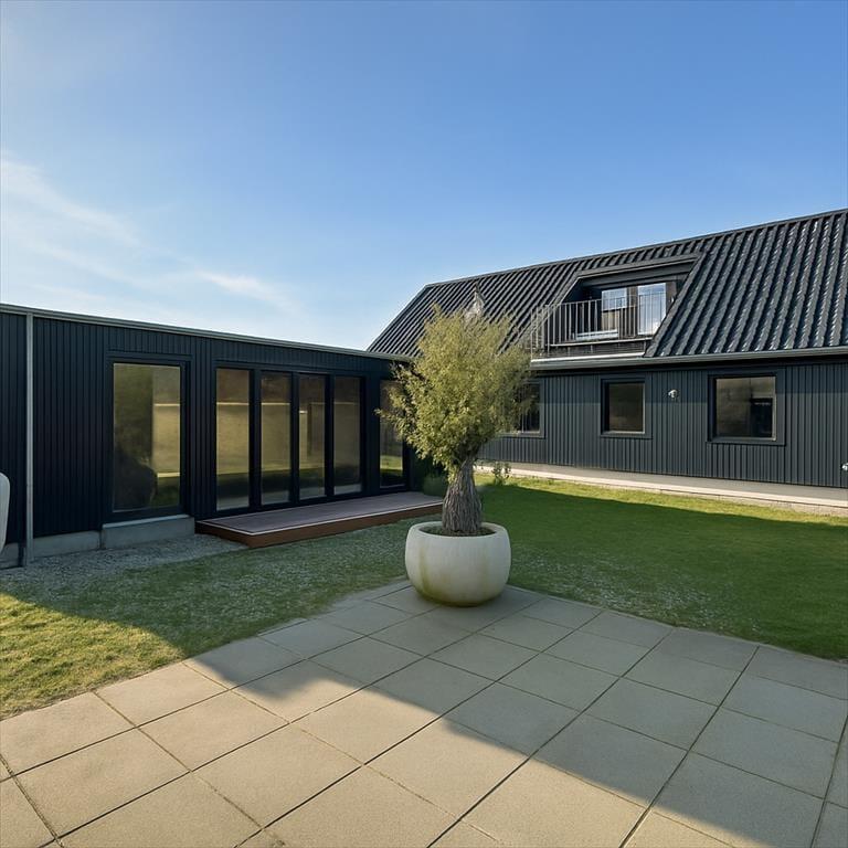 Udenfor finder I både øst- og vestvendte terrasser samt en lukket have, som sikrer privatliv og ro. Et dejligt vildmarksbad giver ekstra luksus til ferien. Den hyggelige landsby Nordby ligger tæt på med sine smukke gamle huse, restauranter og butikker.