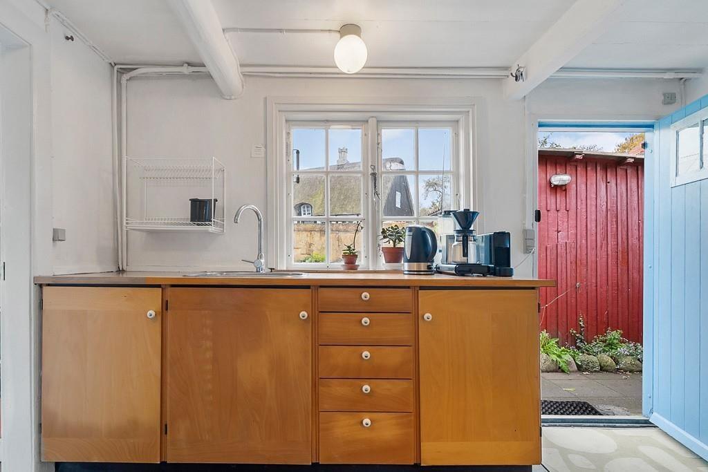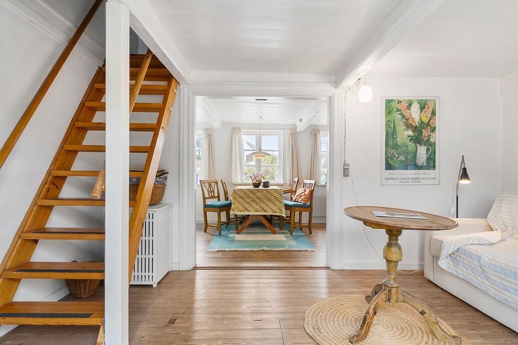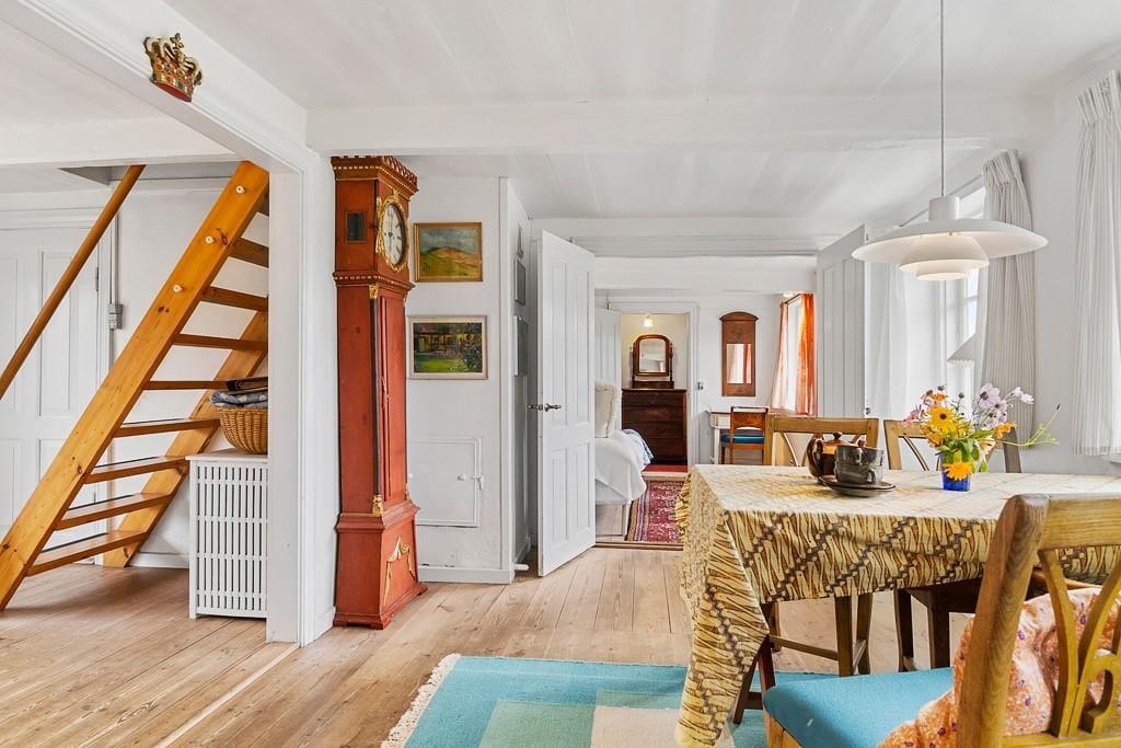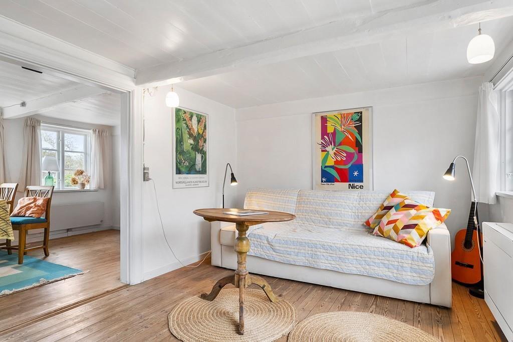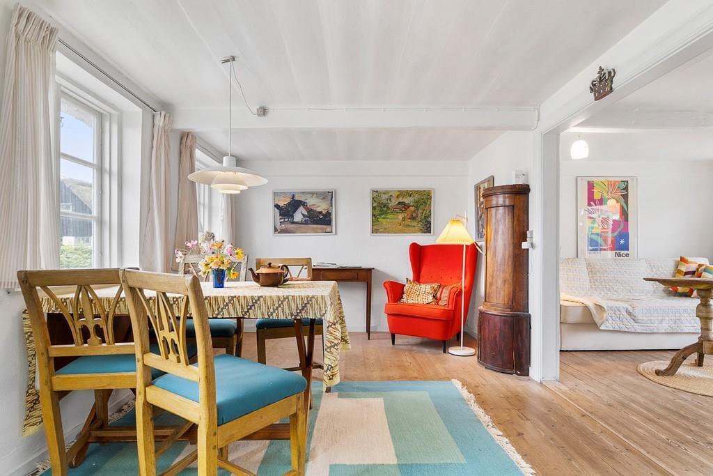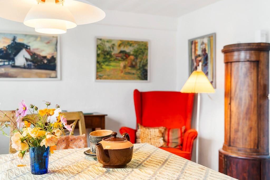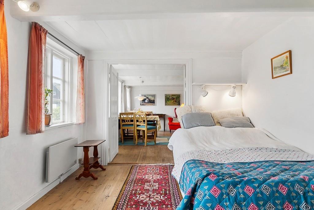 Indenfor mødes du af en varm og indbydende atmosfære med lyse rum, charmerende detaljer og alt, hvad der skal til for et afslappet ophold. Huset ligger blot få skridt fra Nordbys hyggelige gader, brinkerne, gadekæret og de små specialbutikker, som gør byen til noget helt særligt.