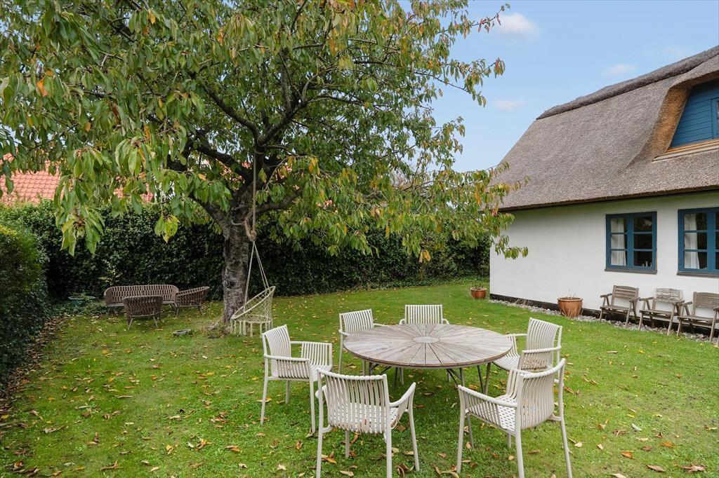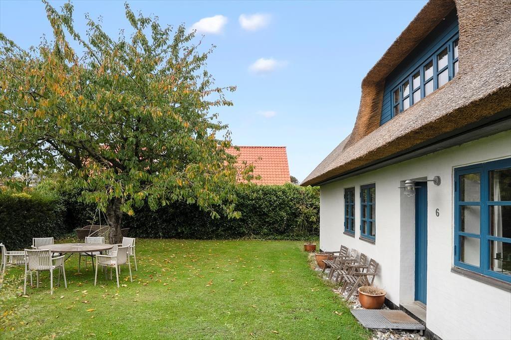 Det meste af den lukkede have ligger syd for huset med hæk mod naboer og stakit ud til indkørsel /p-plads. Til huset er der grill og gode havestole til rådighed. Man er her midt i mellem det gamle Nordbys smukke, traditionelle huse og er trukket lidt tilbage fra dér, hvor de fleste turister passerer forbi. Alligevel er der kun 250 m til gadekæret og mindre endnu til café og delikatesseforretning i den gamle købmandsbutik.