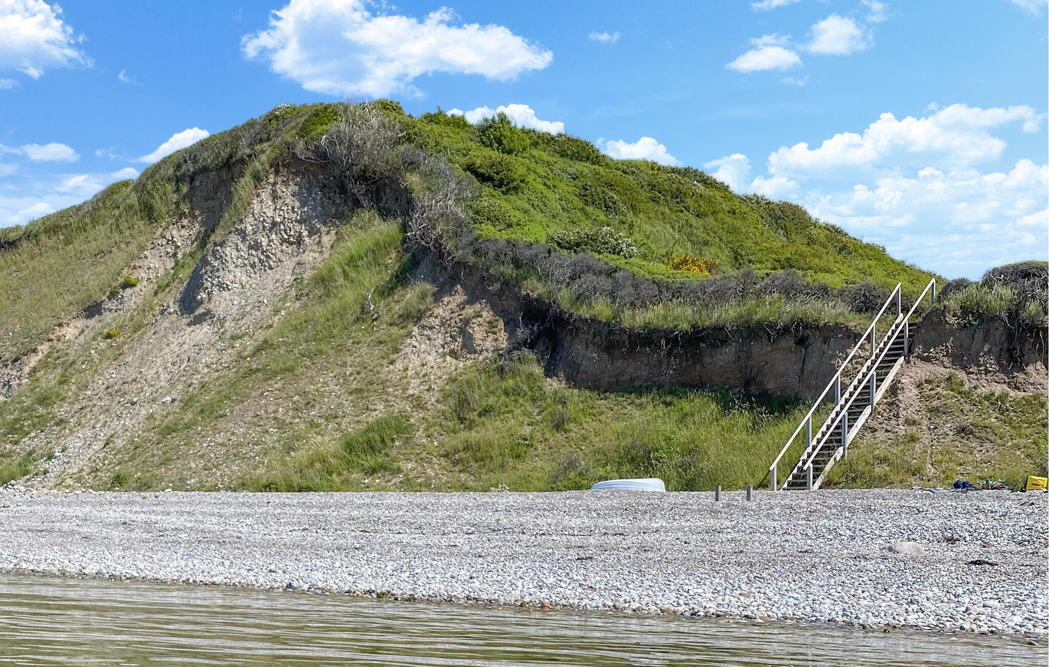 Charmerende sommerhus med direkte adgang til stranden og fantastisk havudsigt i fredelige Nordby Bakker på Samsø.