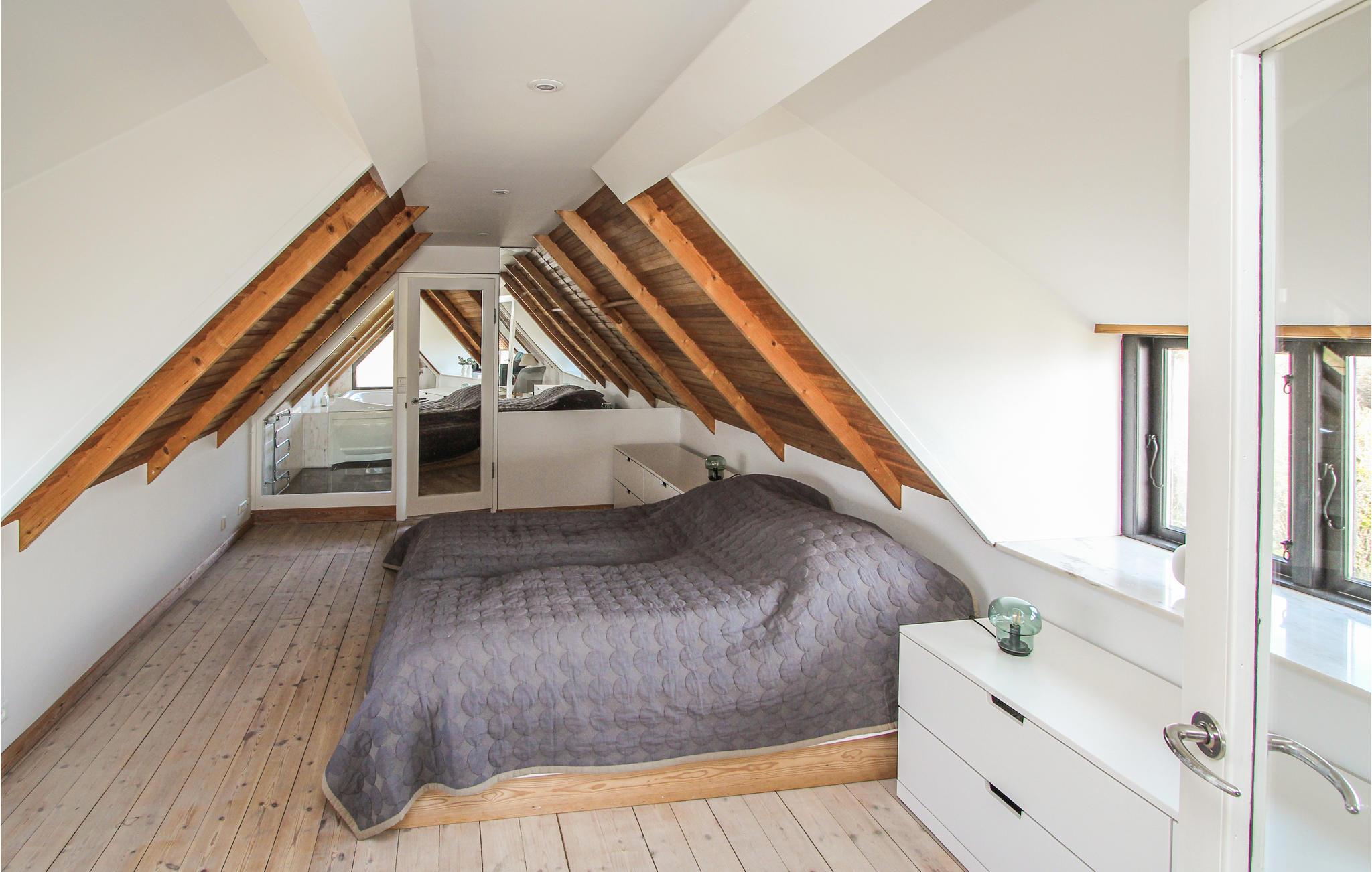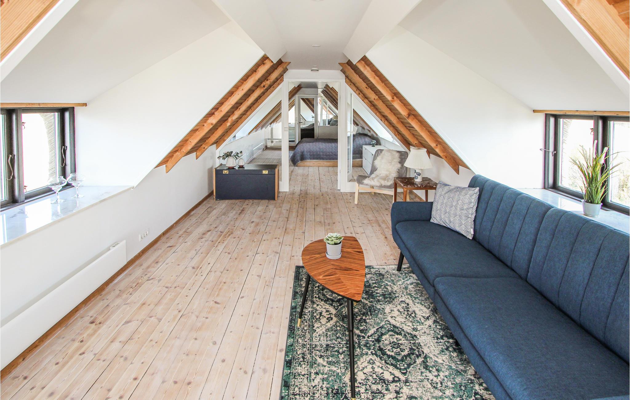 Det indbydende hus byder jer velkommen direkte på vestkysten af Nordsamsø. Den smagfulde indretning med mange hyggelige hjørner gør det til det ideelle sted for en afslappende ferie, selv med en større familie. Både unge og ældre vil sætte pris på loftet, hvor I kan lege og slappe af under de rustikke træbjælker. Sæt jer godt til rette i sofaen og nyd den fantastiske udsigt over havet. Efter en aktiv dag på øen kan I slappe af i saunaen eller i badekarret med udsigt over det fri.