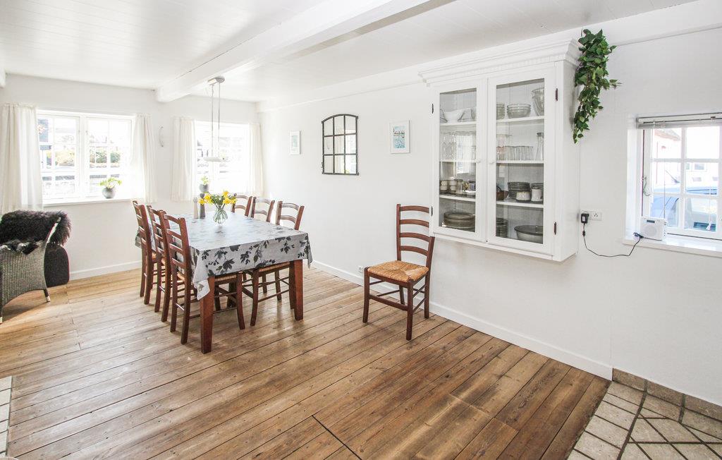 Midt i den maleriske landsby Nordby finder I dette attraktive, stråtækte hus beliggende ud til det byens gadekær. Det nænsomt moderniserede interiør udgør med sine smukke trægulve og andre fine detaljer i indretningen rigtig gode rammer for afslapning og nærvær. Uanset I udfolder jer i køkkenet, quizzer hinanden om eftermiddagen eller holder filmaften, indbyder det åbne køkkenalrum med komfortable siddepladser til hygge for hele familien. Når sommervejret lokker og I får lyst til at sætte jer udenfor, har I flere muligheder lige udenfor jeres dør. Tag kaffekanden og et par koppe med ud og nyd solen i husets atriumhave. Eller find en bænk ved gadekæret og mærk den idylliske stemning og udsigten til stokroser og gamle, smukke huse.