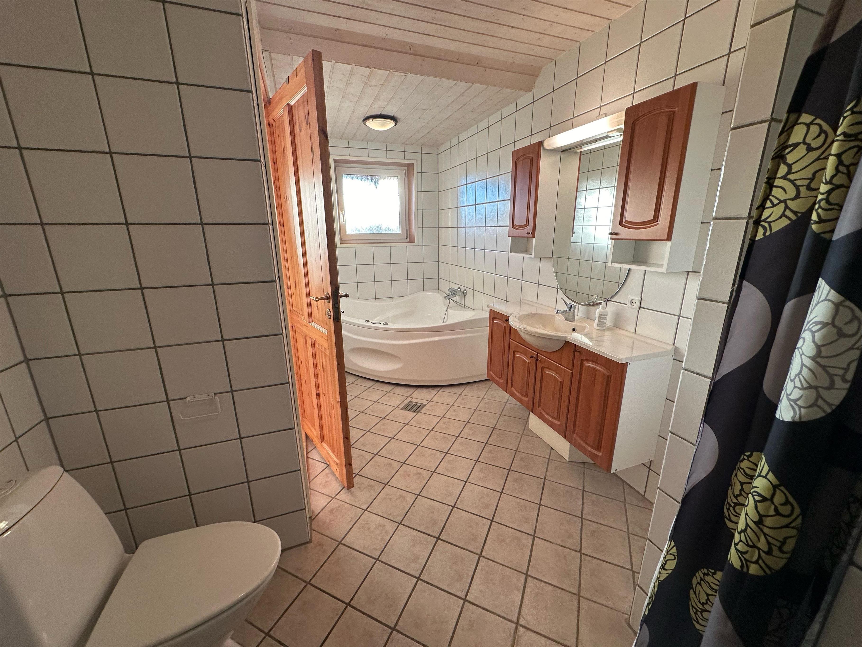 Ferielejligheden har et dejligt soveværelse med dobbeltseng, hvor du kan sove trygt og godt. I stuen finder du en hyggelig alkove med to enkeltsenge – perfekt til børn eller ekstra gæster – samt en praktisk hems med to ekstra sovepladser, ideel til større familier eller grupper, der ønsker at rejse sammen. Badeværelset er indrettet med både brusekabine, spabad og sauna, så du kan forkæle dig selv med en afslappende stund efter en aktiv dag i naturen.