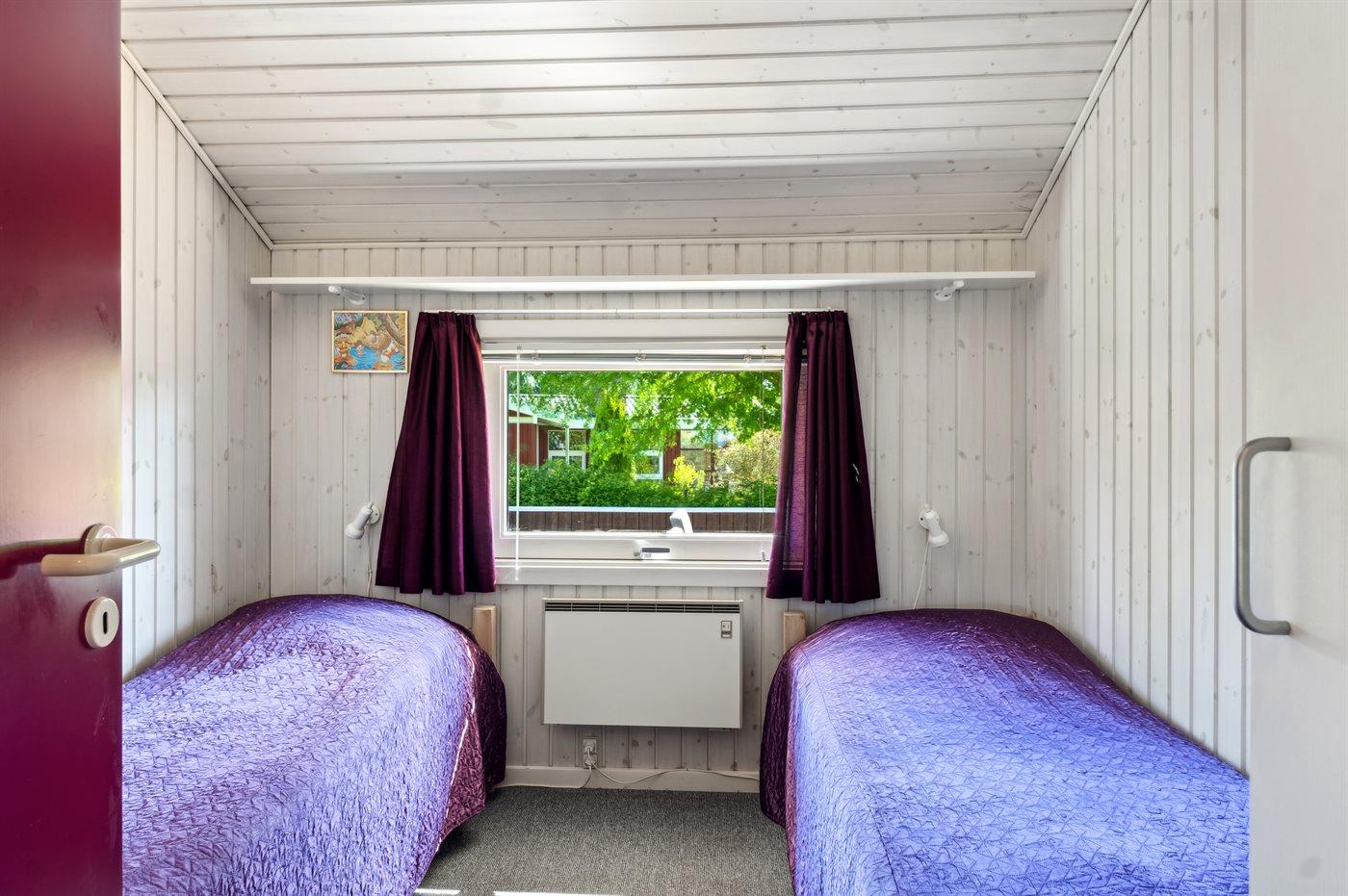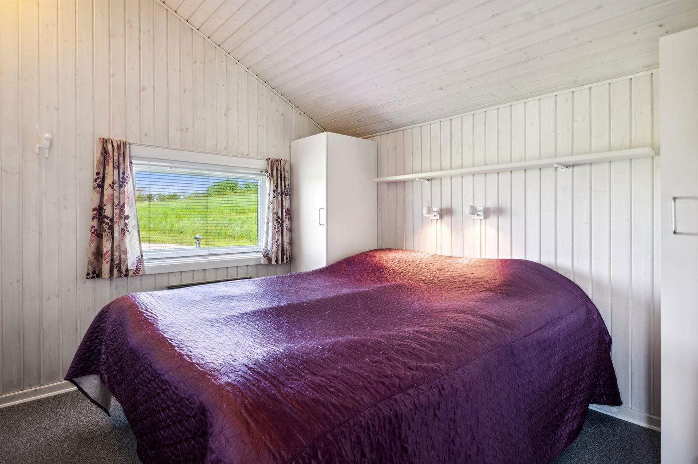 Der er i alt 3 soveværelser. Sovepladserne fordeler sig på: 4 sovepladser i dobbeltsenge. 2 sovepladser i enkeltsenge. 2 sovepladser i alkove. 2 af disse sovepladser befinder sig i stuen. Derudover er der 1 stk. barneseng.