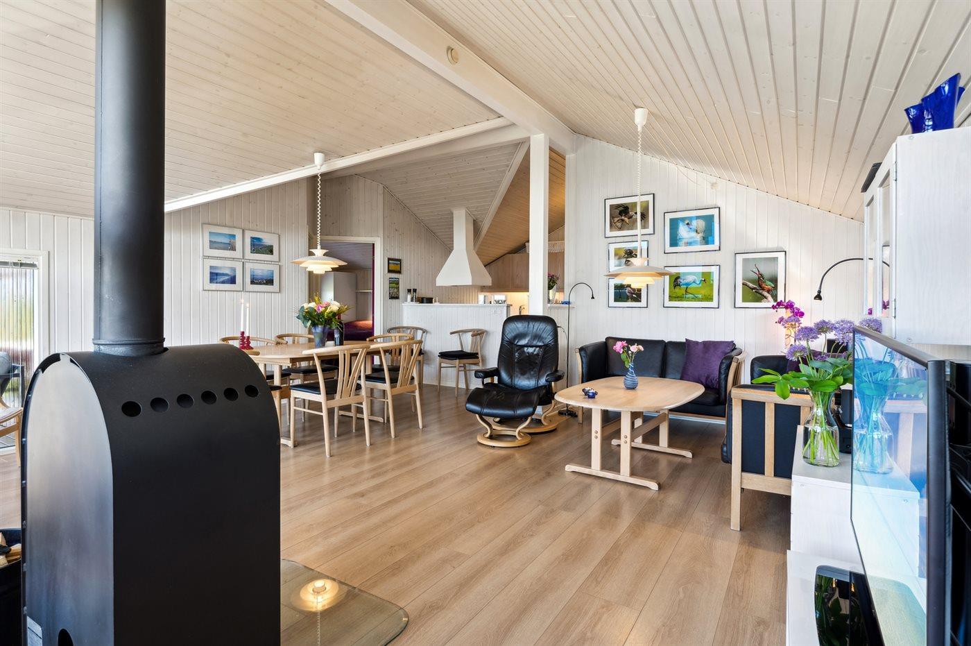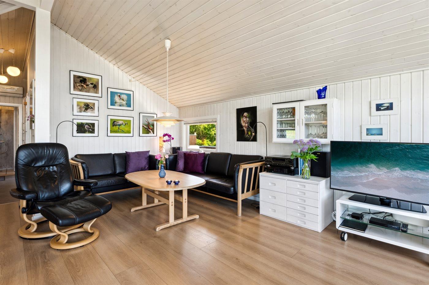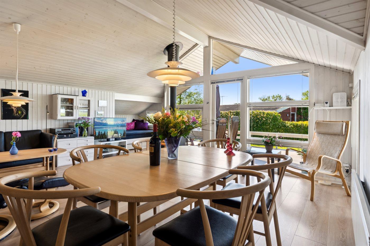 Dejligt lyst og flot sommerhus med en skøn udsigt ud over vandet og fuglereservatet fra både huset og terrassen. Omkring huset er der flere dejlige terrasser, så der er altid mulighed for læ, selv på blæsende dage. Tæt på huset ligger der en legeplads med forskellige aktiviteter, og der er i sommerperioden opsat badebro.
