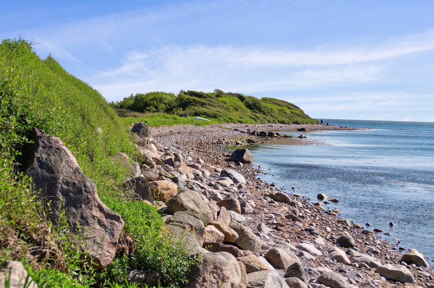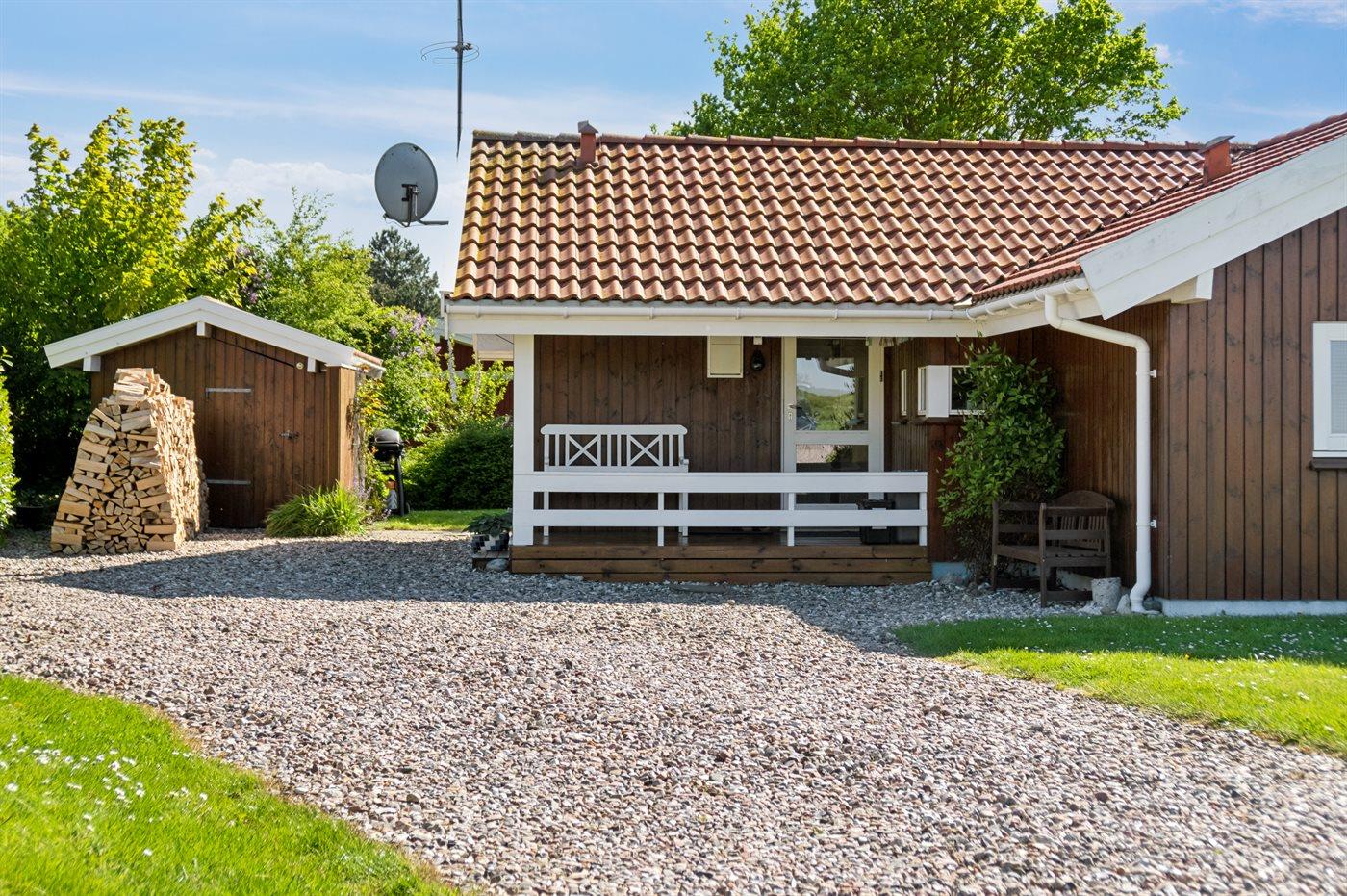 Ferieboligen er beliggende på en 1349 m² stor havegrund. Der er 230 m til havet. Der er en badebro i nærheden. Nærmeste forretning er beliggende i en afstand af 3800 m. Der er en golfbane i en afstand af 5000 m. Til ferieboligen hører åbent terrasseareal. Desuden er der overdækket terrasse. Gynge. Sandkasse. Der ligger en legeplads i en afstand af 230 m. Grill til rådighed. Parkering ved ferieboligen.