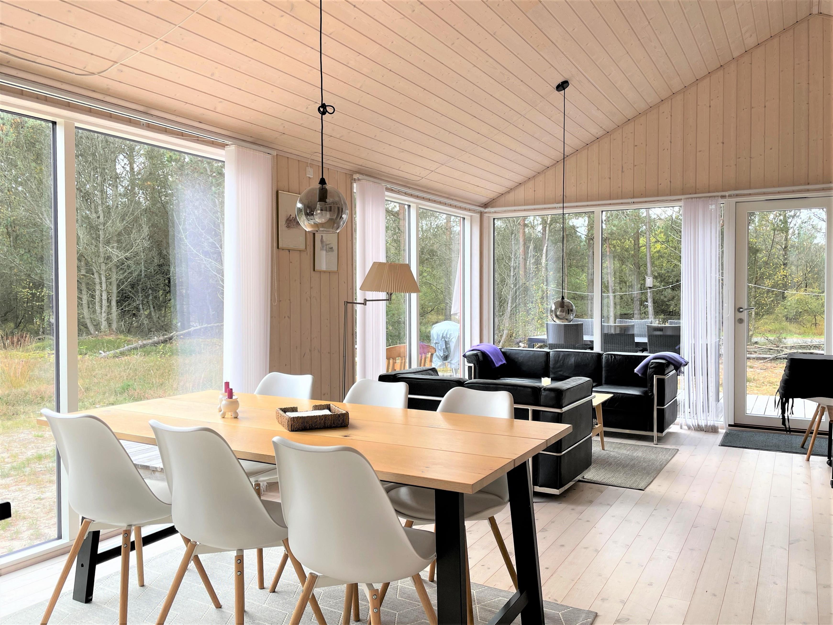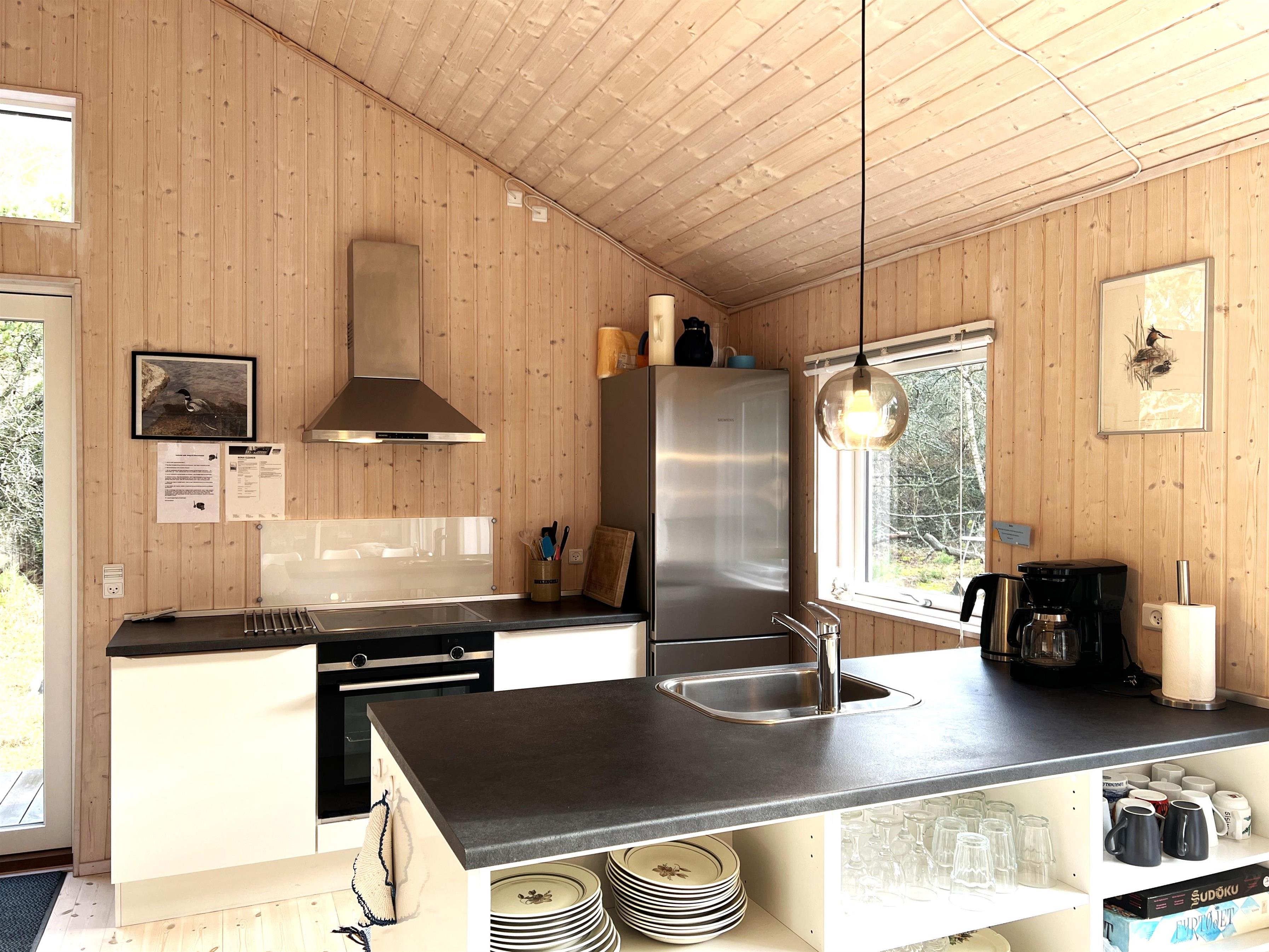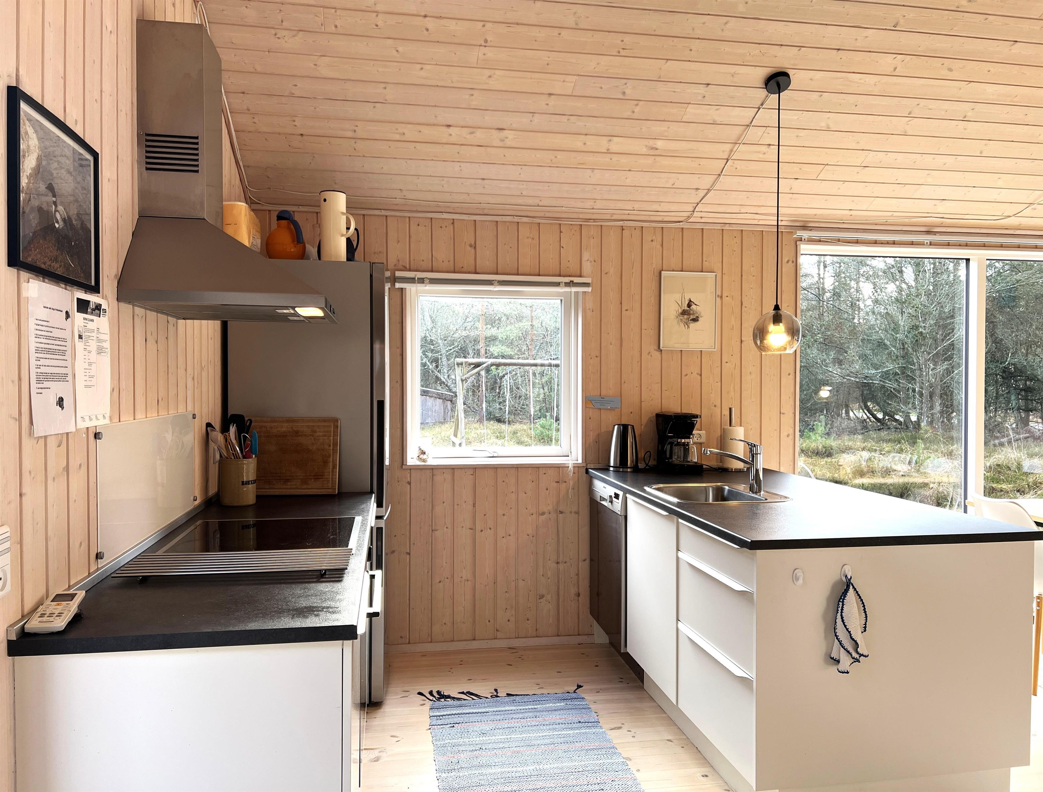 Nybygget, lyst og lækkert sommerhus med naturskøn beliggenhed. Huset er moderne indrettet med flotte lysindfald og yderst komfortabelt. Et skønt køkken-alrum med funktionelt køkken, stort spisebord og hyggeligt sofaområde. Der er udgang fra stuen til fin træterrasse med gode havemøbler. Tre soveværelser, hvoraf et er med dobbeltseng, og to værelser med køjesenge. Lækkert badeværelse med brus. Hems til opbevaring. Desuden legeplads-område med gyngestativ, shelter samt bålplads og vildmarksbad. Husets komfortable indretning og placering lægger op til en dejlig, afslappende ferie, hvor man straks fornemmer den særegne Læsø-ro og unikke natur.