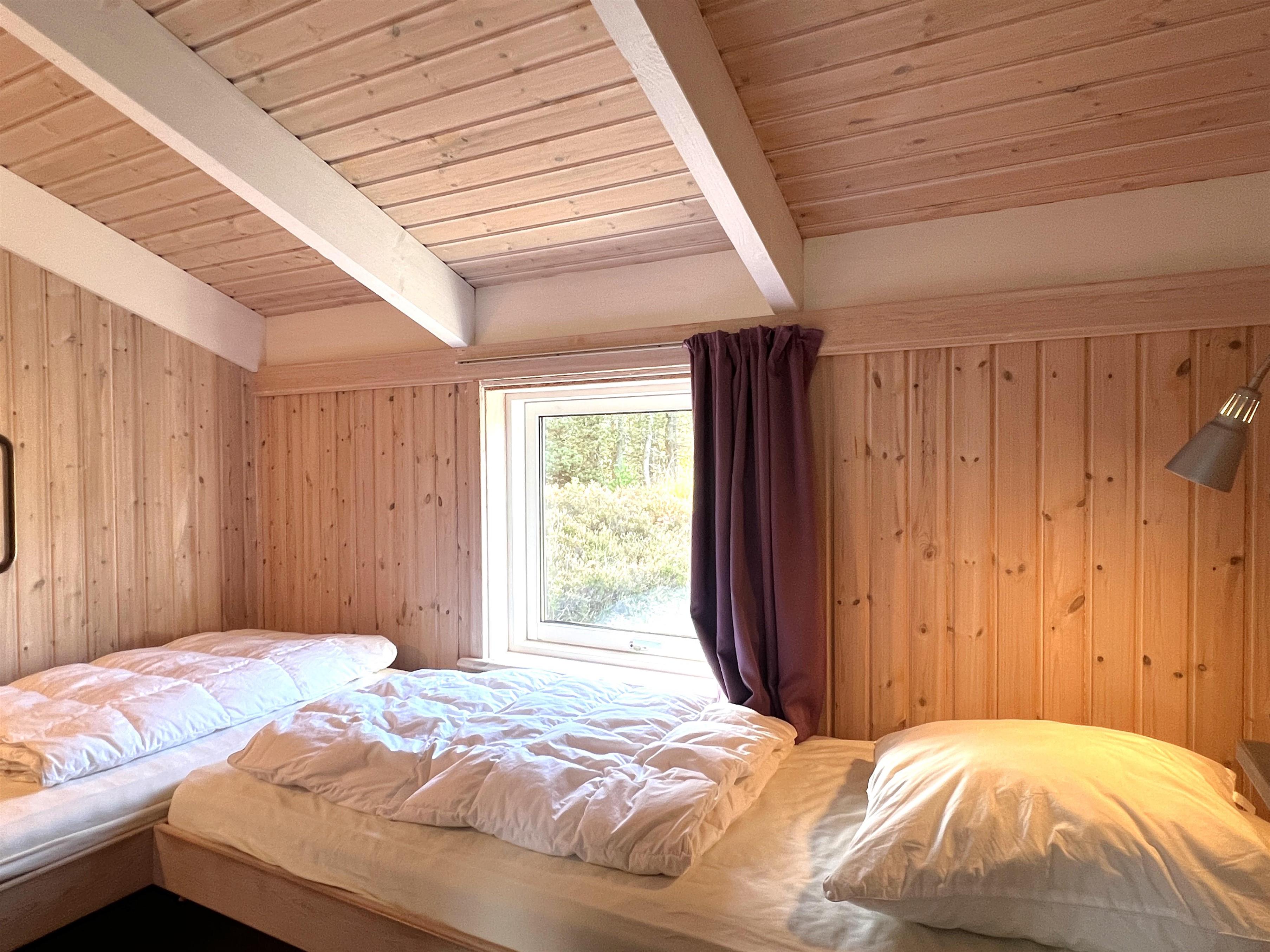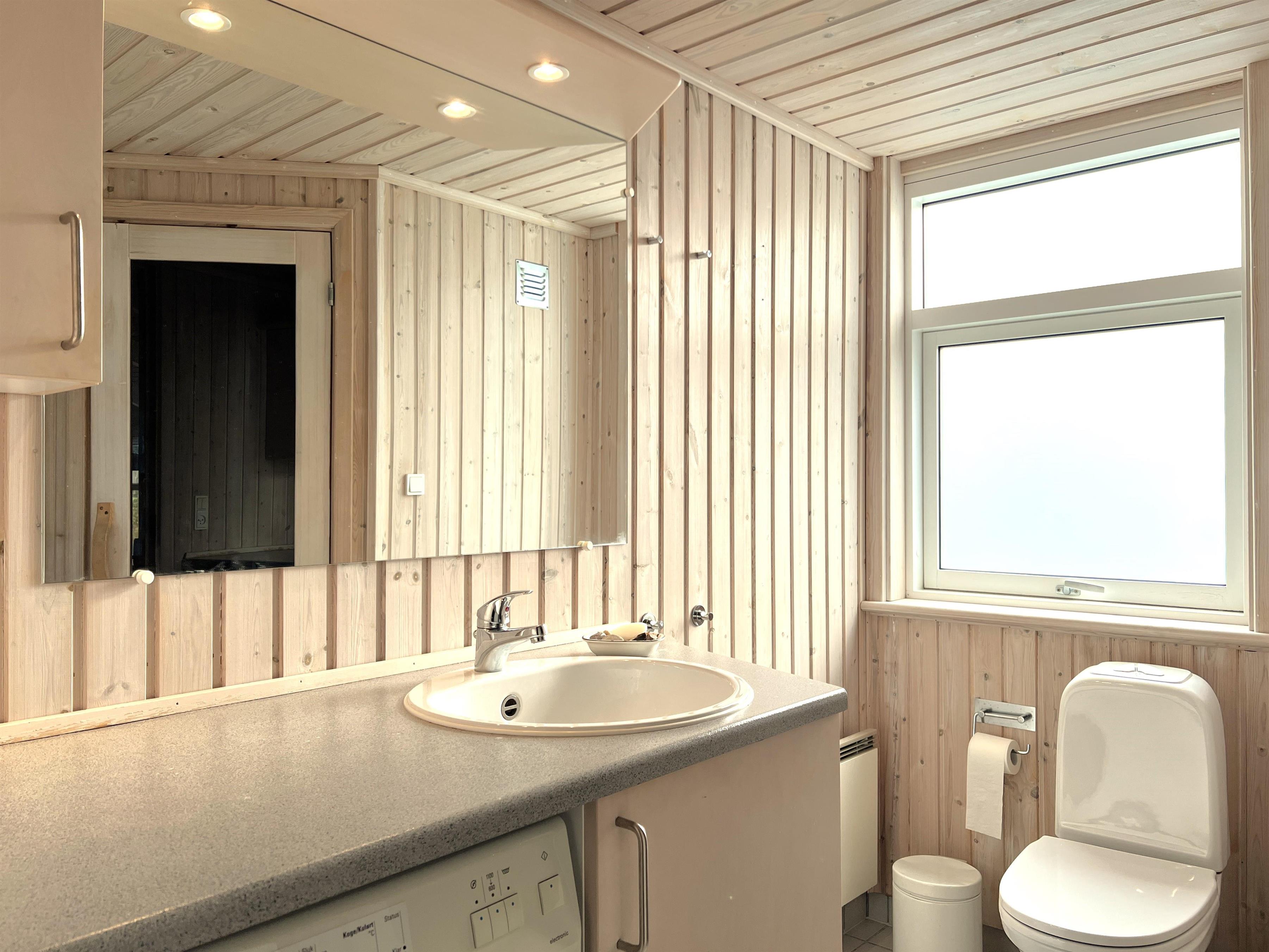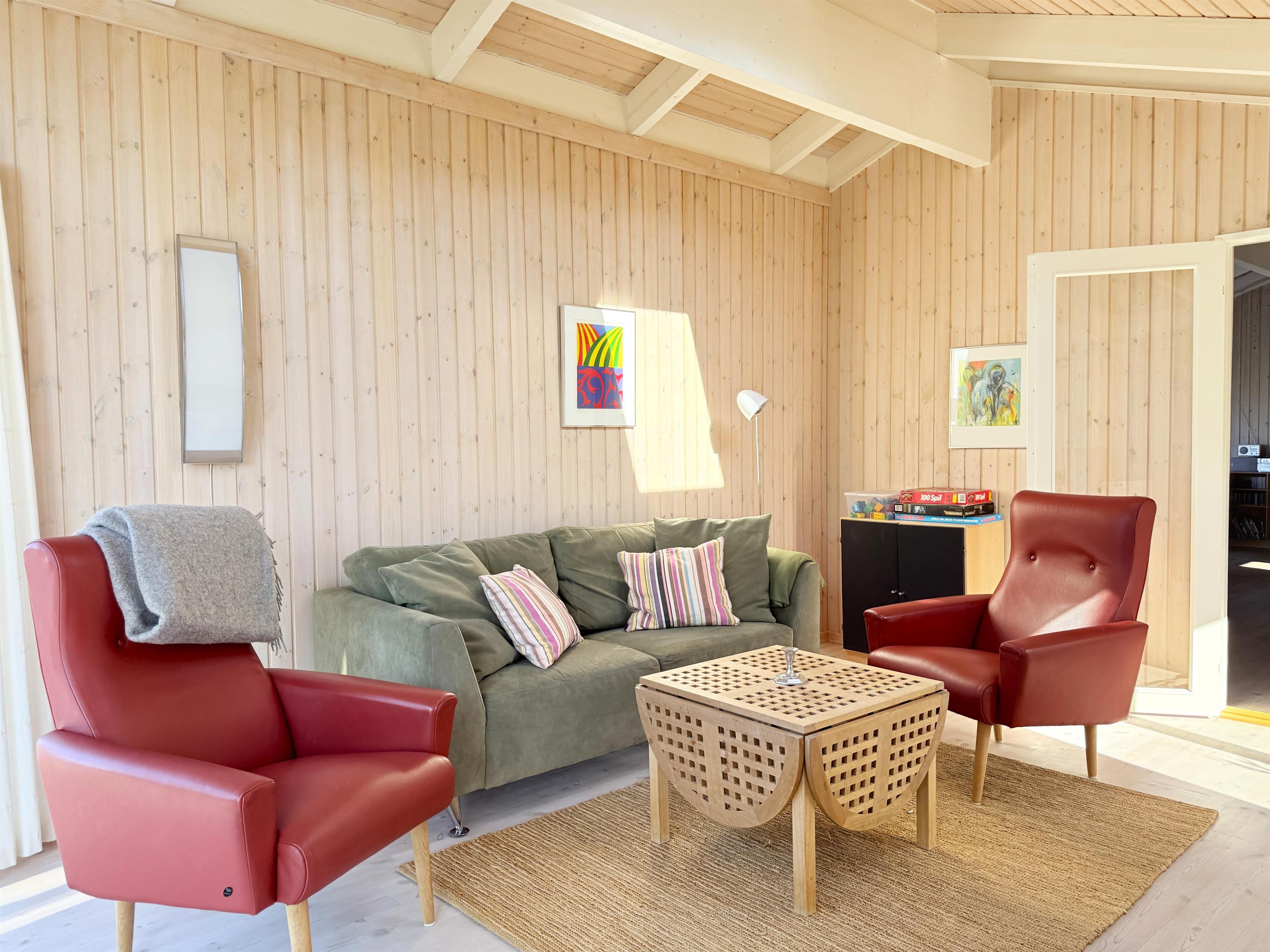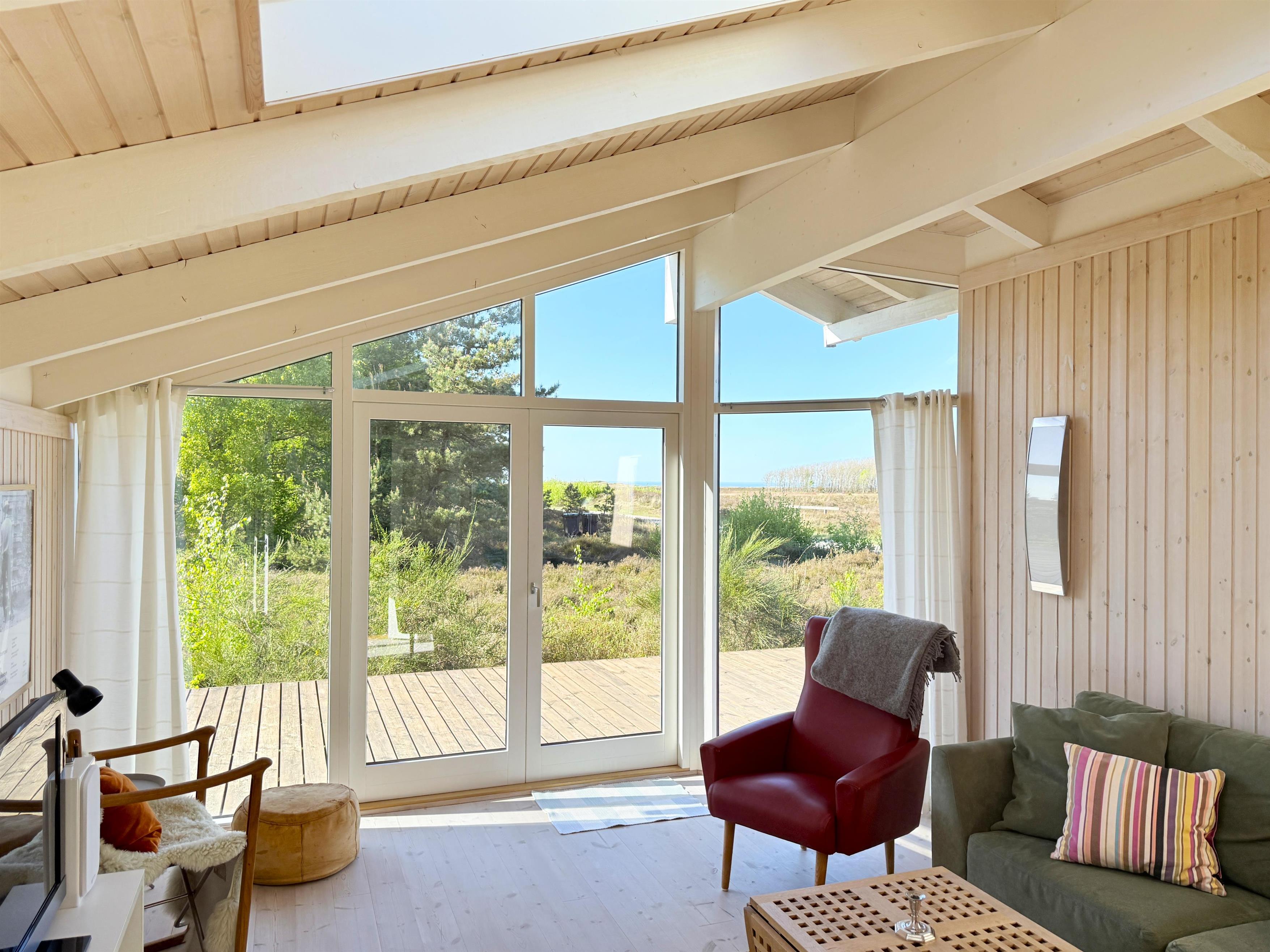 Huset har tre soveværelser, et med dobbeltseng, et med to enkeltsenge og et med en dobbelt sovesofa. Fint, moderne badeværelse med brus og sauna. Der er udgang fra stuen til husets træterrasser, hvor man kan benytte husets havemøbler. Det er altid muligt, at finde en skøn solkrog, hvor man kan nyde den særlige Læsø-ro og udsigten til den uberørte natur, havet og solnedgangene.