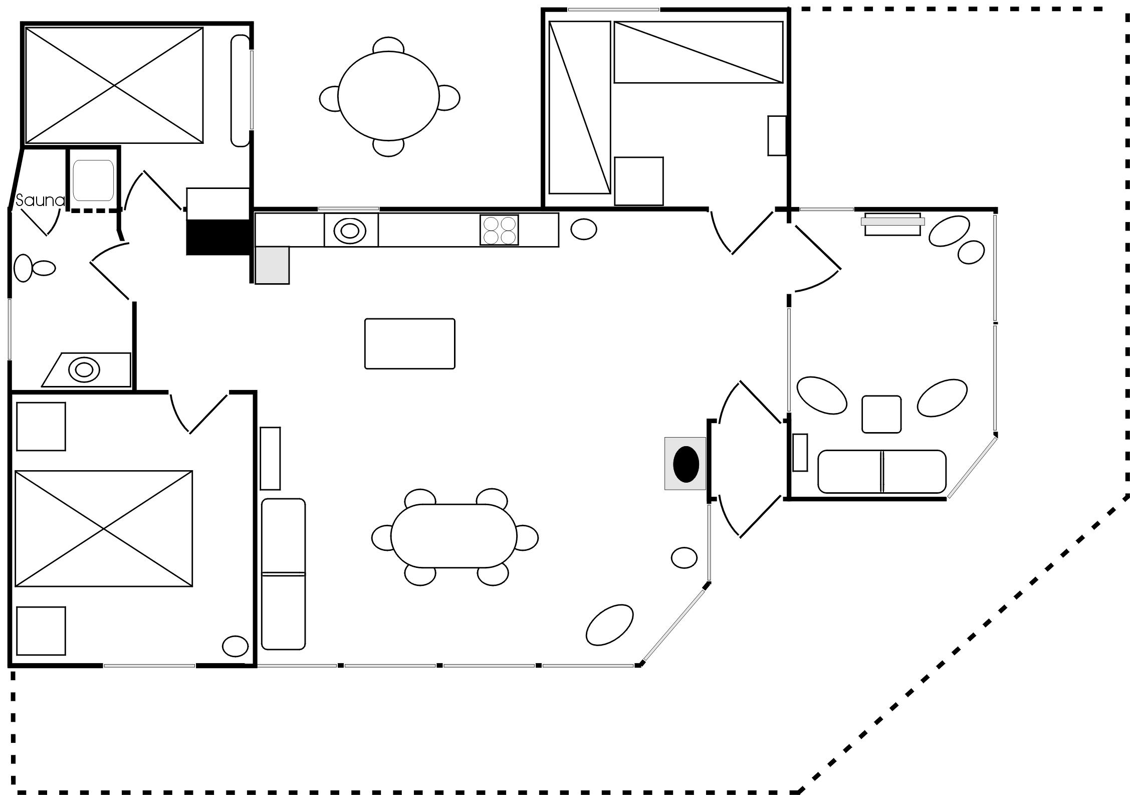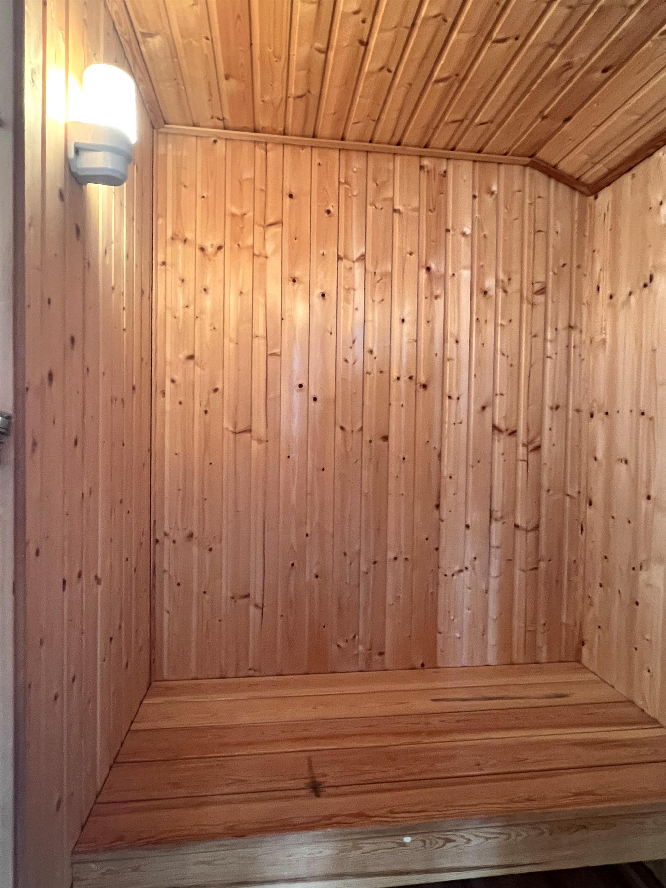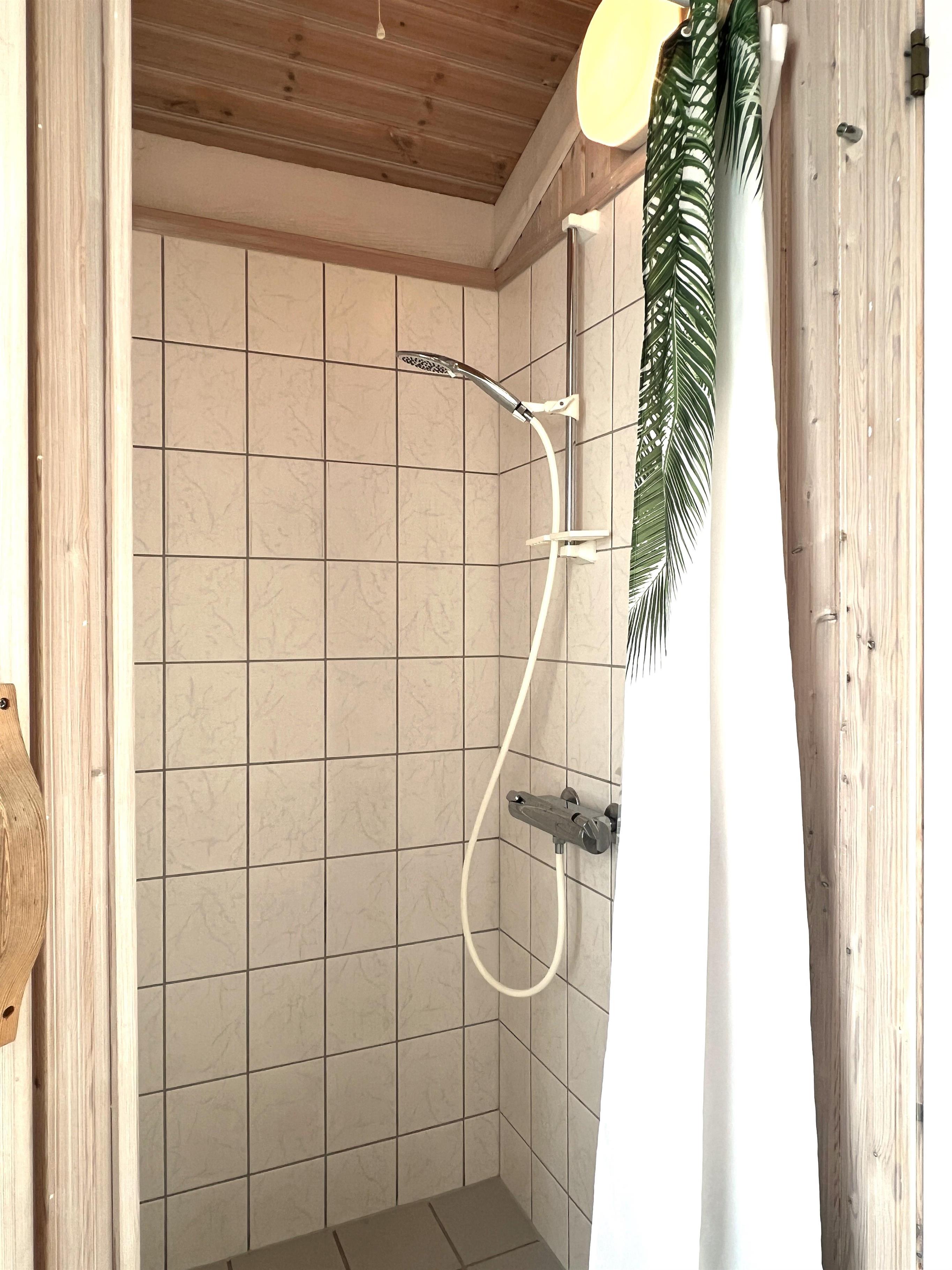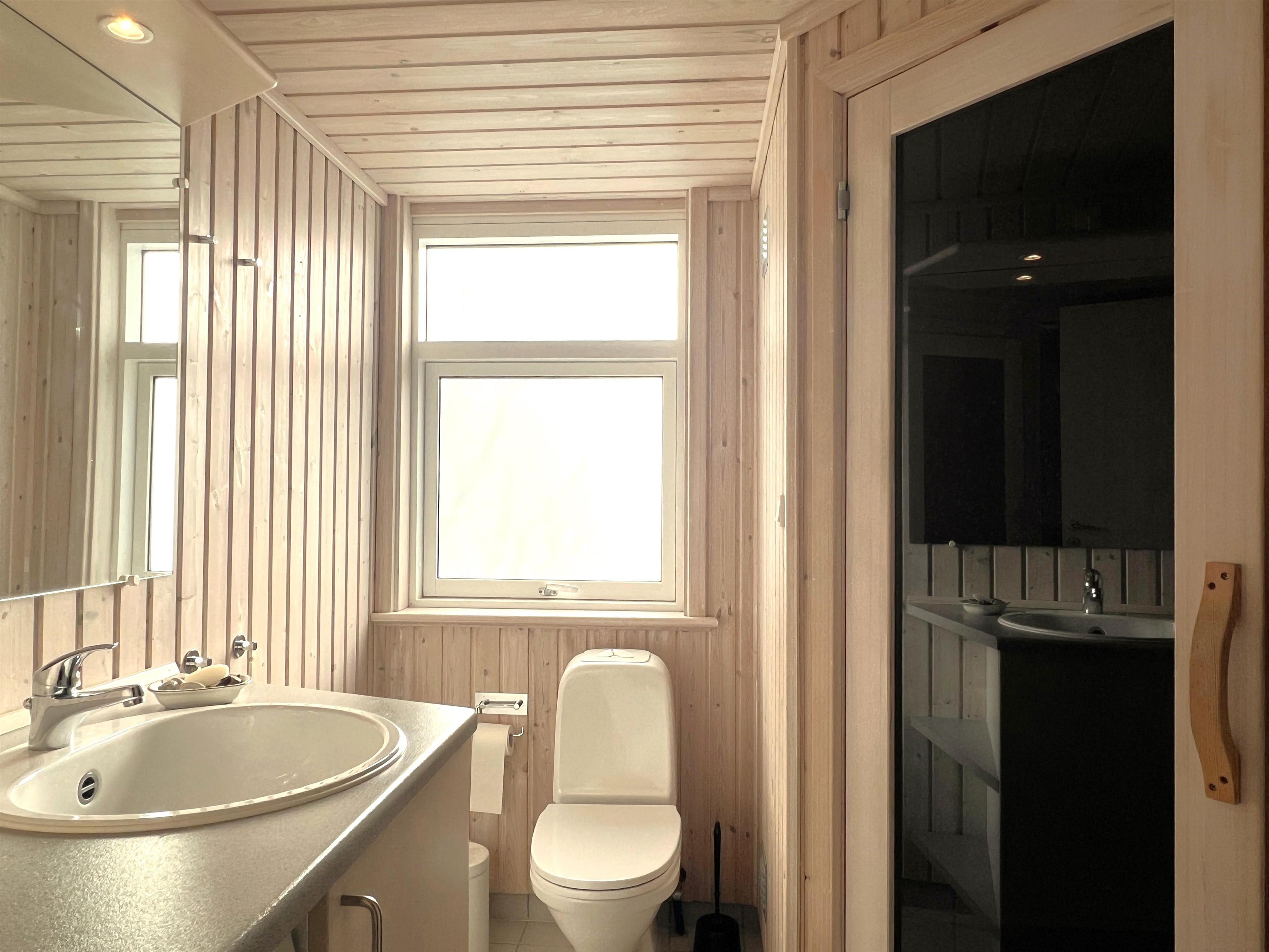 Huset har tre soveværelser, et med dobbeltseng, et med to enkeltsenge og et med en dobbelt sovesofa. Fint, moderne badeværelse med brus og sauna. Der er udgang fra stuen til husets træterrasser, hvor man kan benytte husets havemøbler. Det er altid muligt, at finde en skøn solkrog, hvor man kan nyde den særlige Læsø-ro og udsigten til den uberørte natur, havet og solnedgangene.