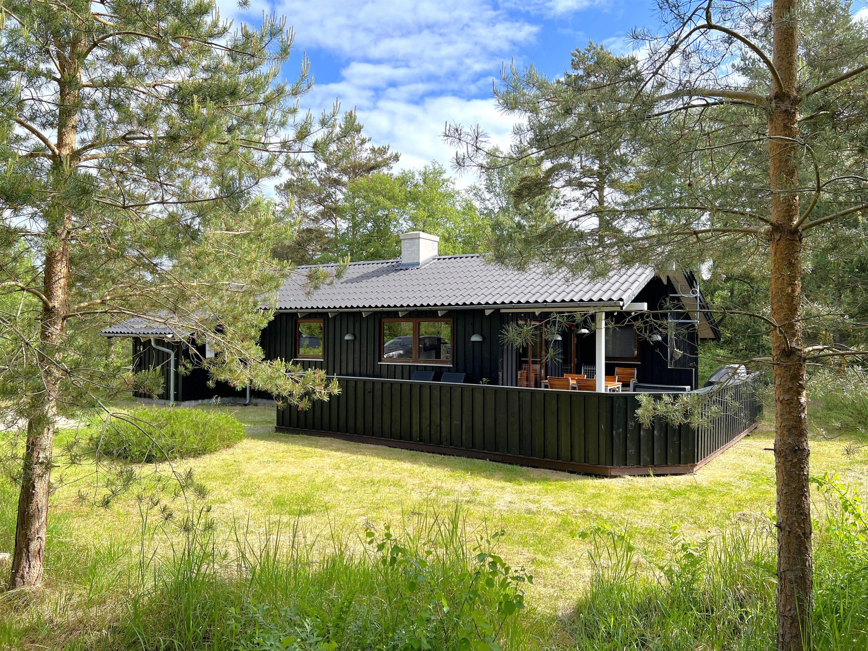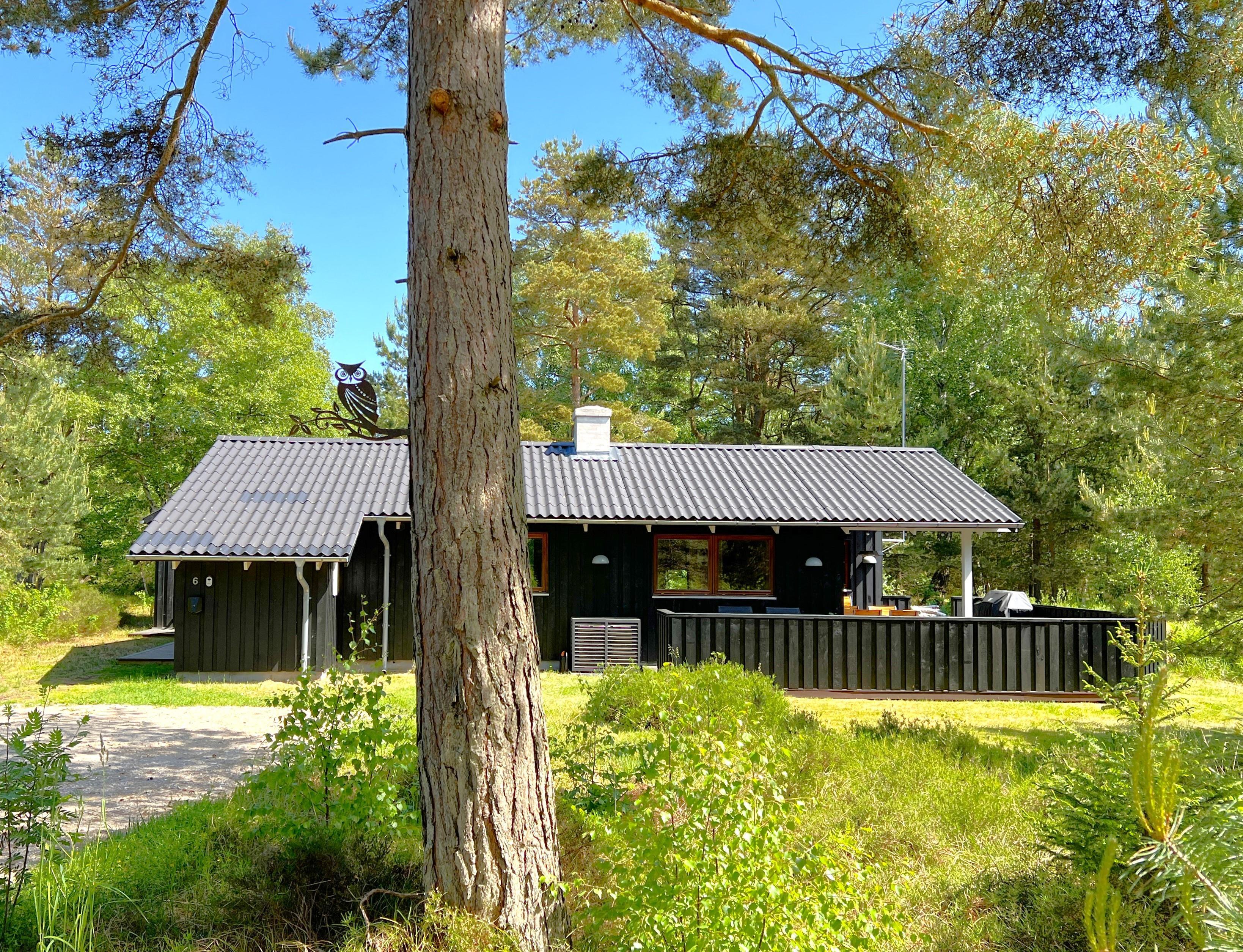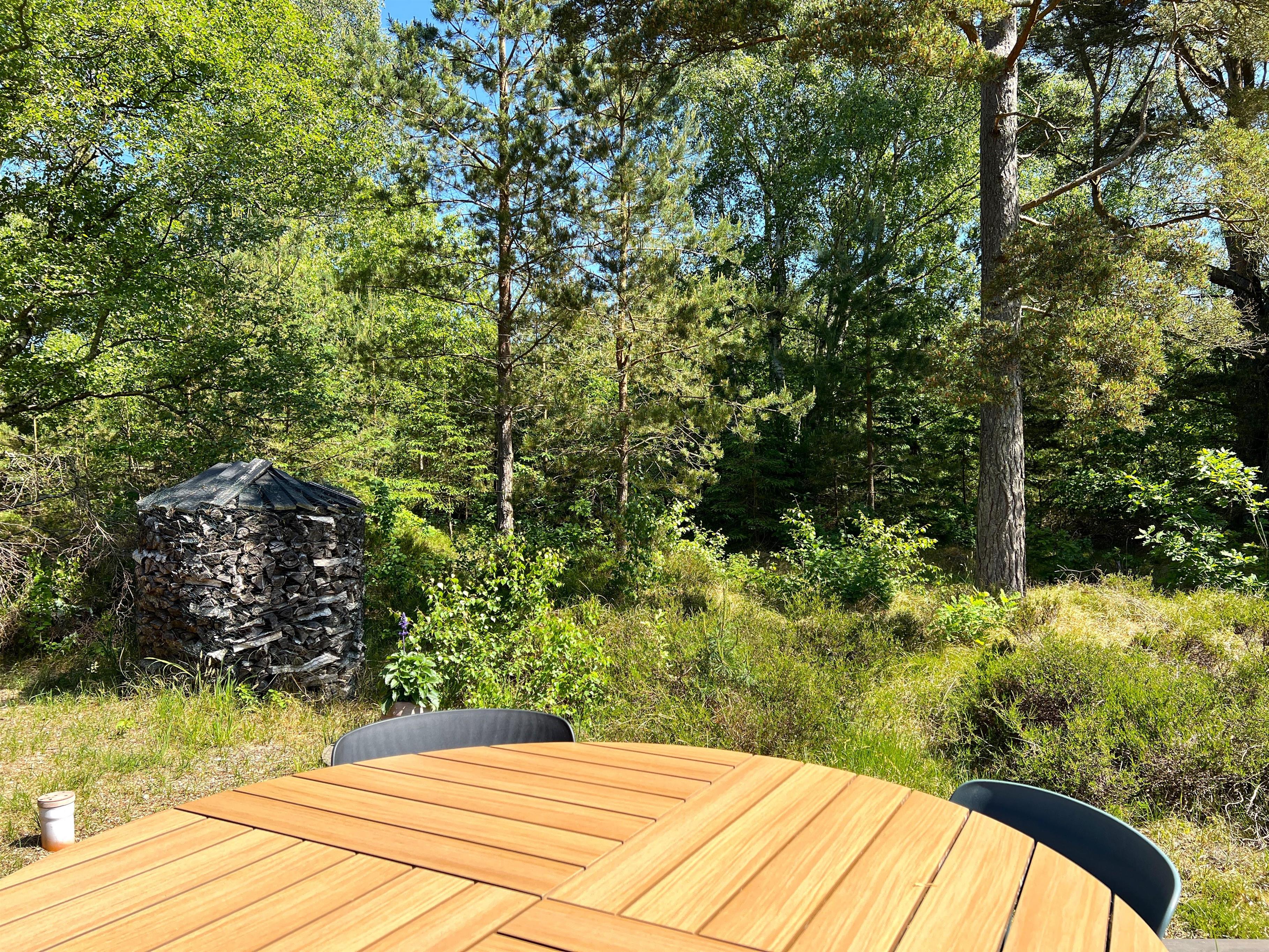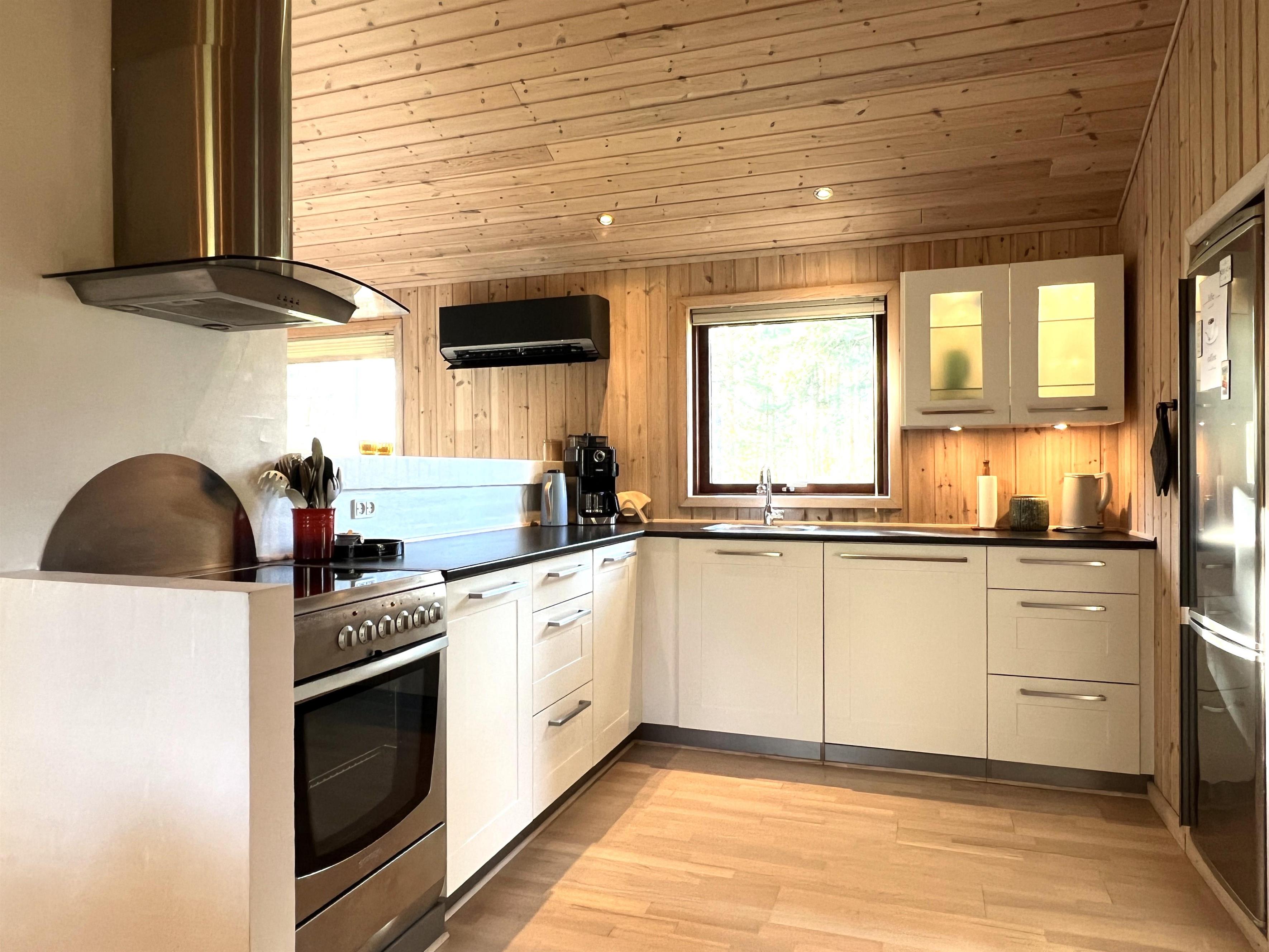Et fantastisk flot og velholdt sommerhus beliggende naturskønt i skov- og hedeområdet, Nordmarken. Feriehuset har et lækkert, stort og veludstyret køkken i åben forbindelse til spisestue. Hele husets fællesareal har loft til kip, og der er rigtigt flot lysindfald. Der er et moderne badeværelse med brus og gulvvarme samt tre soveværelser med dobbeltsenge og skabsplads. I husets midte findes stuen med behagelige møbler, brændeovn og helt nyt, stort TV. Indretningen er stilren med interiør fra danske HAY, og fra både spisestue og stue er der udgange til store træterrasser med flere sæt havemøbler og solsenge. En del af terrassen er overdækket, og her kan husets nye, store gasgrill (2023) benyttes på alle tidspunkter og årstider. Terrassevarmeren sørger for ekstra lange, lune aftener. Morgenkaffen nydes ofte på husets østvendte terrasse, hvor hedelyngen dominerer og blomstrer fantastisk smukt i august.