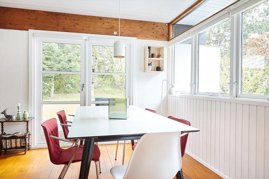 Huset er indrettet med en god lille entré. Badeværelse med brus. Køkken i lyse elementer med spiseplads og direkte adgang til stue. Stort lyst soveværelse med dobbeltseng og god skabsplads samt et ekstra værelse med enkeltsenge. Stor hyggelig stue med brændeovn og varmepumpe. Fra stuen er der udgang til en dejlig terrasse, der dels har en overdækket og dels flere åbne afdelinger. Der tilhører to dejlige annekser, så her er der perfekt til at flere generationer kan samles. Grunden er indhegnet og derfor også velegnet til både børn og hunde.