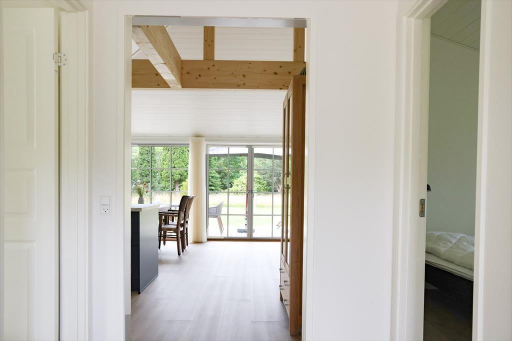 Sommerhuset byder på lyse, indbydende rum og en behagelig atmosfære med plads til samvær og ro. Hjertet i huset er den åbne opholdsstue, hvor I kan nyde hyggelige middage ved spisebordet, læne jer tilbage i sofaen med en god bog eller bare være sammen.