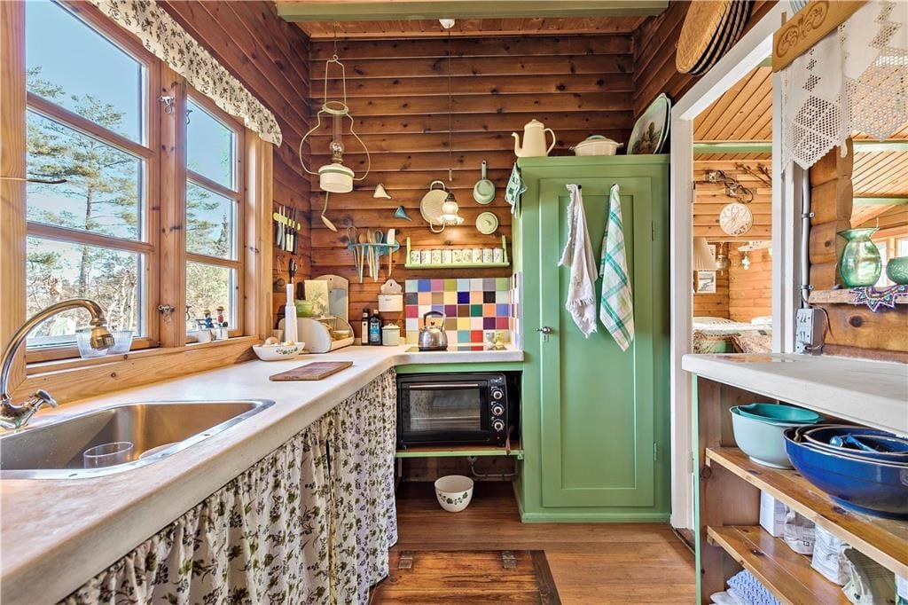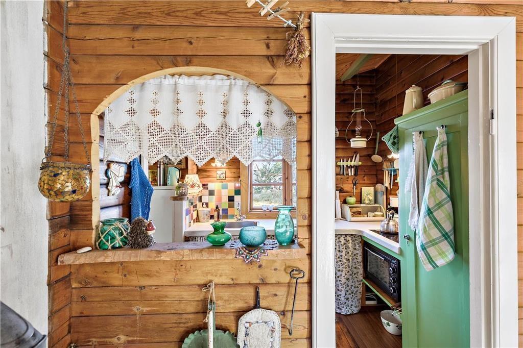 Du vil føle dig hensat til en anden tid, når du sætter dig i stolene ved bordet ved vinduet i stuen og iagttager de mange gamle og sjove genstande i huset, bl.a. gammelt værktøj ophængt på væggen og gamle lamper, billeder og nips. Det giver huset en charme og skønhed, og det er som om tiden står stille her i huset tæt på havet. Her kan du drømme og fantasere, male, skrive et digt eller en novelle. Huset er uden Wi-Fi