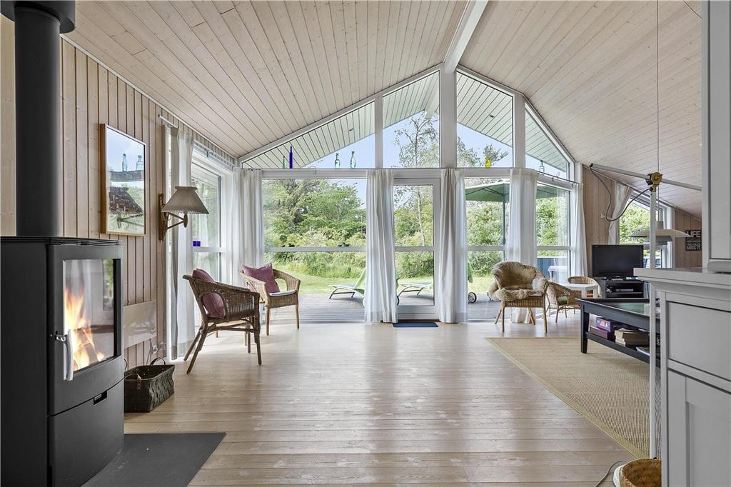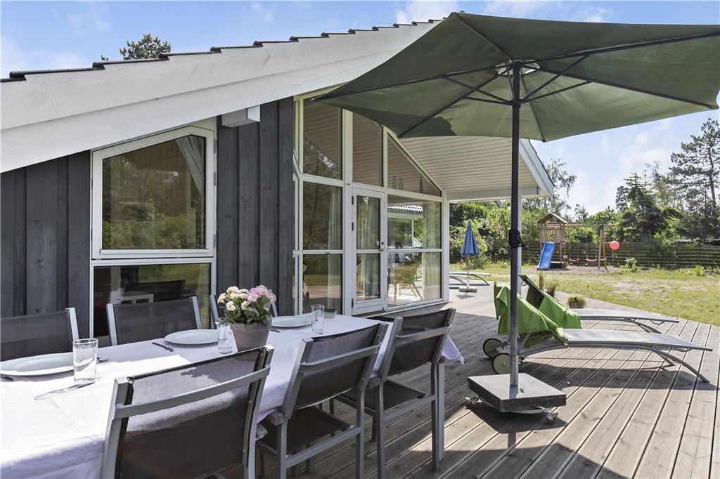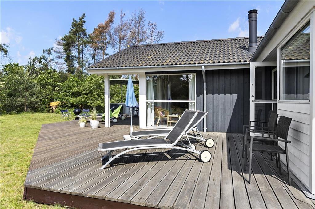 Husets store terrasse har god plads til at nyde solen fra solsengen. Måske en iskaffe og et ugeblad kan sætte prikken over i´et, mens børnene hygger sig med skjul, boldspil eller andre aktiviteter i haven. Savner børnene en sandkasse, er der kun få hundrede meter ned til stranden, hvor I kan få timer til at gå med at bygge det højeste sandslot, øve jer på SUP, tage på tur i en havkajak eller bare bade i det rene friske hav.